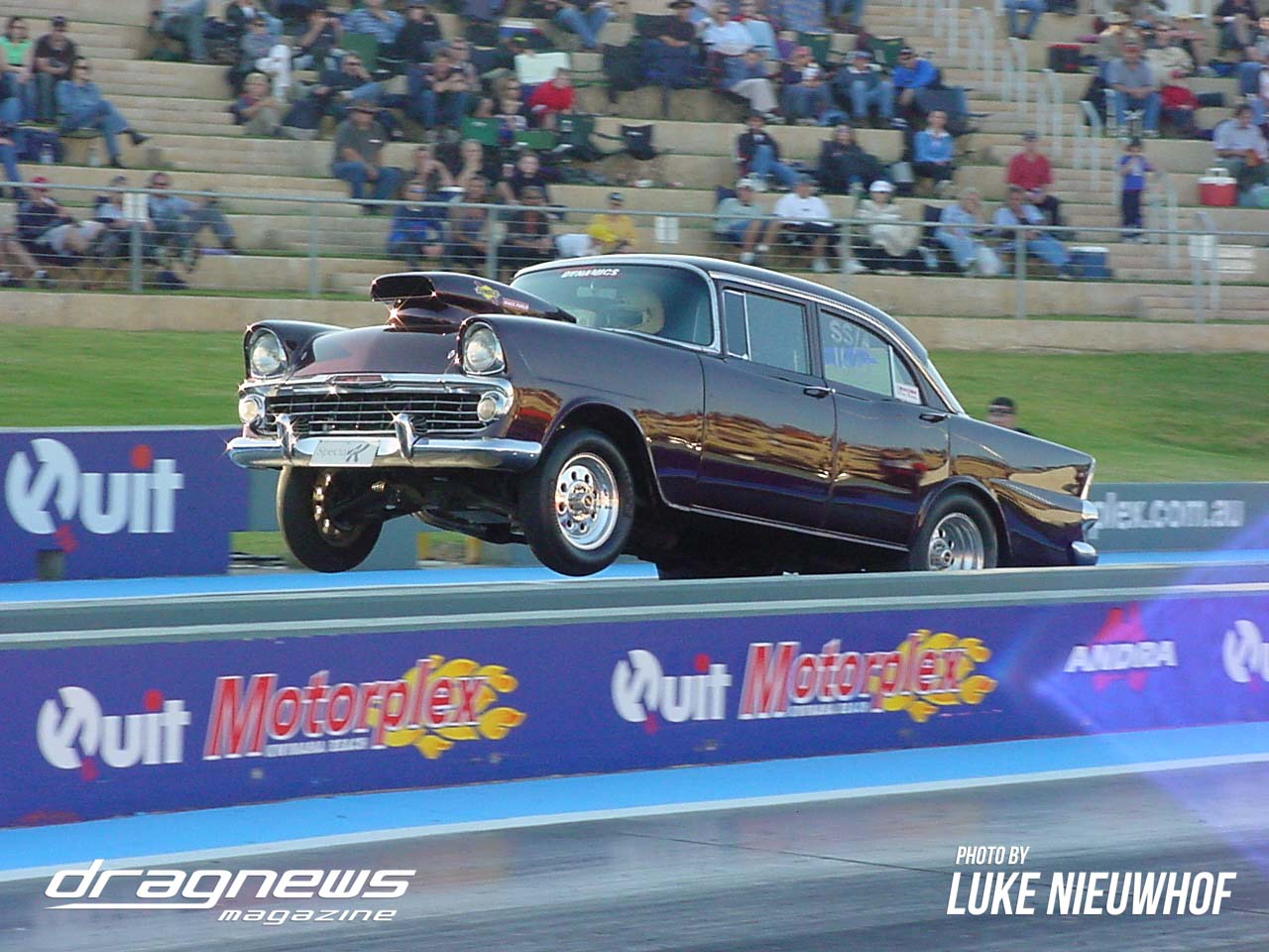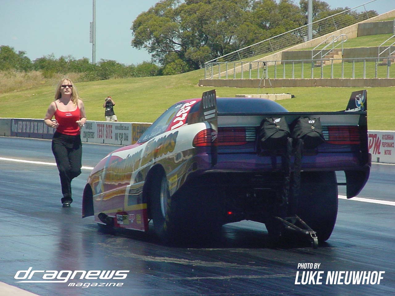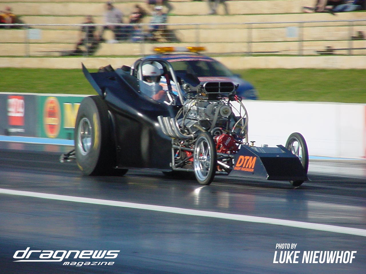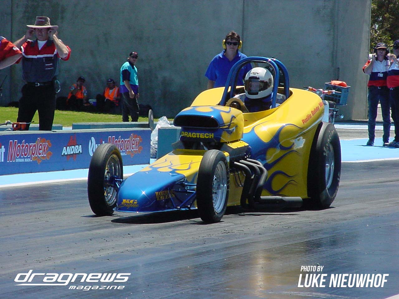 Now Top Alcohol driver Aaron Deery raced Bob St Lawrence’s Toyota-powered dragster in Modified, before Supercharged Outlaws was a category on offer at the Motorplex.