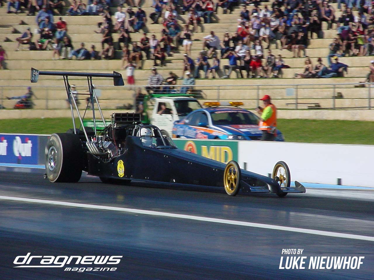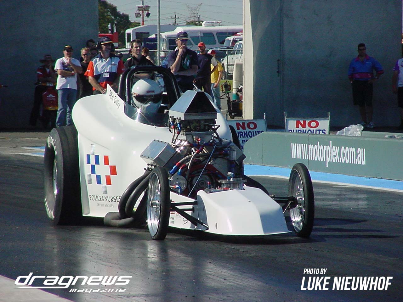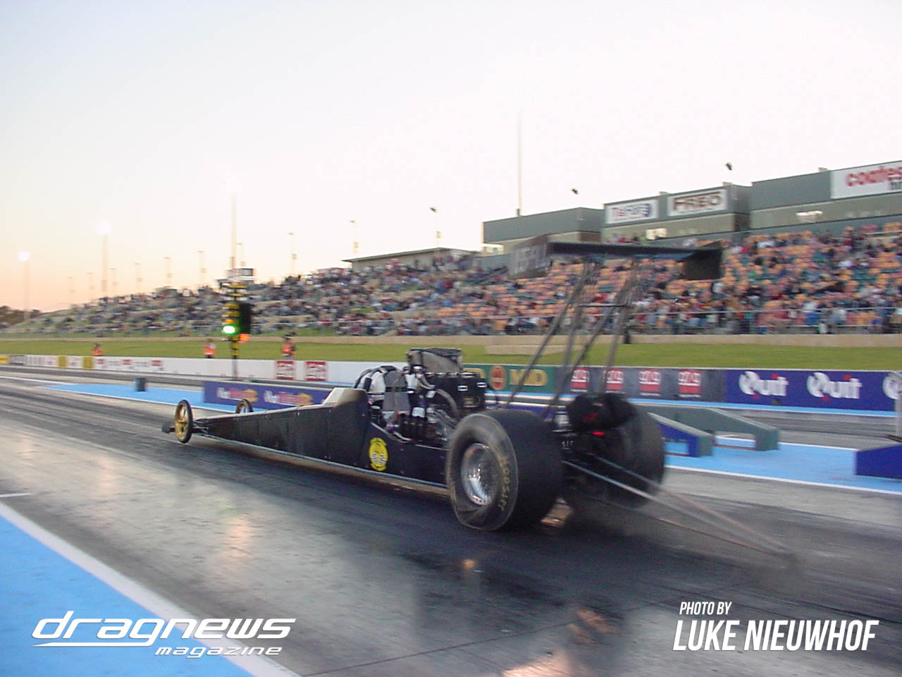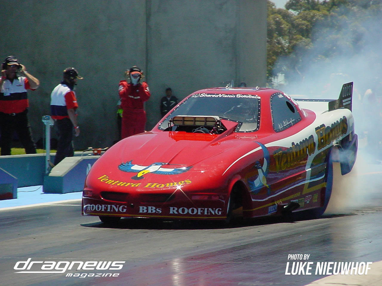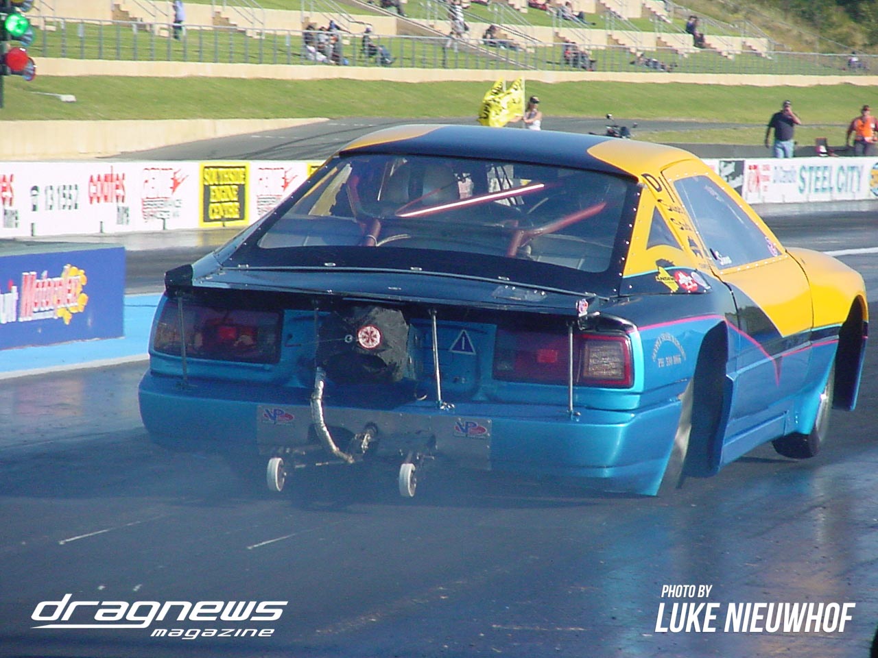 Now Top Alcohol driver Aaron Deery raced Bob St Lawrence’s Toyota-powered dragster in Modified, before Supercharged Outlaws was a category on offer at the Motorplex.
