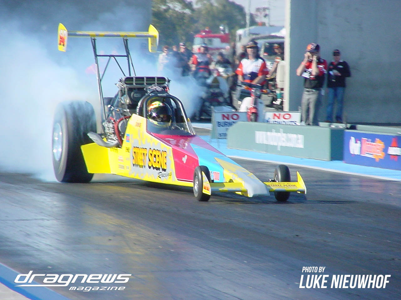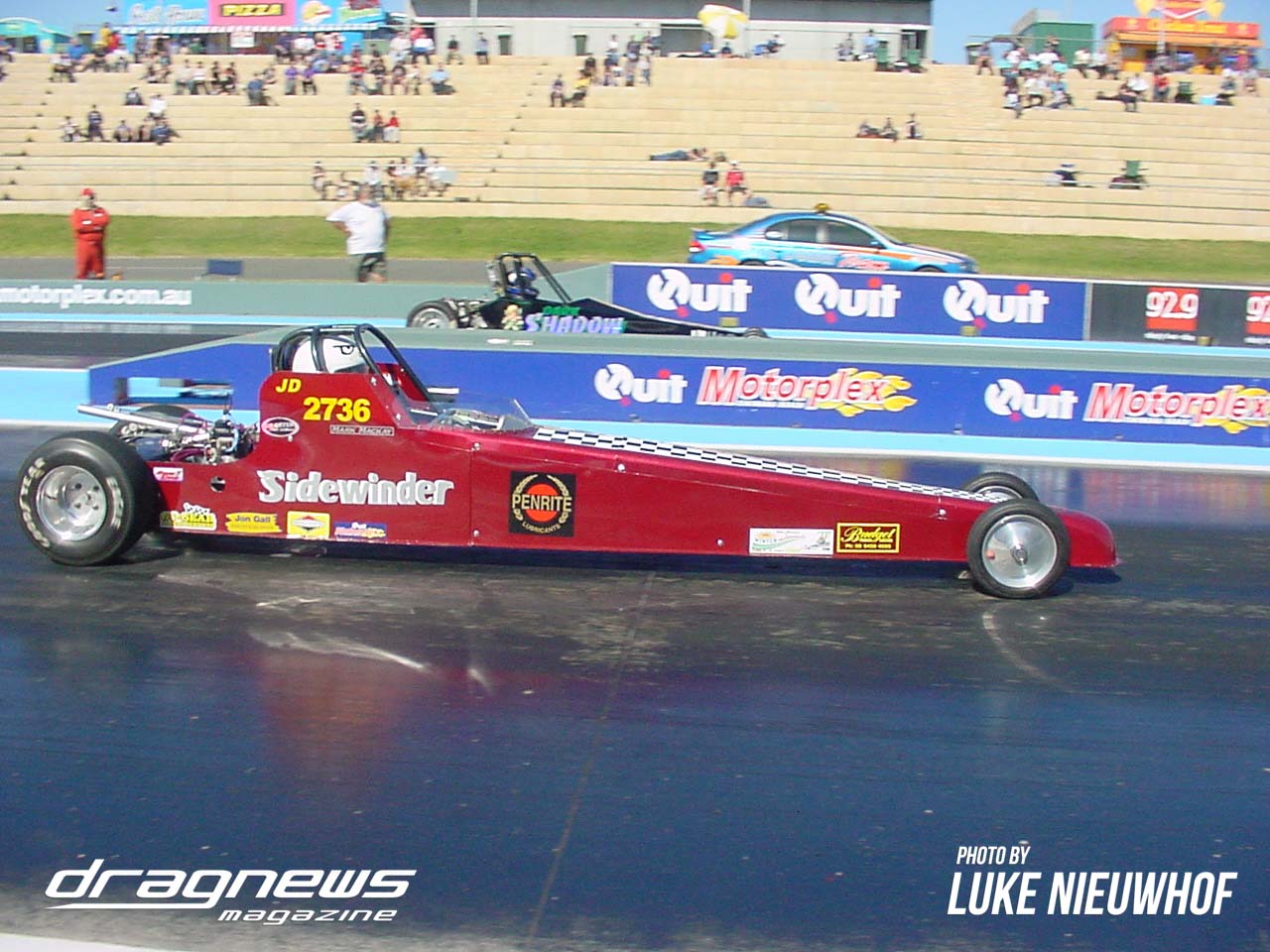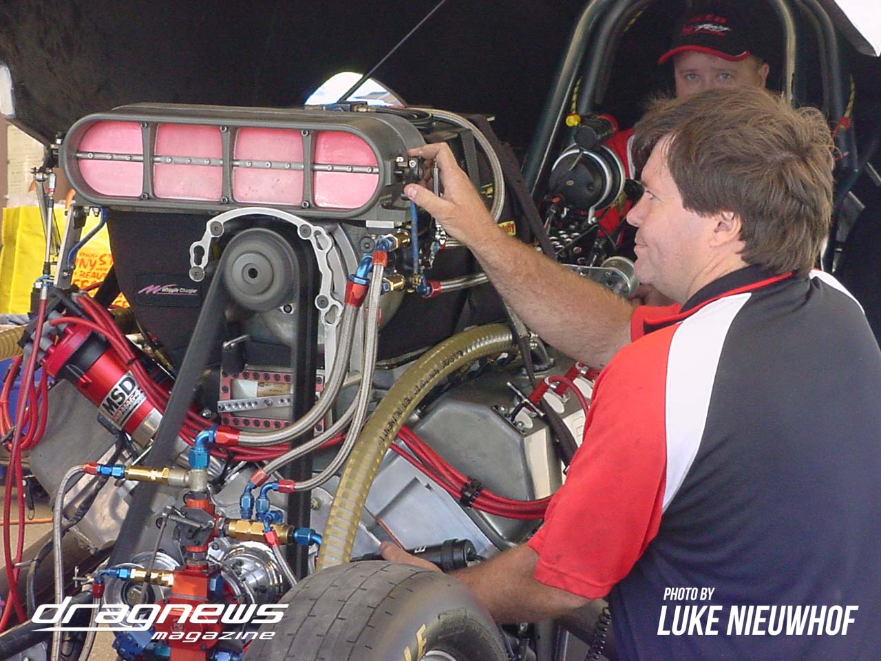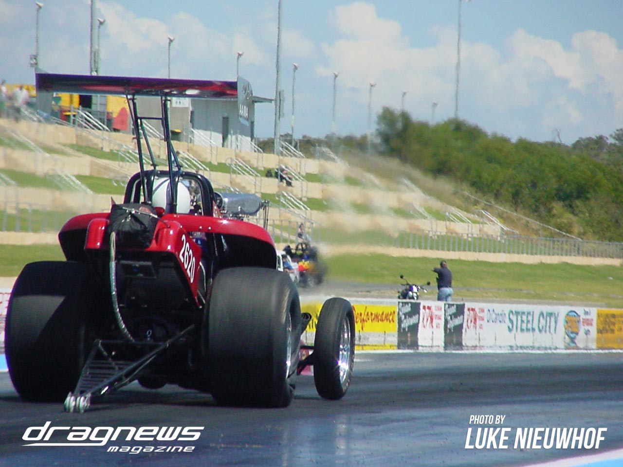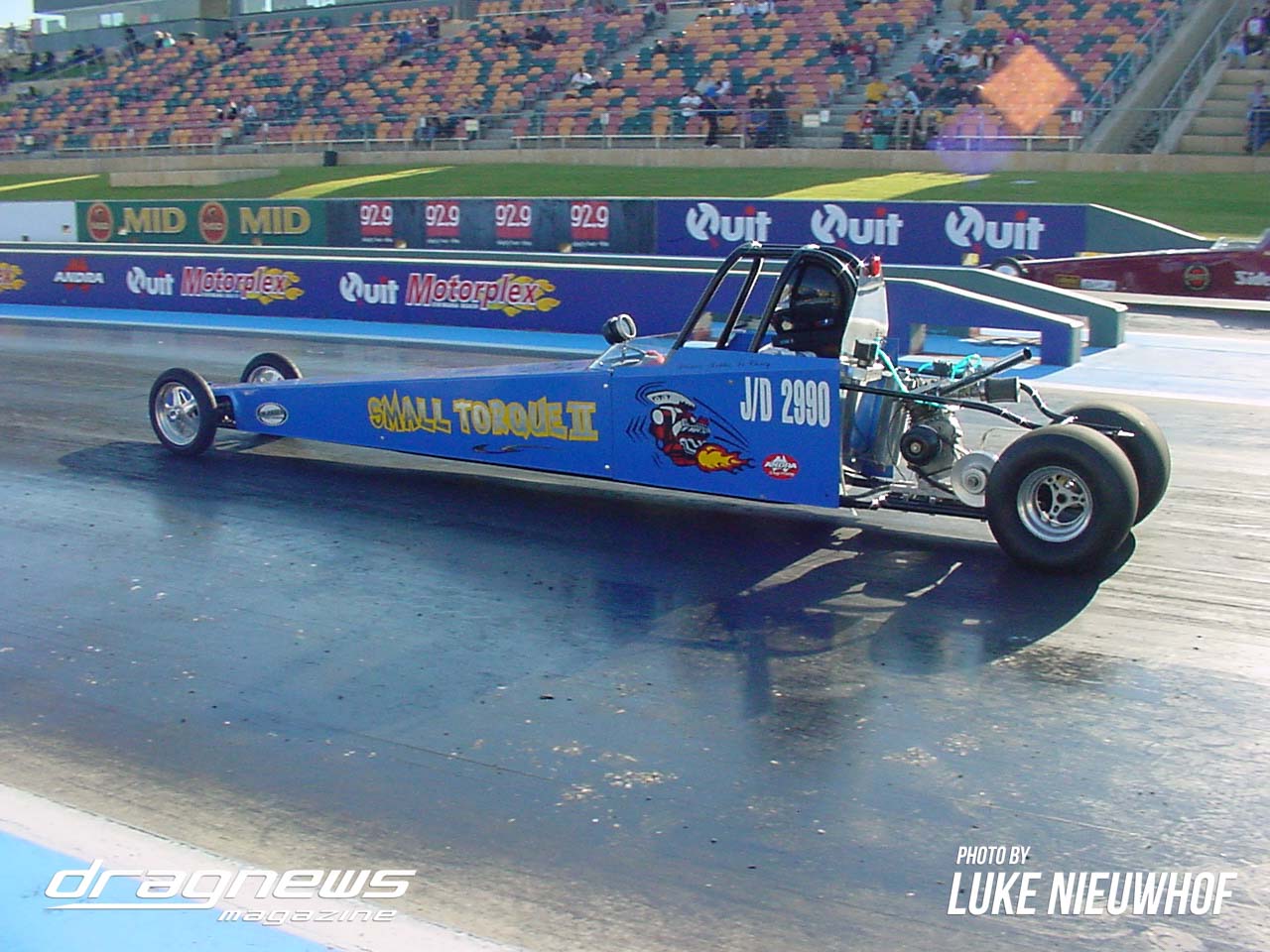 Now Top Alcohol driver Aaron Deery raced Bob St Lawrence’s Toyota-powered dragster in Modified, before Supercharged Outlaws was a category on offer at the Motorplex.