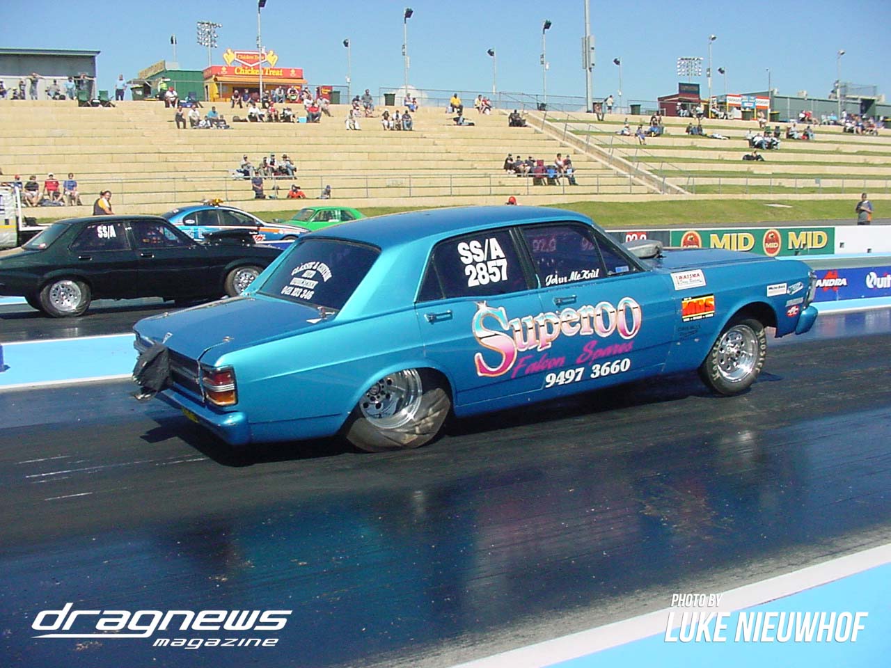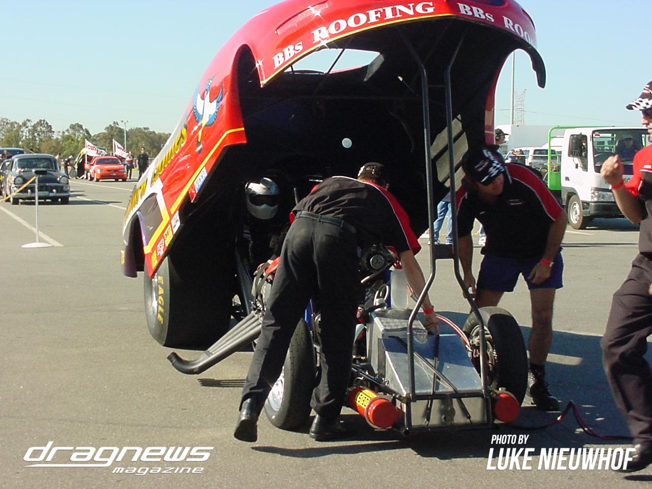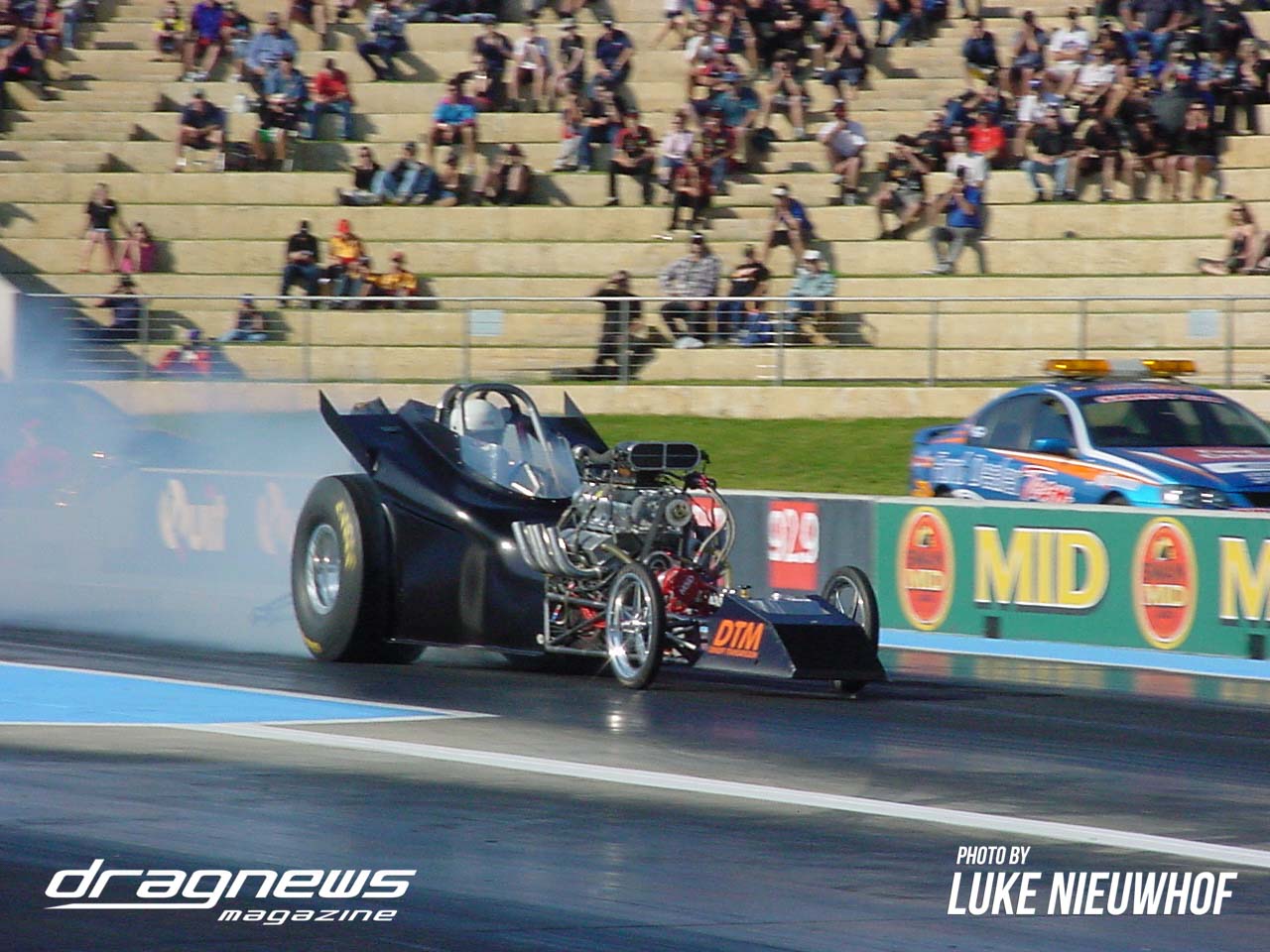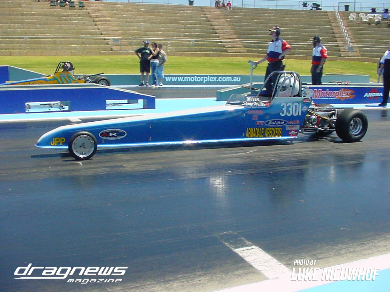 Now Top Alcohol driver Aaron Deery raced Bob St Lawrence’s Toyota-powered dragster in Modified, before Supercharged Outlaws was a category on offer at the Motorplex.