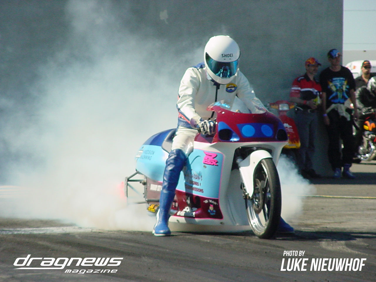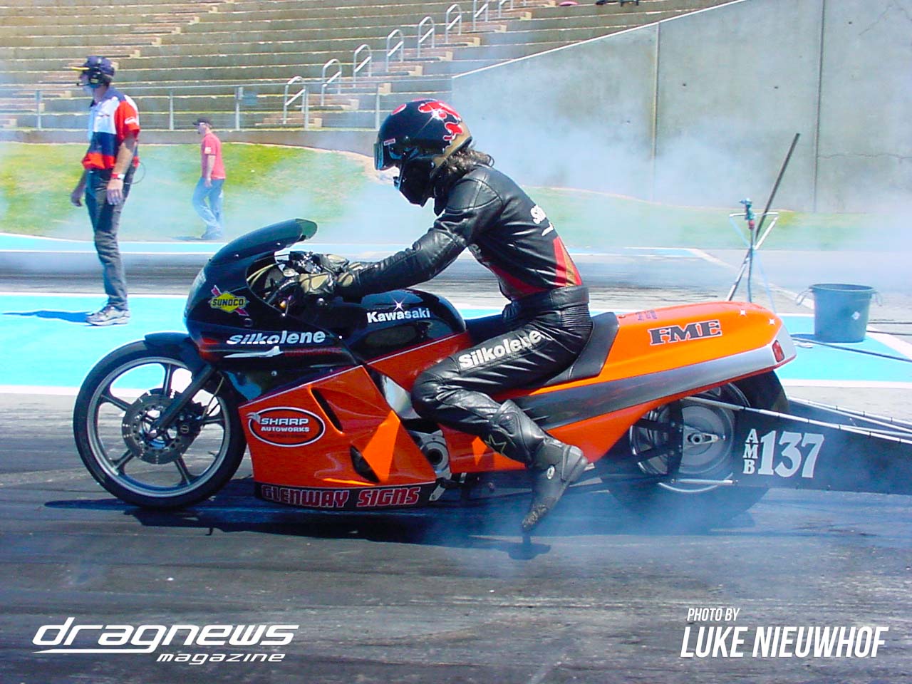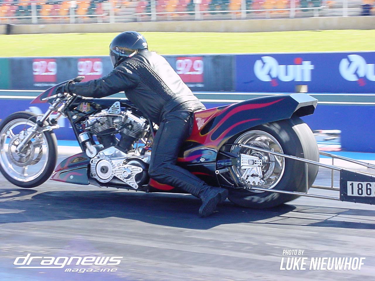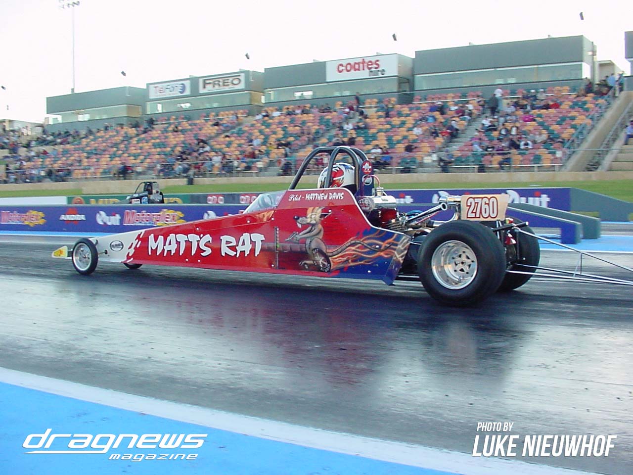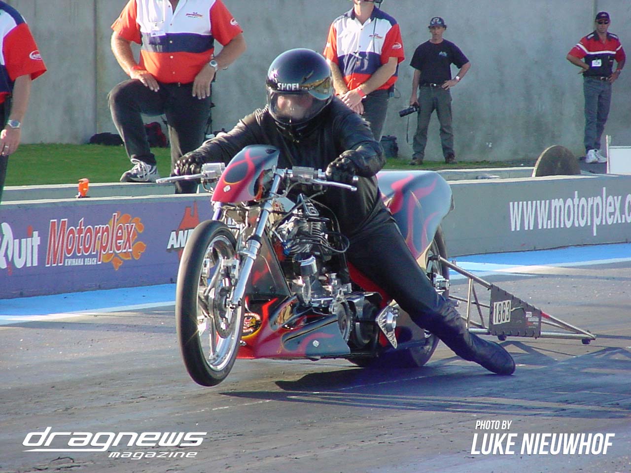 Now Top Alcohol driver Aaron Deery raced Bob St Lawrence’s Toyota-powered dragster in Modified, before Supercharged Outlaws was a category on offer at the Motorplex.