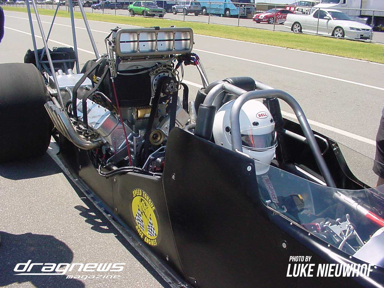Toyota-powered dragsters weren’t limited to St Lawrence’s, with Vic Donis racing this PSI-supercharged version.