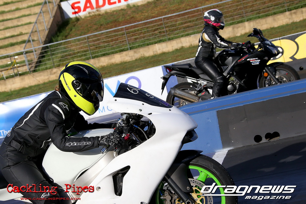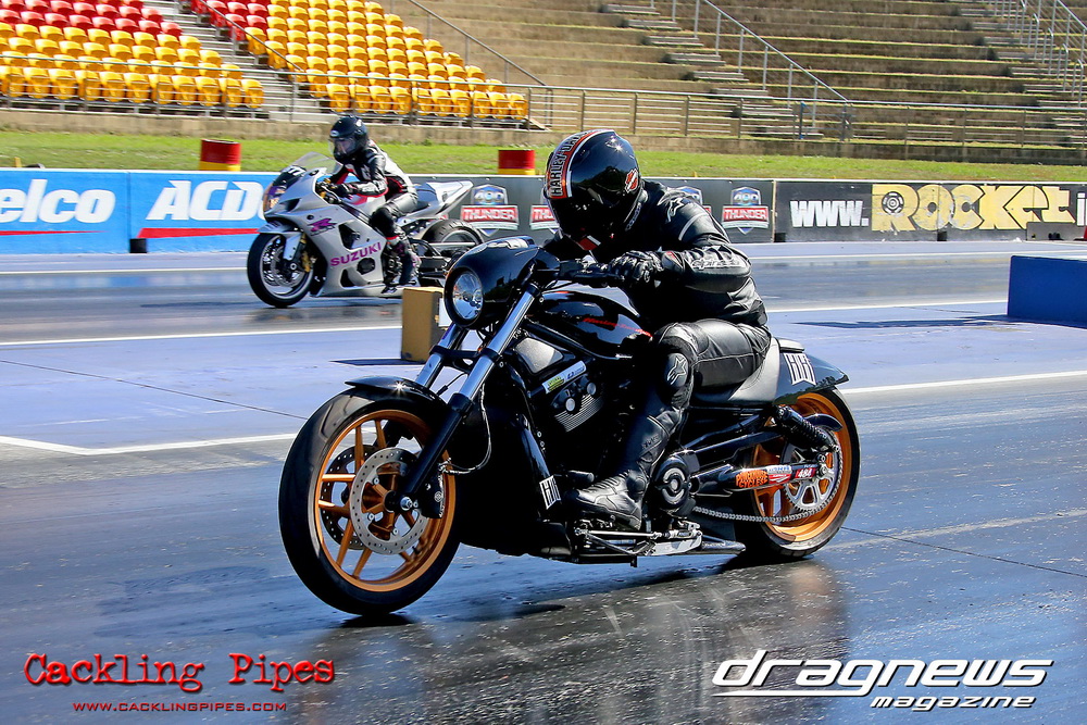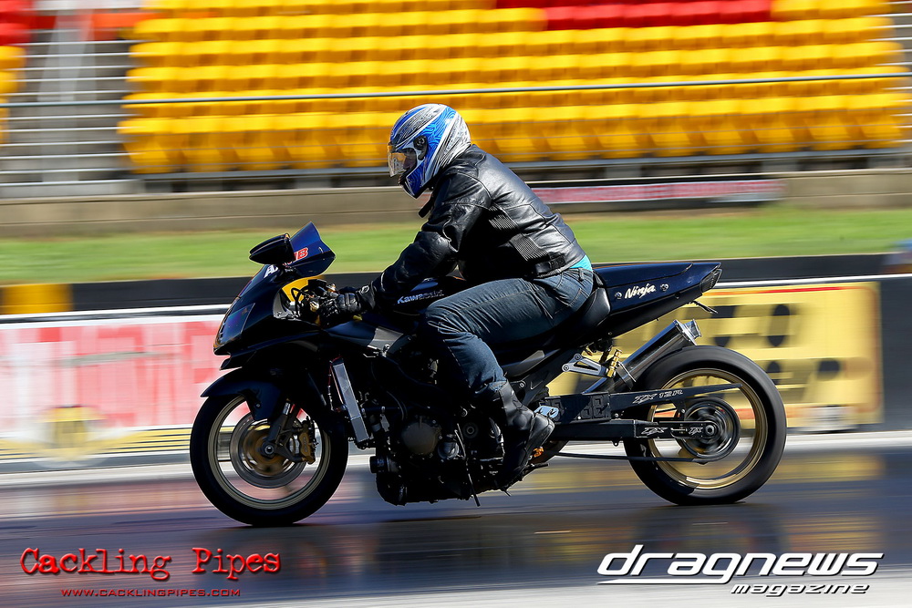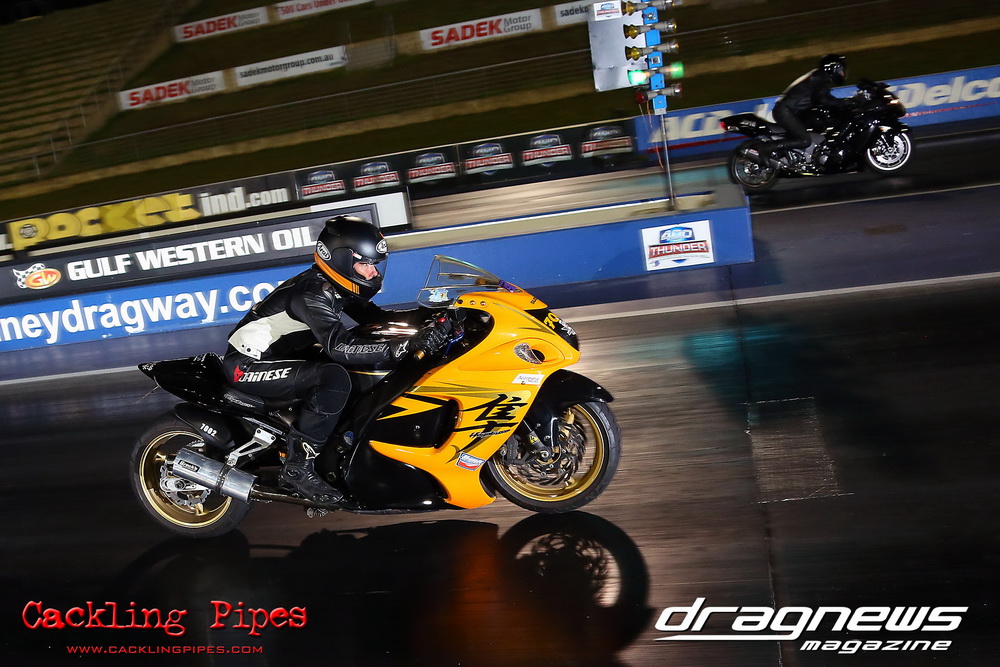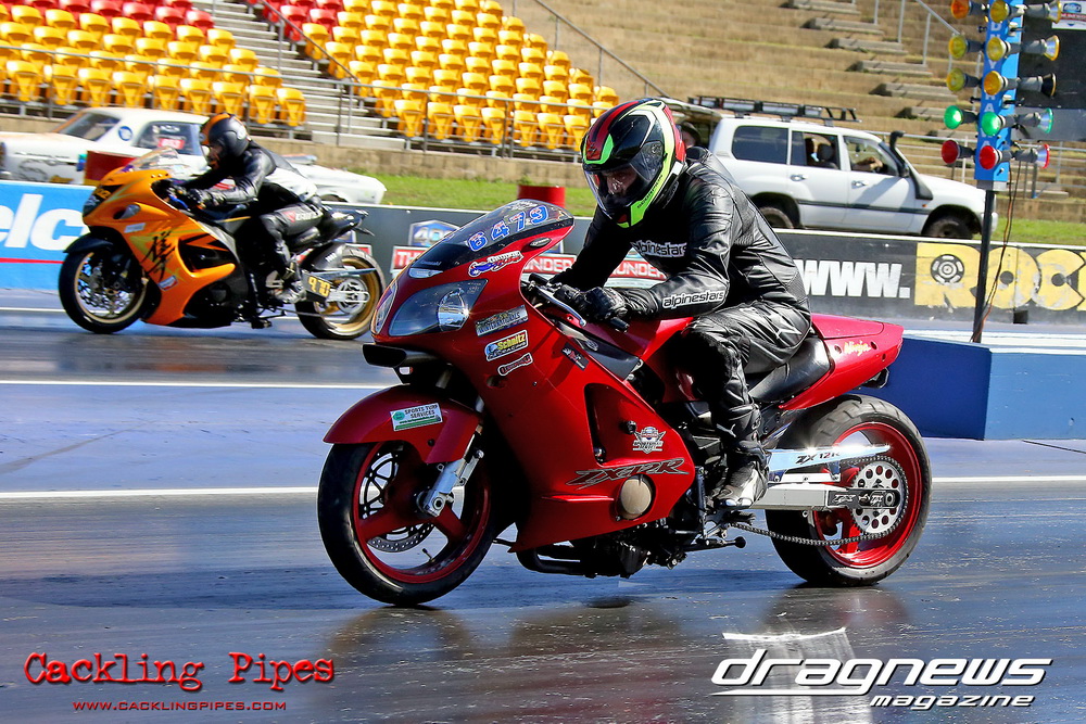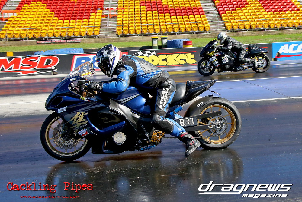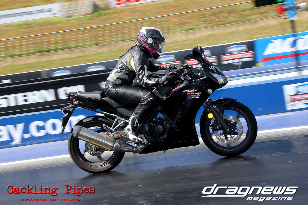 Reigning Street Bike champion Bobbie-Jo Simmonds has stepped up to Modified Bike and put one over current champion and husband Robert on her way to winning the event against Geoff Veigel in the final