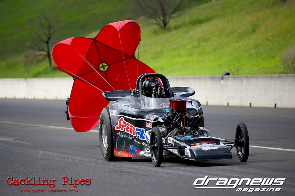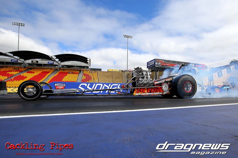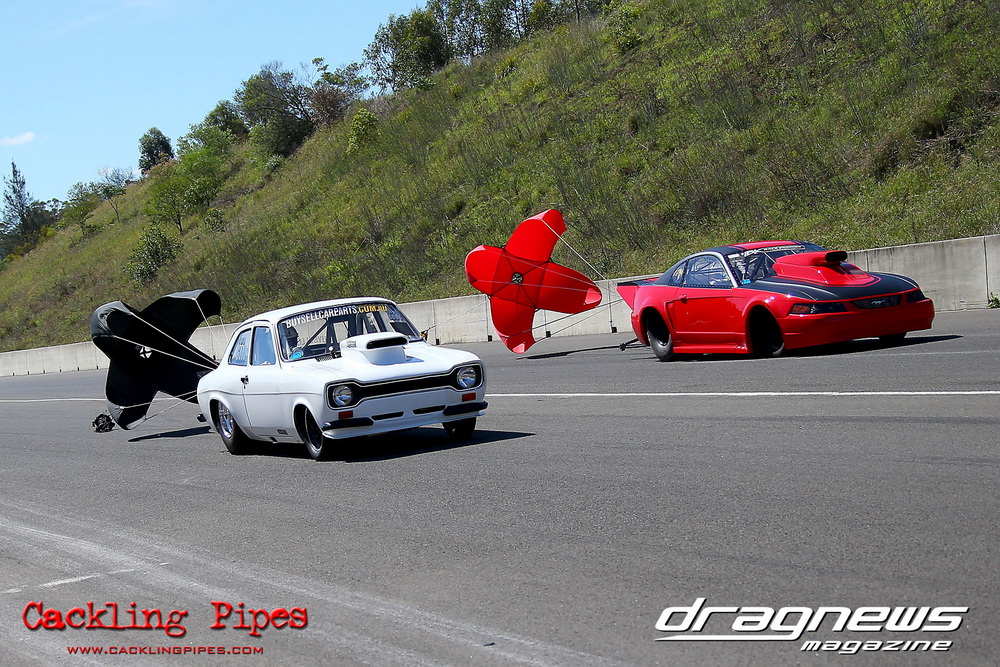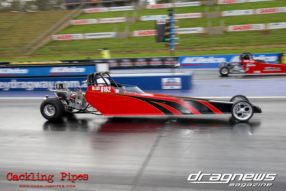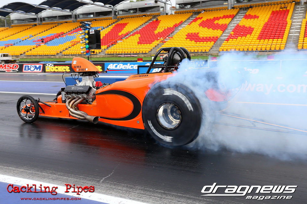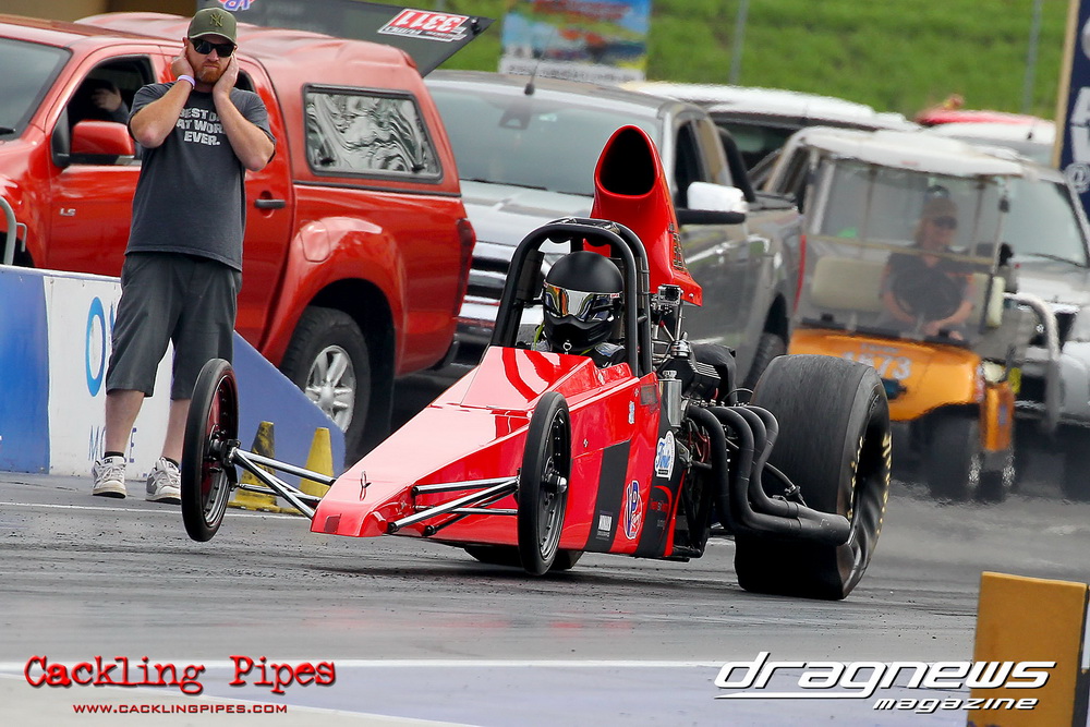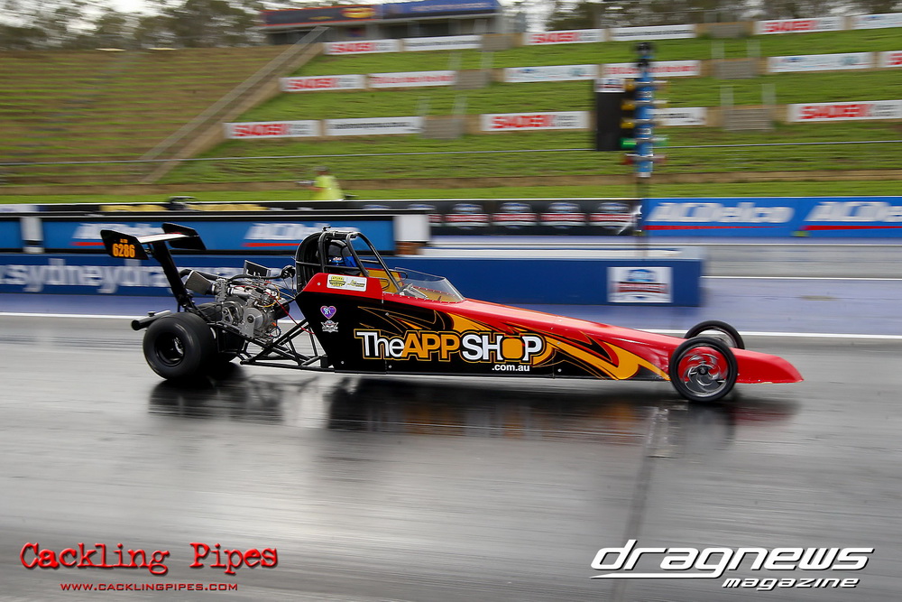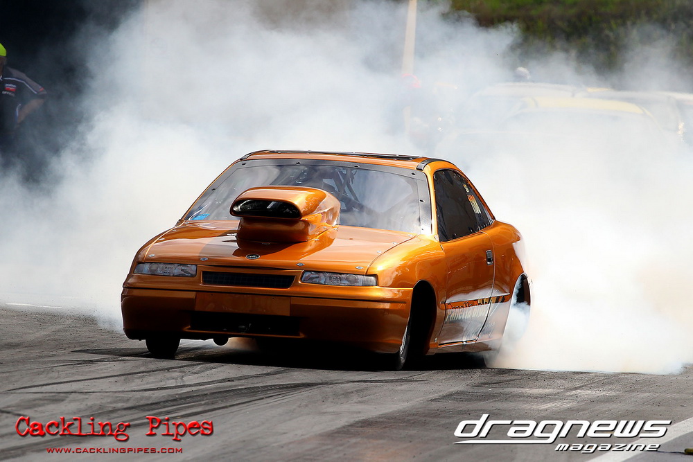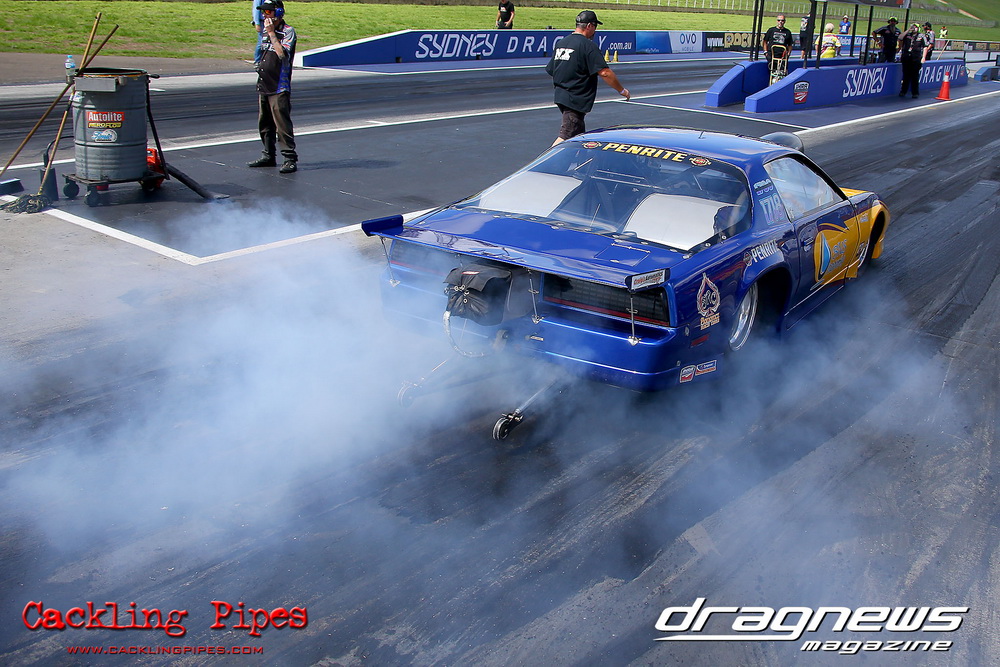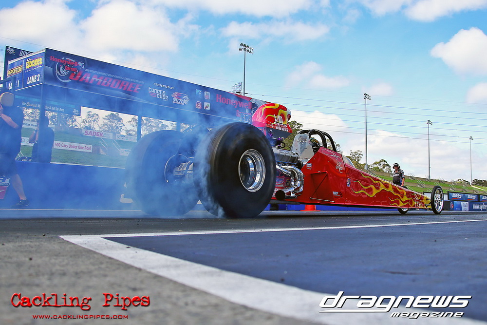 To that point the event was relatively incident free, bar Daniel Moore’s trip into the catch net which dented his freshly painted long-serving dragster.