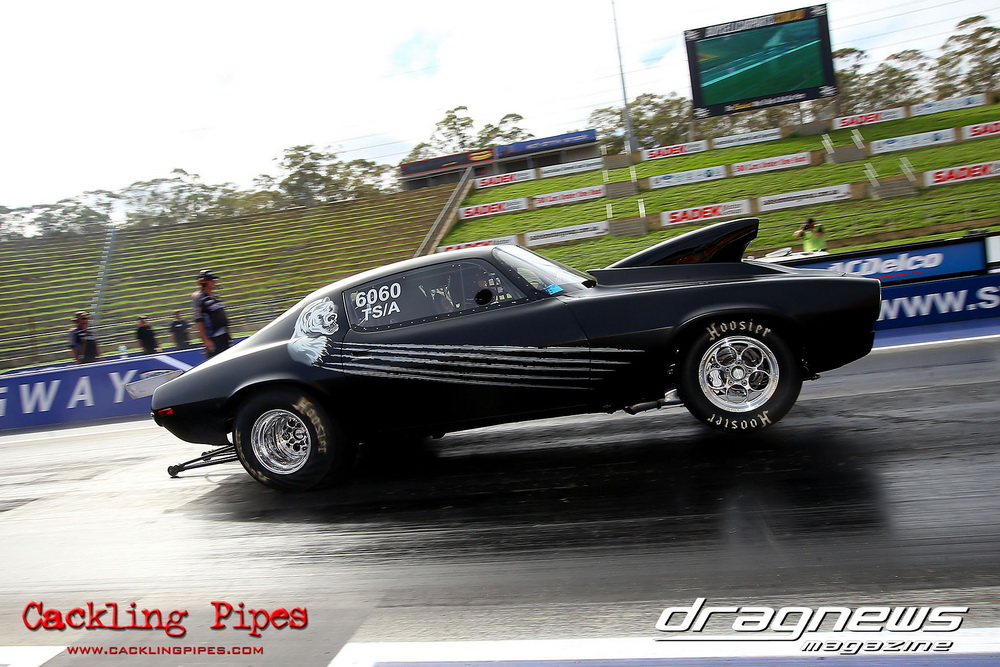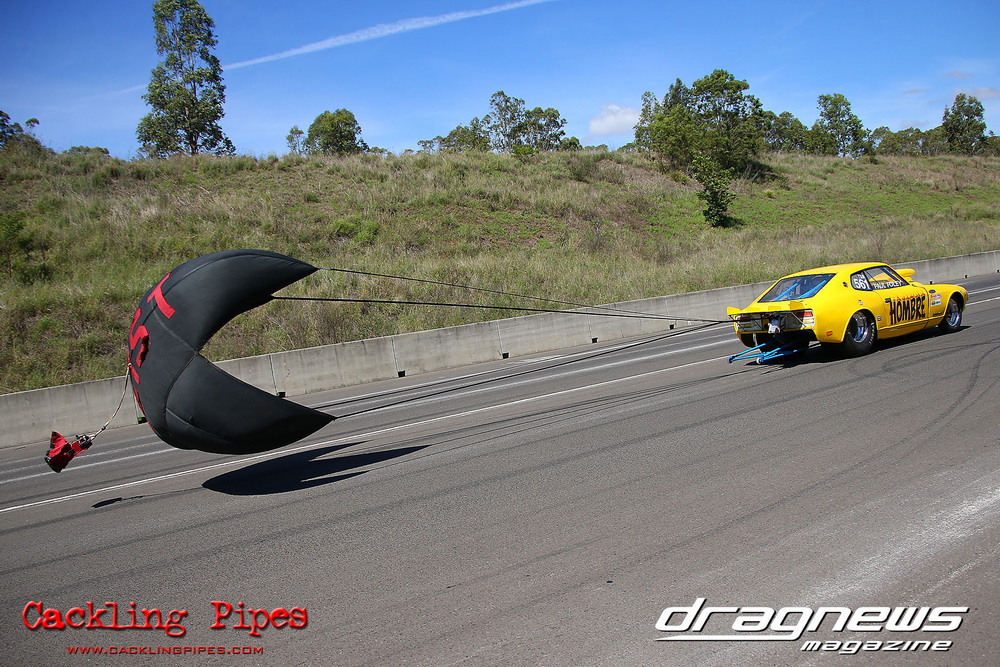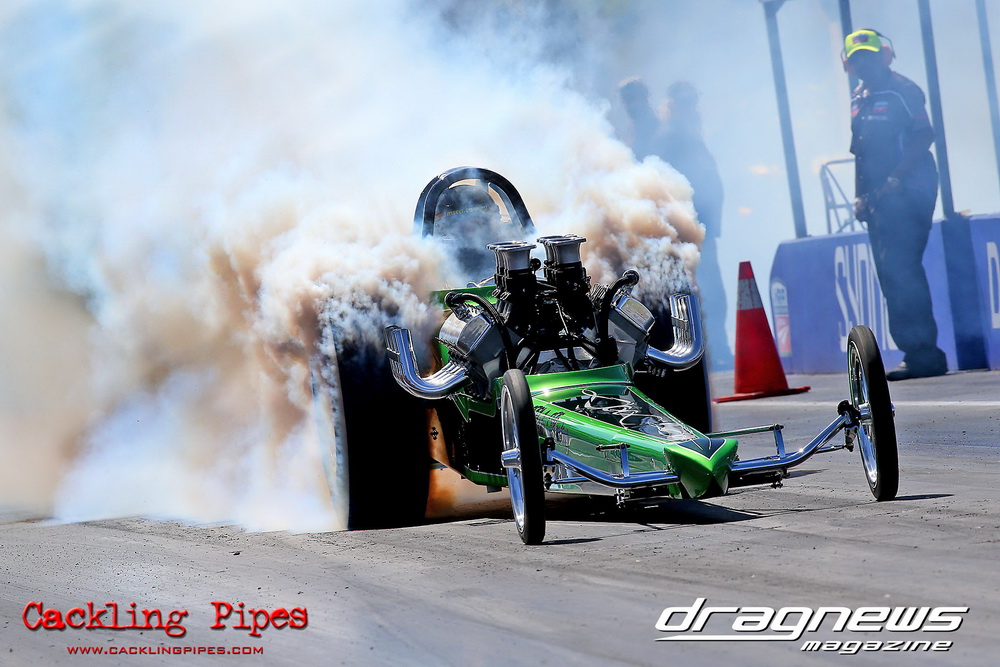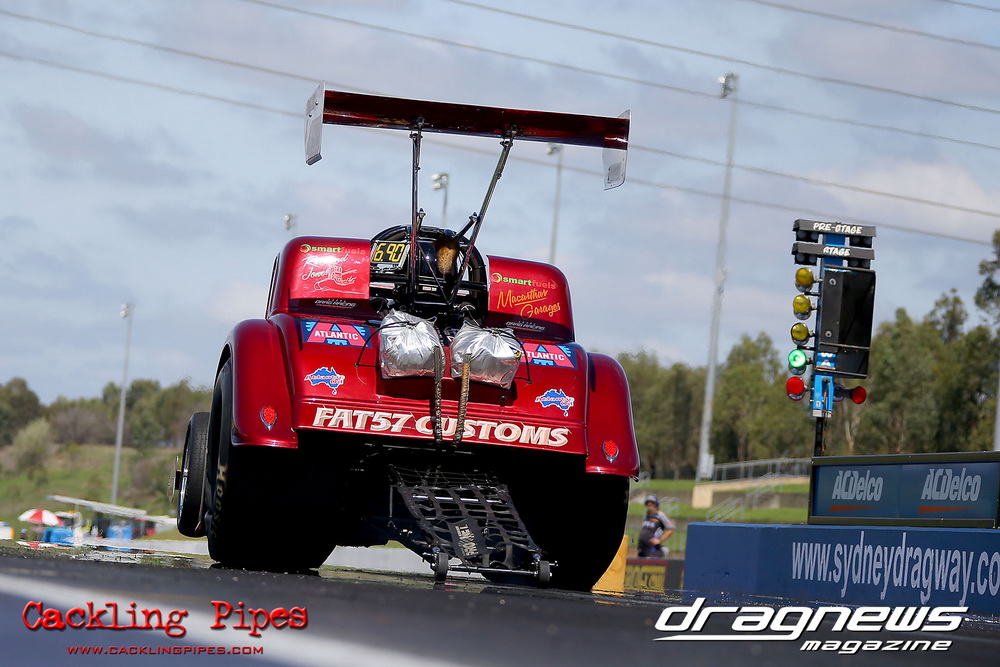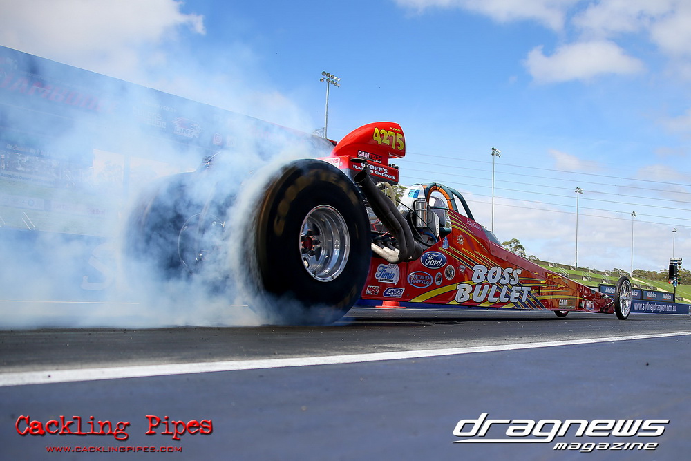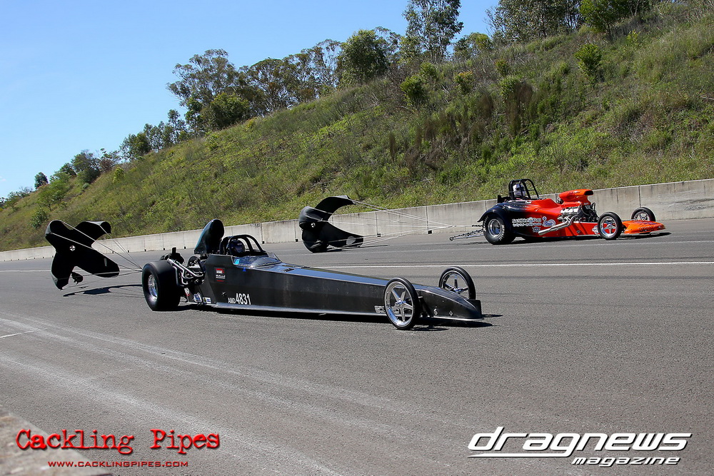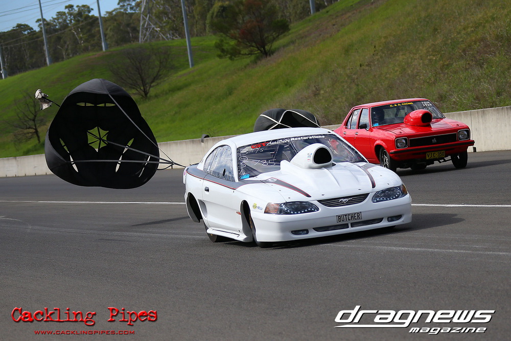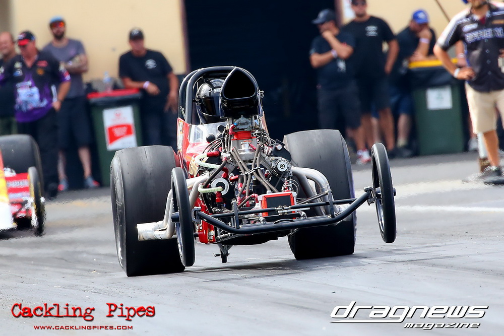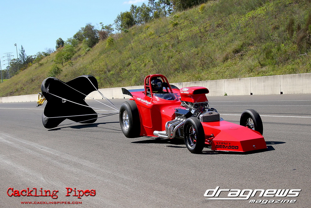 To that point the event was relatively incident free, bar Daniel Moore’s trip into the catch net which dented his freshly painted long-serving dragster.