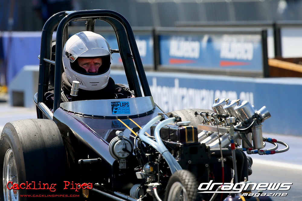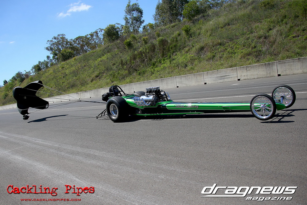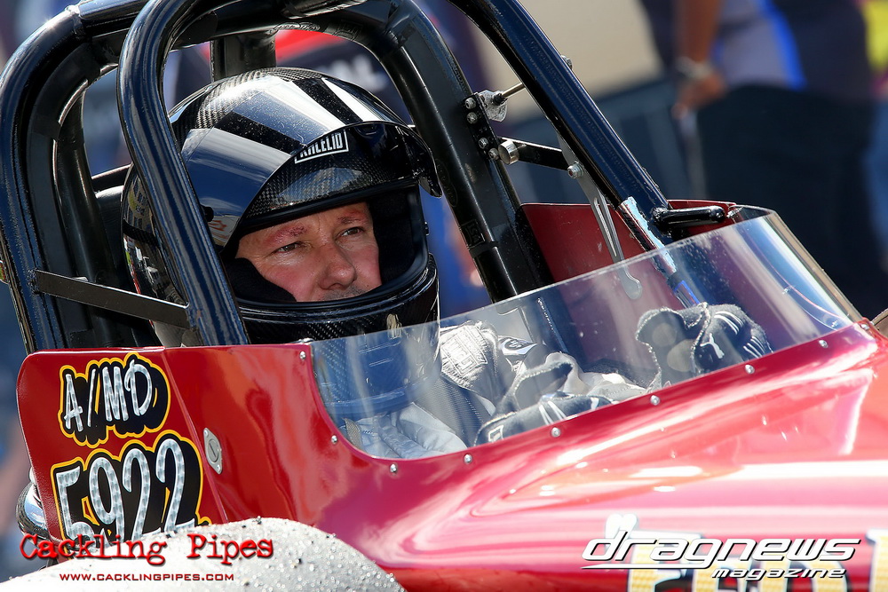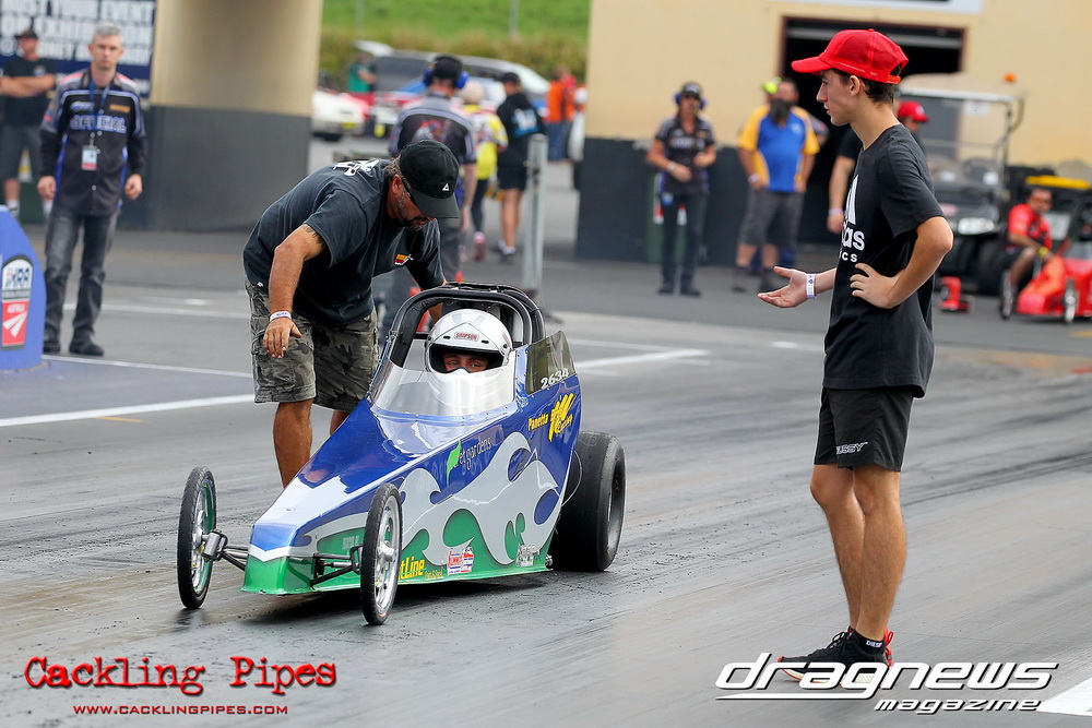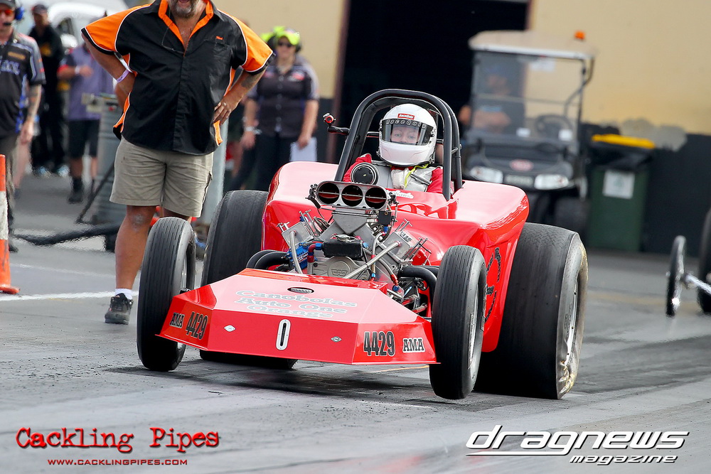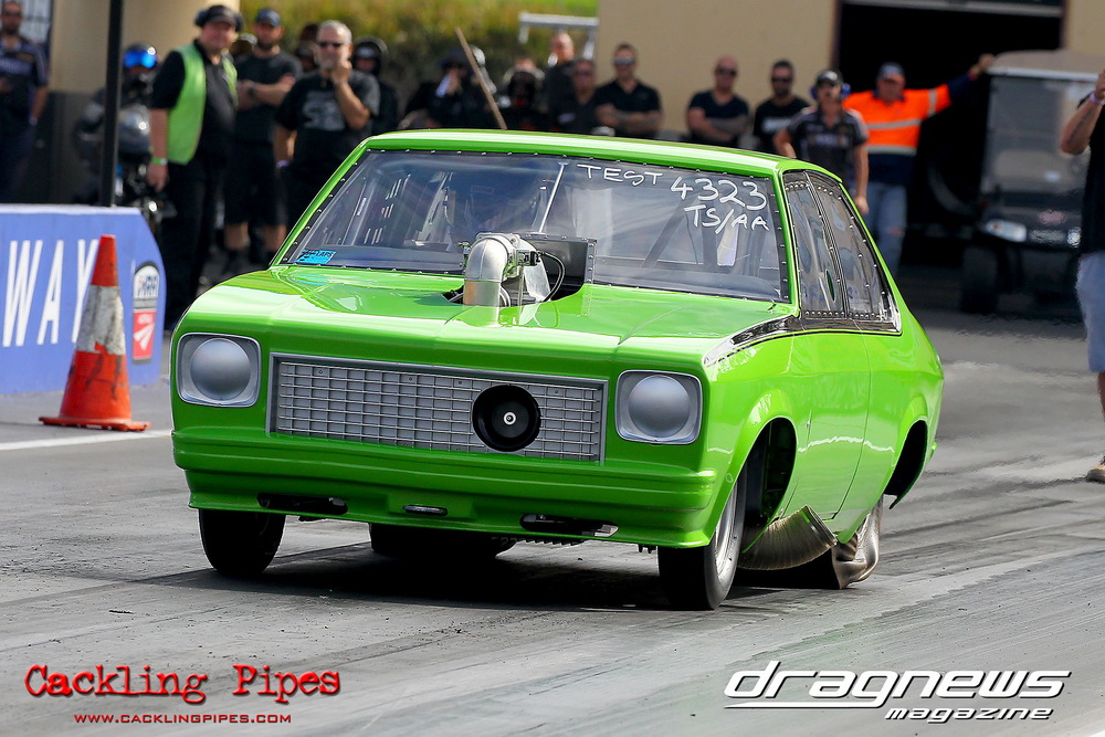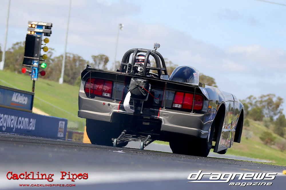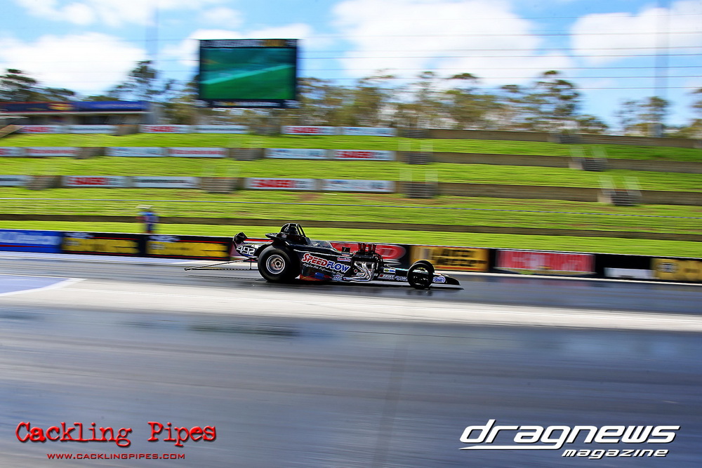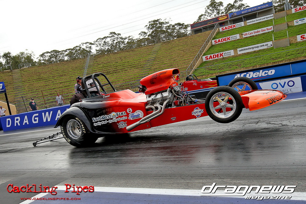 To that point the event was relatively incident free, bar Daniel Moore’s trip into the catch net which dented his freshly painted long-serving dragster.