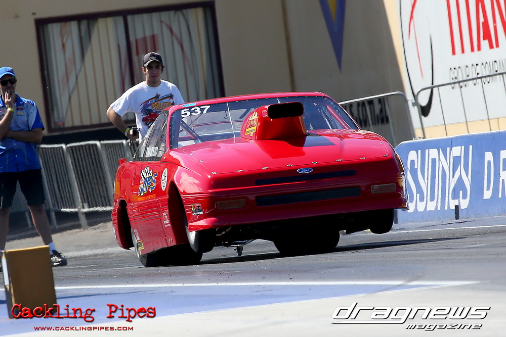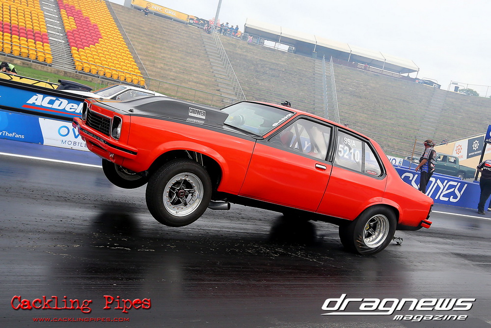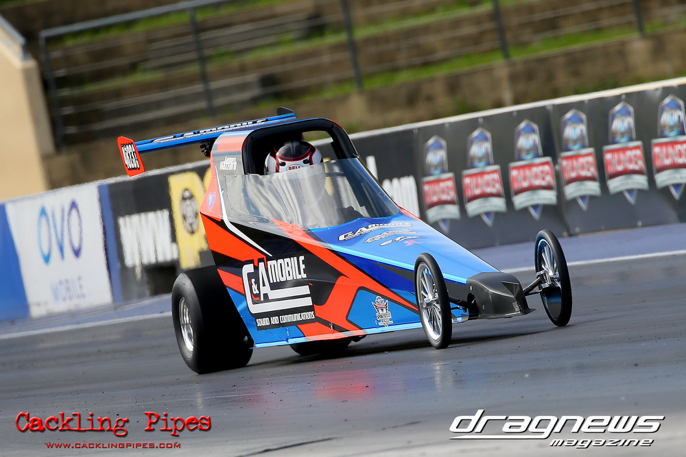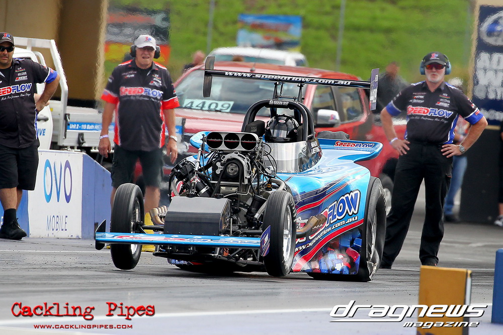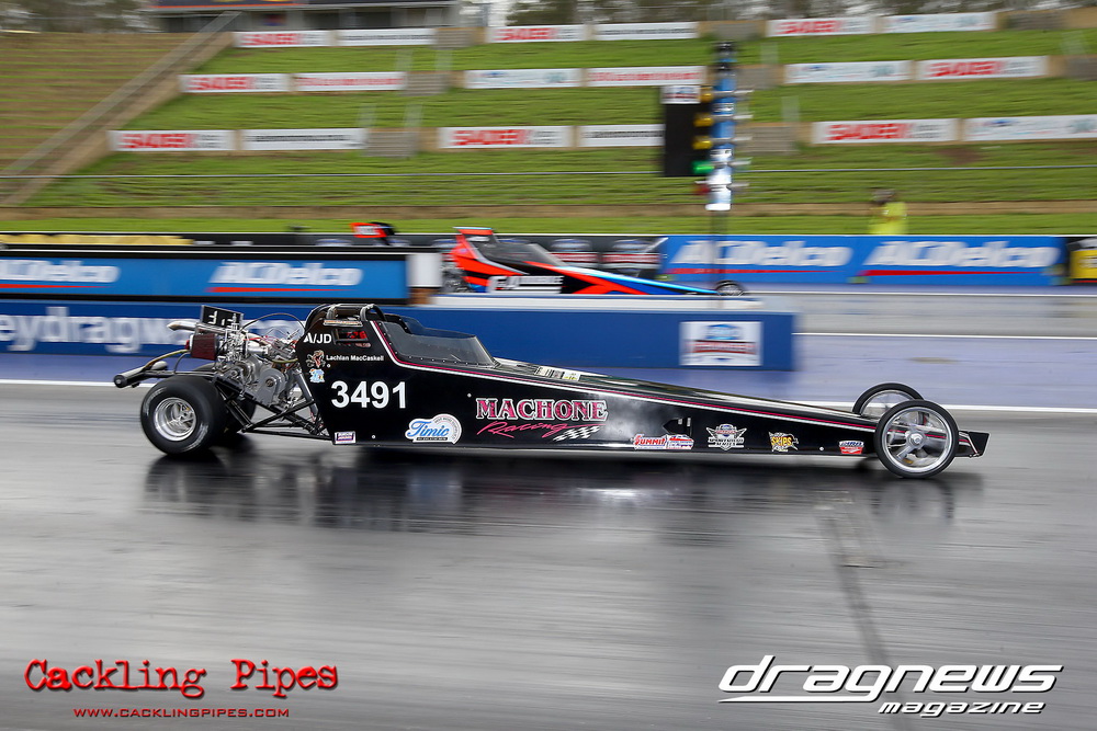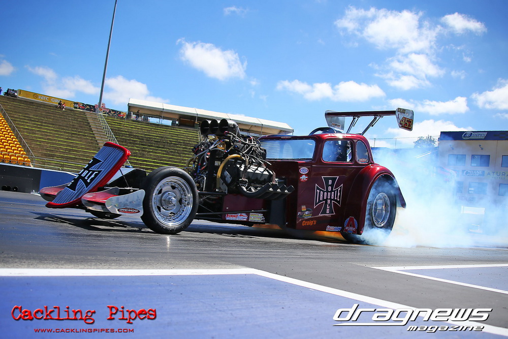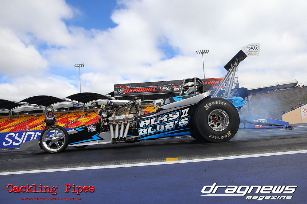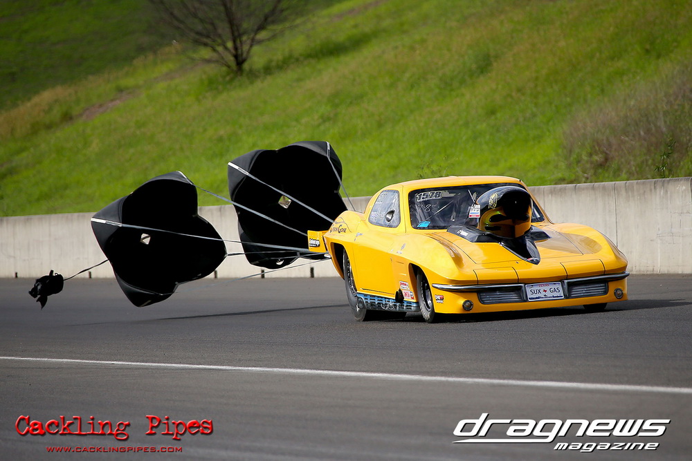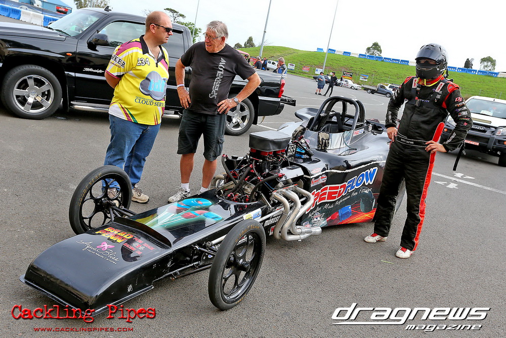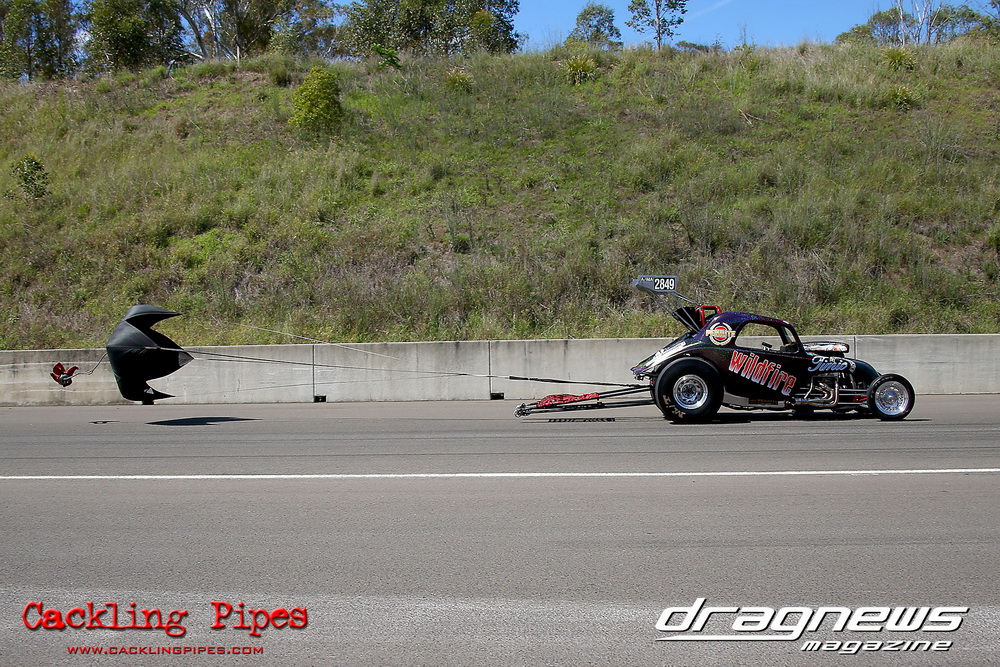 To that point the event was relatively incident free, bar Daniel Moore’s trip into the catch net which dented his freshly painted long-serving dragster.