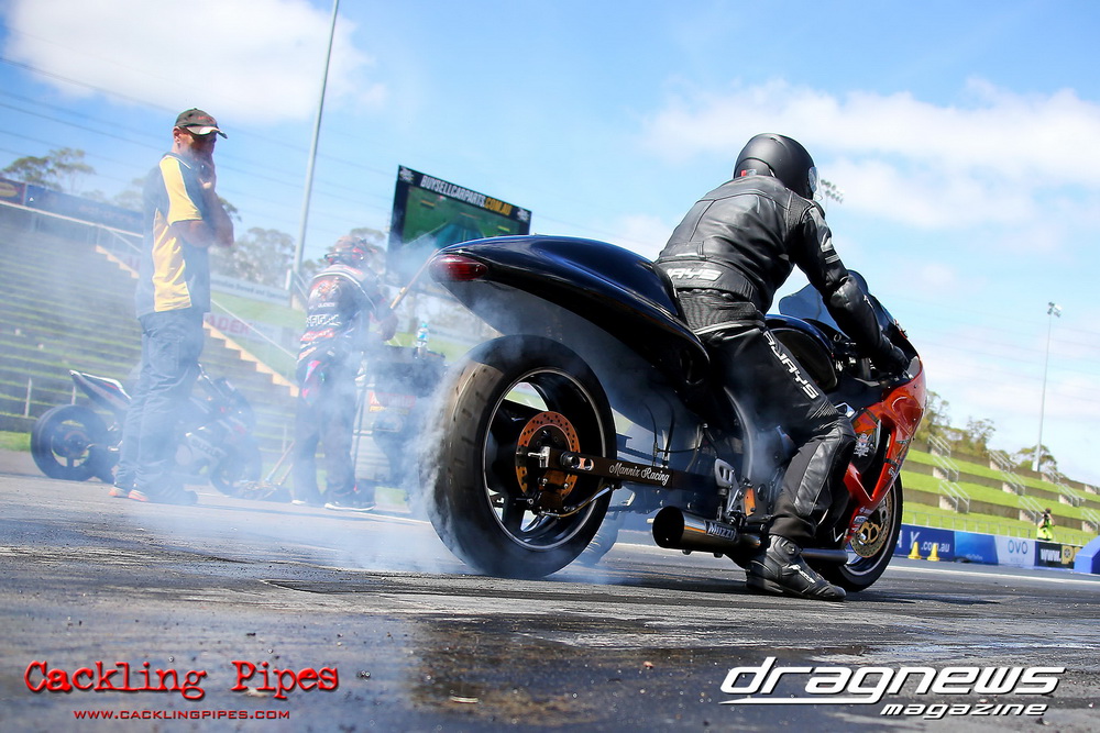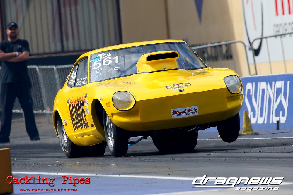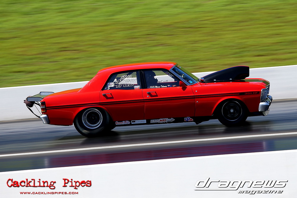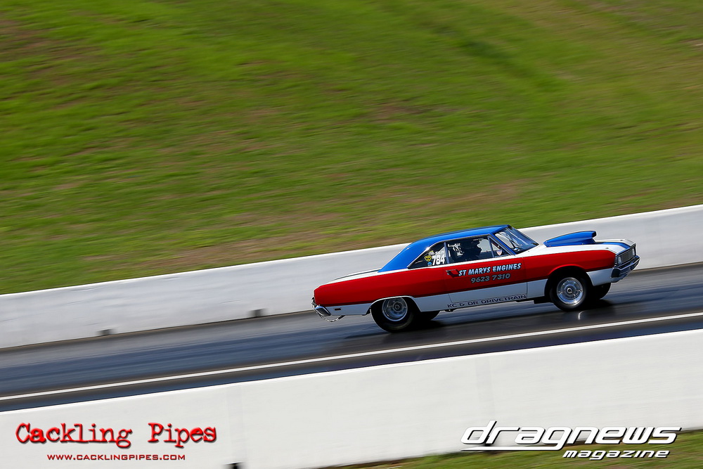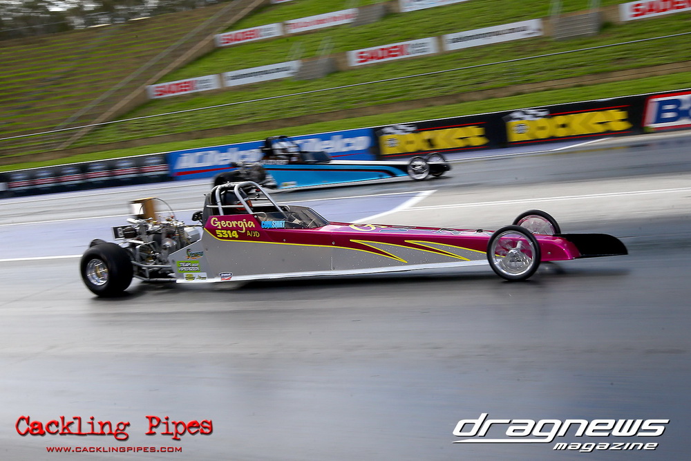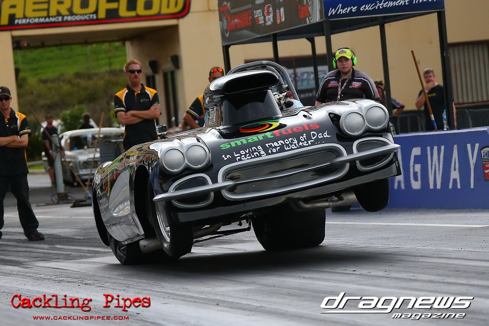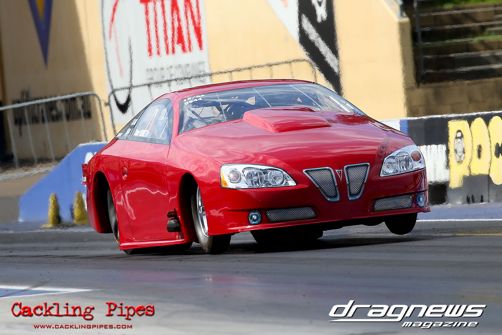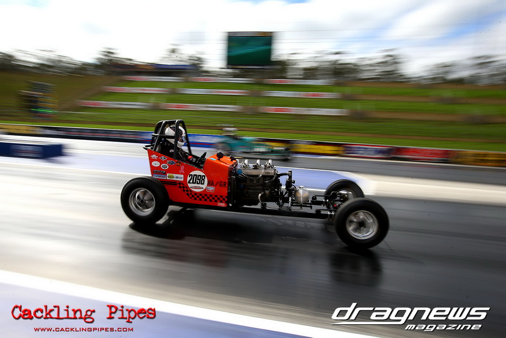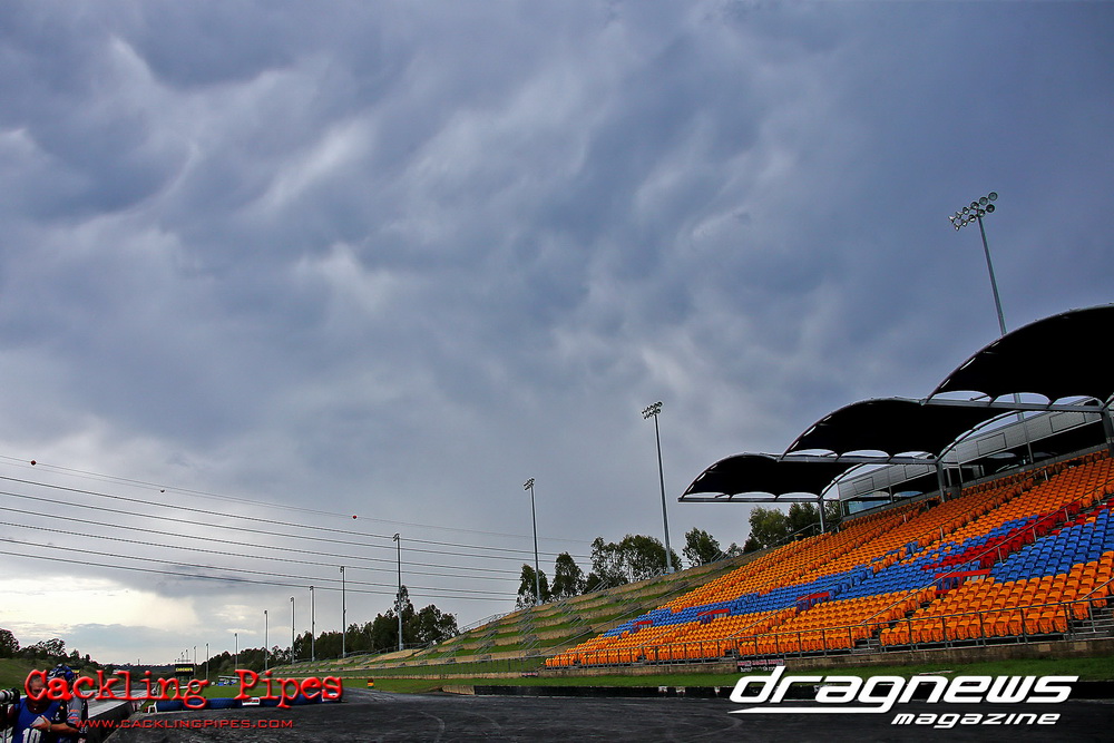 To that point the event was relatively incident free, bar Daniel Moore’s trip into the catch net which dented his freshly painted long-serving dragster.