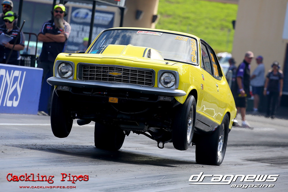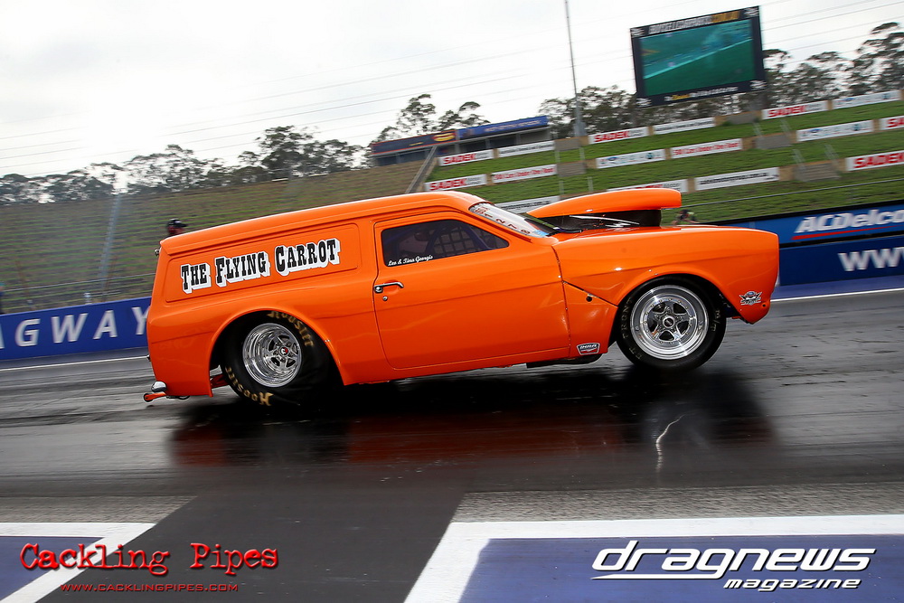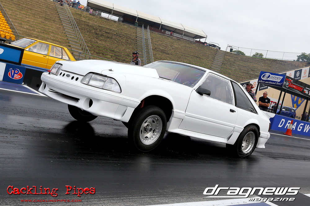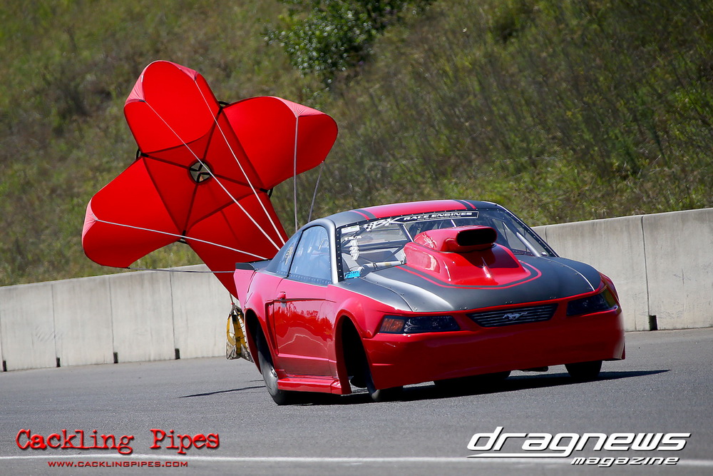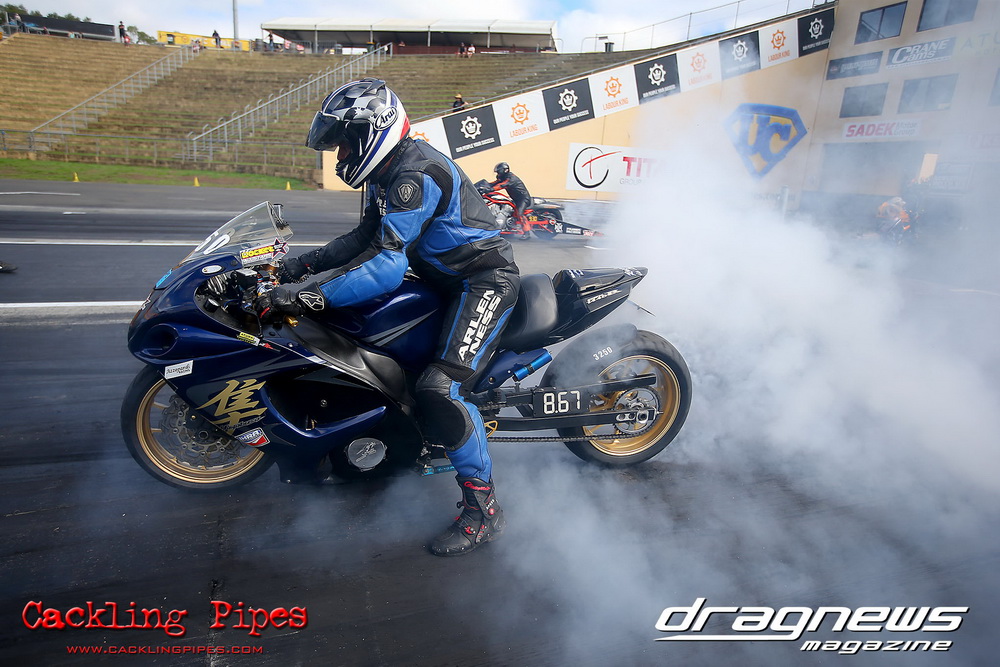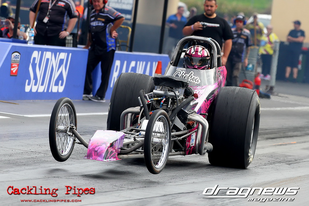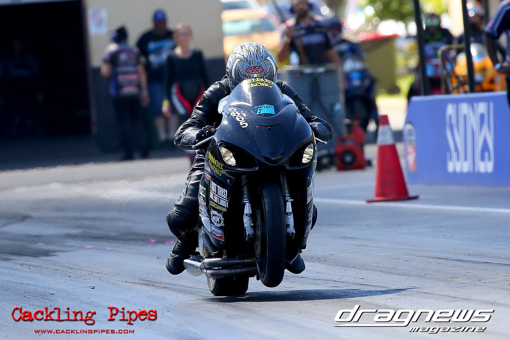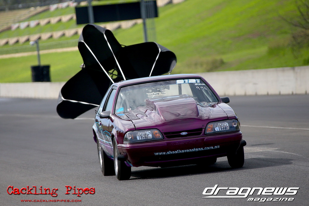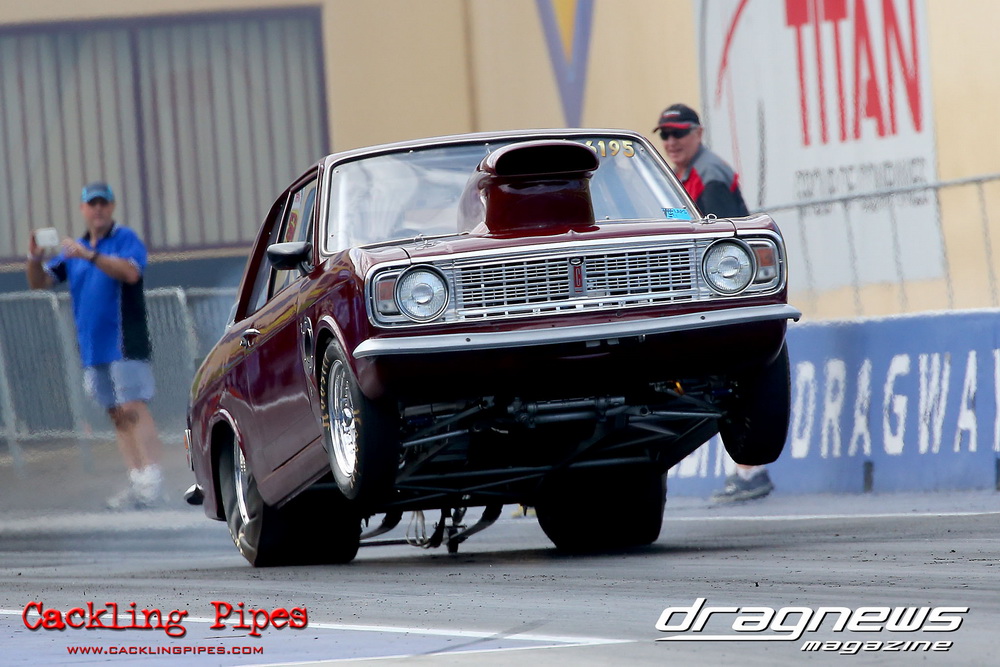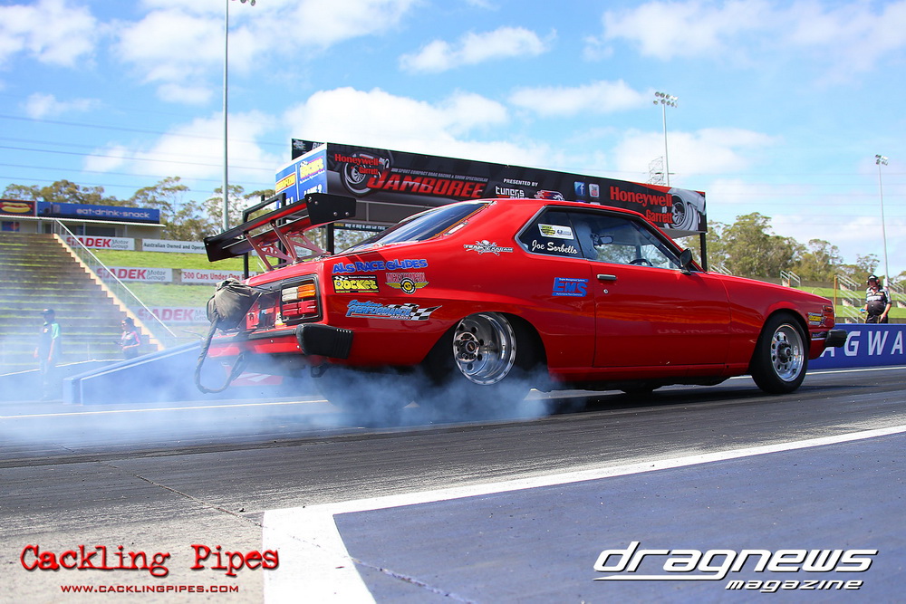 To that point the event was relatively incident free, bar Daniel Moore’s trip into the catch net which dented his freshly painted long-serving dragster.