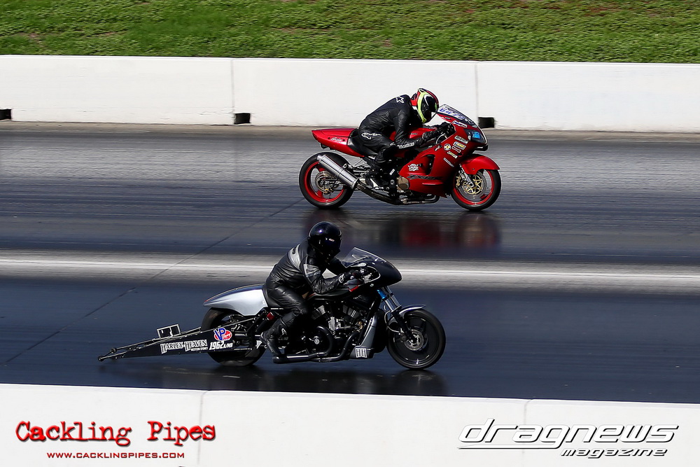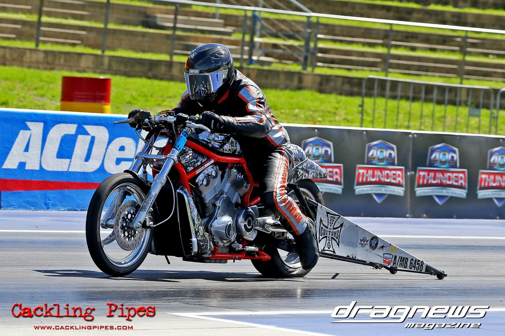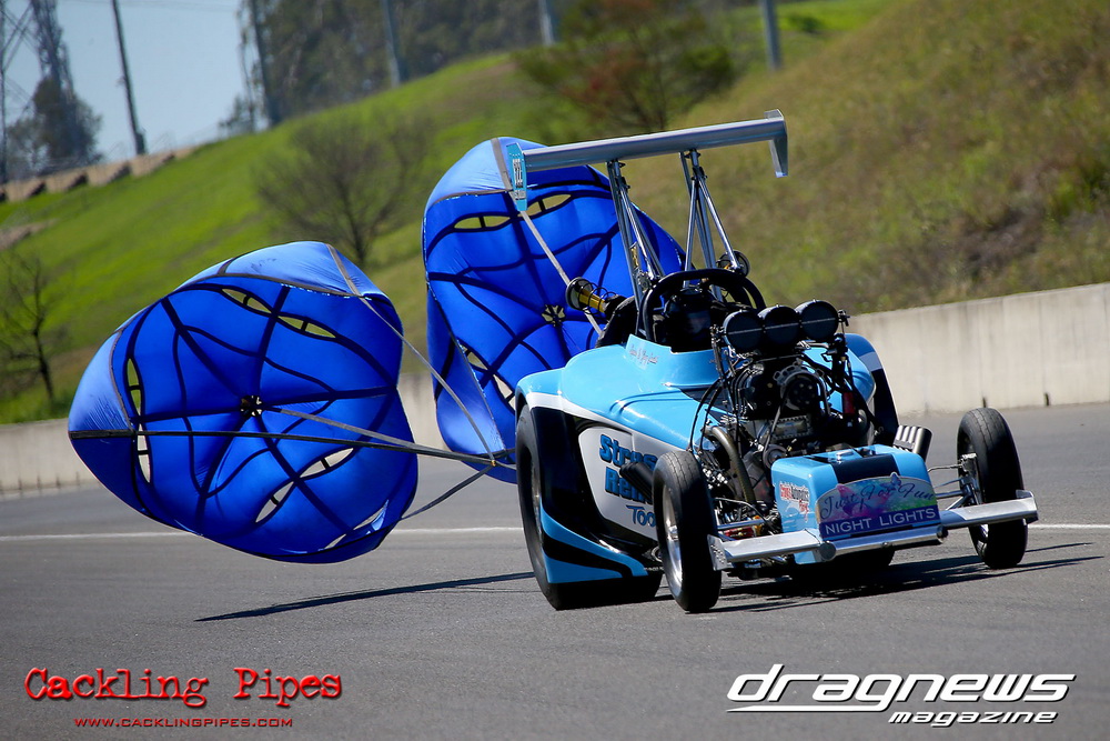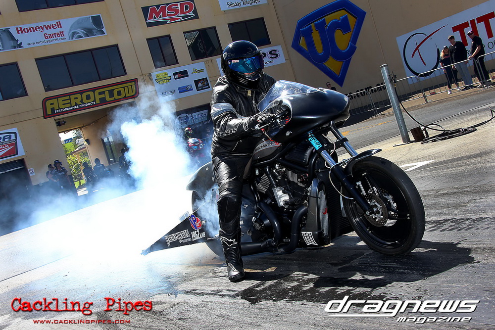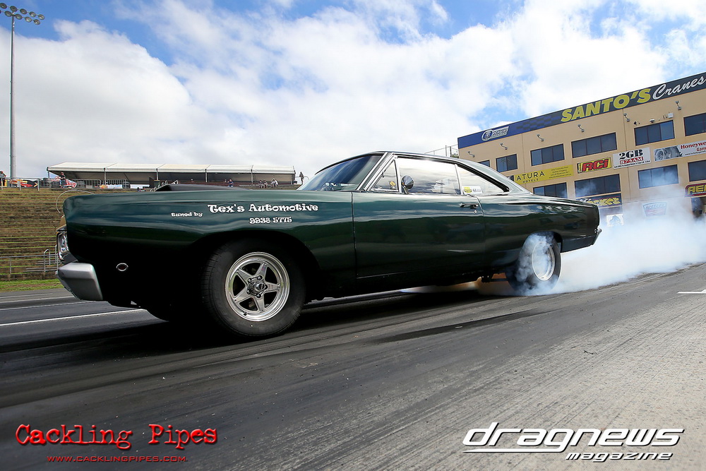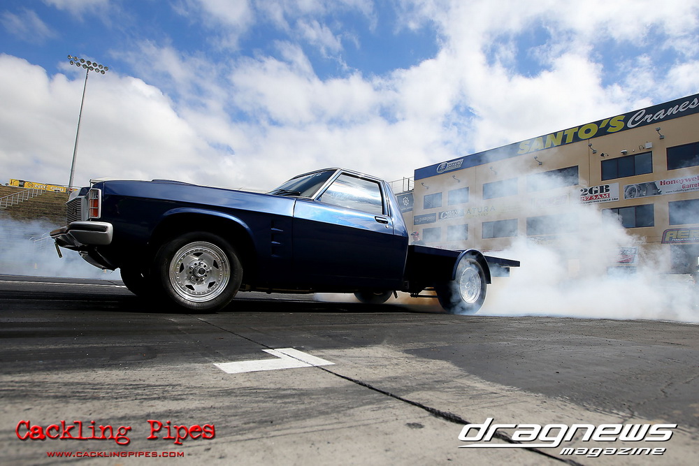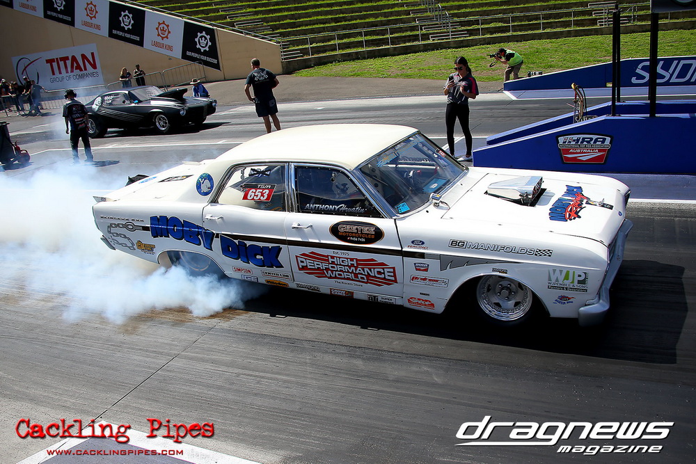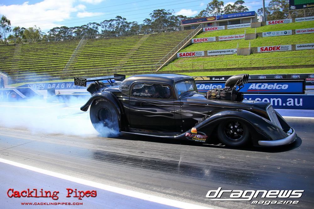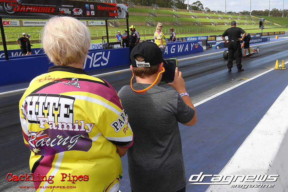 To that point the event was relatively incident free, bar Daniel Moore’s trip into the catch net which dented his freshly painted long-serving dragster.