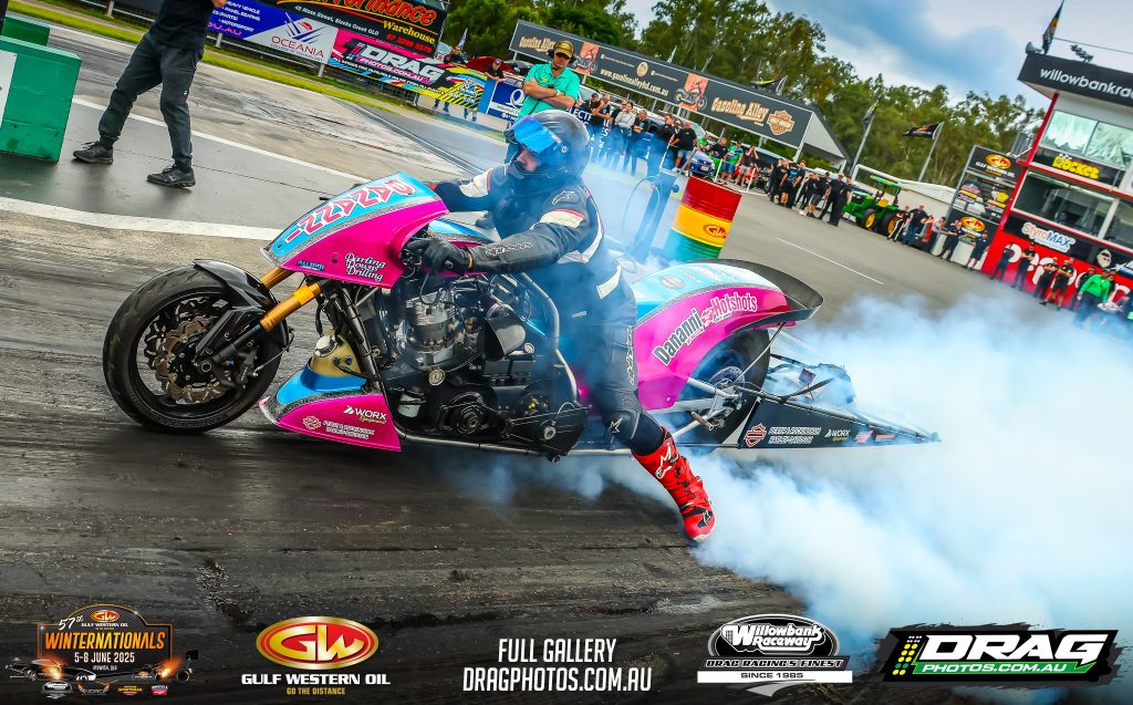Vanessa Rohdmann will make her racing debut in Pro Stock Motorcycle at the Winternationals. She will be the first Australian based female to compete in the bracket in several decades. Of the other bikes testing, Daniel Rabnott proved to be the quickest with a 7.32.