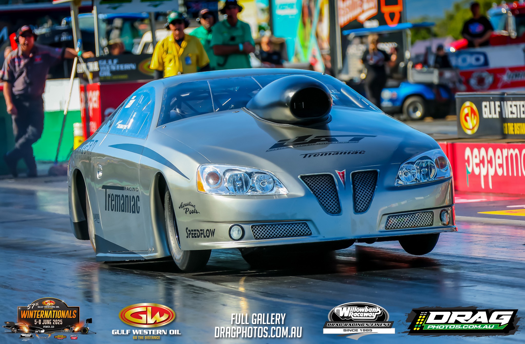 A 5.70 shot from Russell Taylor has the championship leader primed for the Winternationals. After a wild ride on his first pass, Rob Harrington kept all four wheels on the deck for subsequent 6.17 and 6.11 ETs in his Monaro. Kiwi Nigel Dixon nearly dipped back into the fives with a 6.004 shot and was the second quickest of the Top Doorslammers testing.