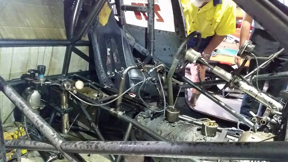 “The car was a bit of a handful off the start line, I pedalled and grabbed second gear and then one of the nozzles blocked to cylinder eight and torched the head gasket then torched into the car,” he said.