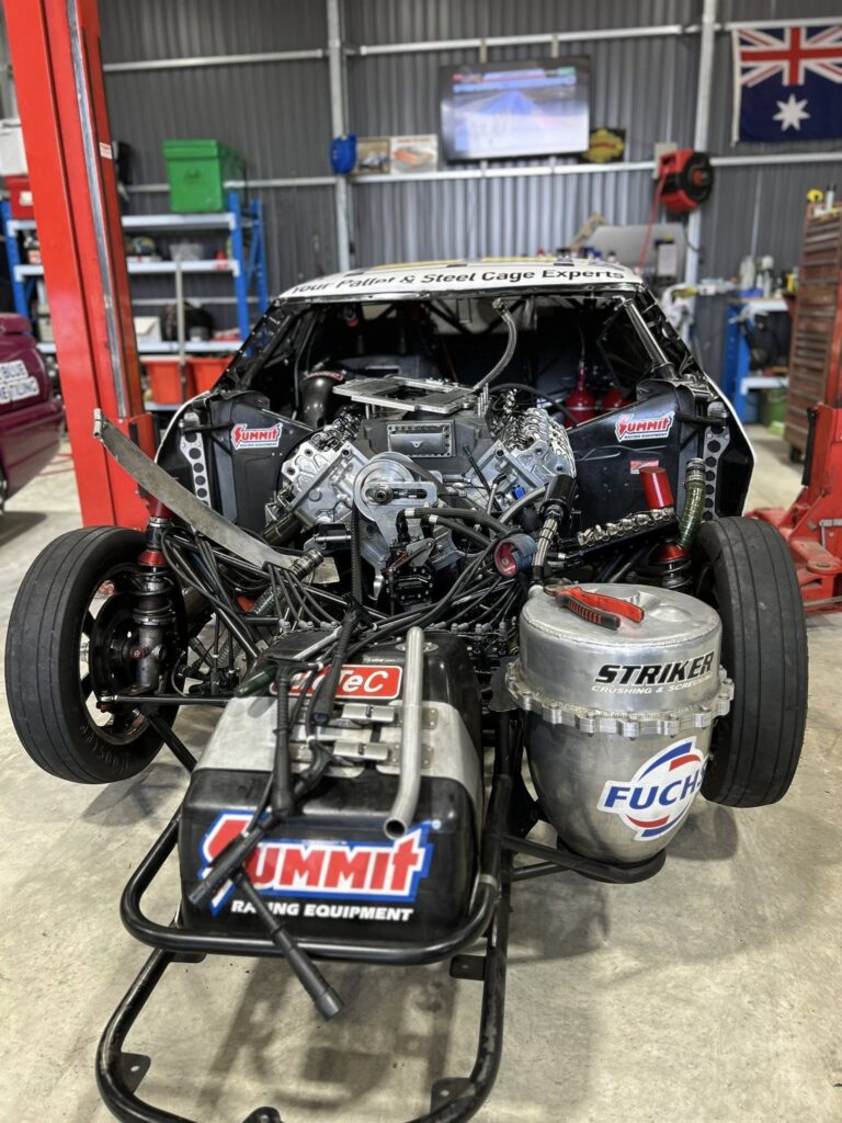 Arriving in Adelaide Thursday at 4pm, the Zappia crew pulled an 11pm thrash to install a complete rear end assembly—four-link brackets and all—that had been shipped ahead. The next morning they yanked the engine, changed the Crow Cams camshaft to their freshest ground unit, and bolted on a fresh supercharger before rolling to the starting line.