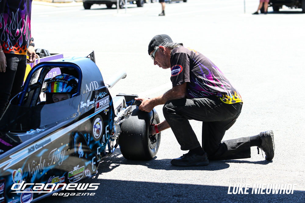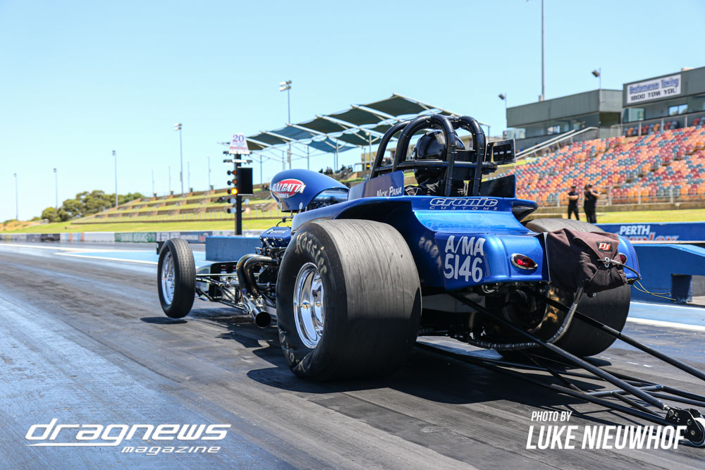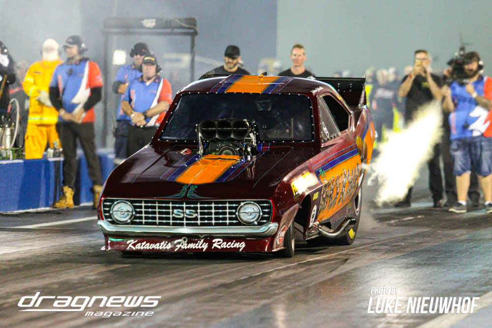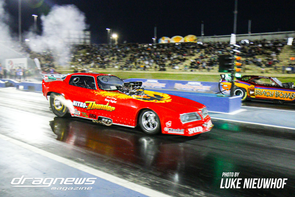 Nitro Funny Car racers Andrew Katavatis and Matt Abel from Northern Territory, who was driving Rory Taylor’s Nitro Thunder still turned out to put on a show, with Katavatis taking out the night’s match racing 2-1, as well as running the quickest time with a 5.601 clocking.