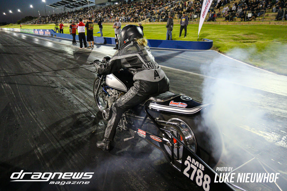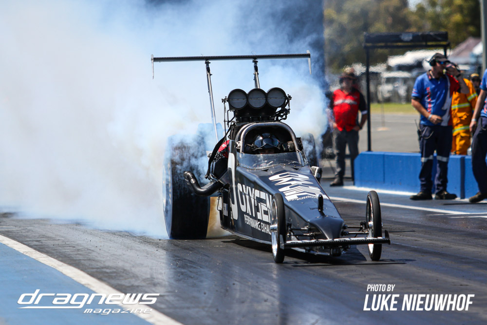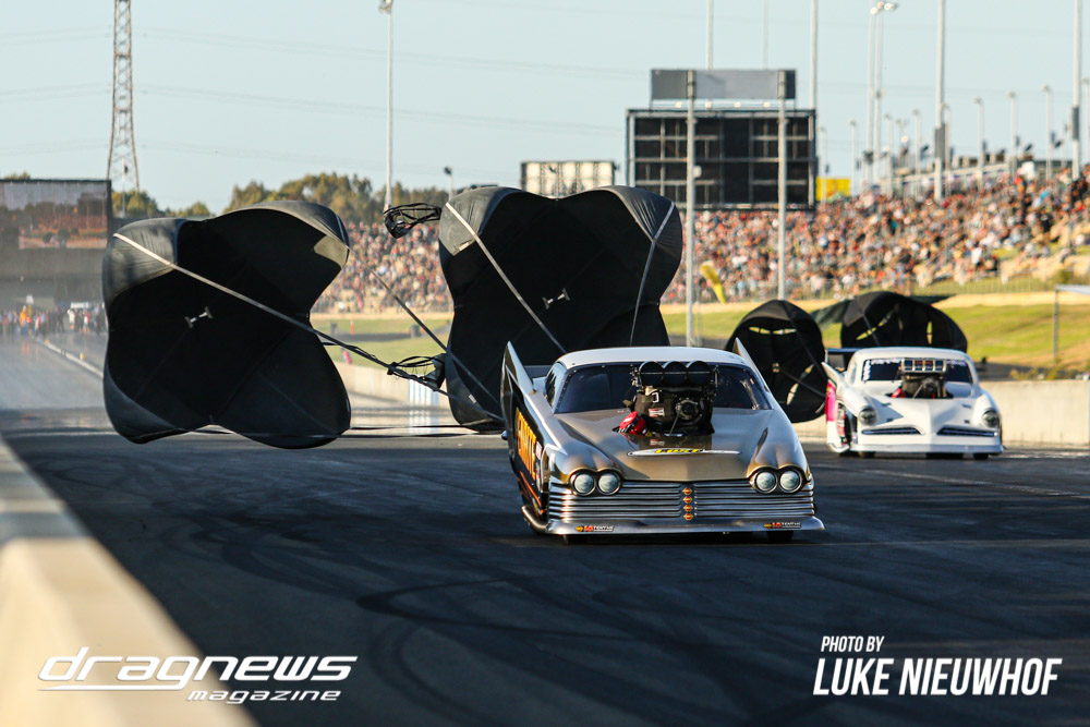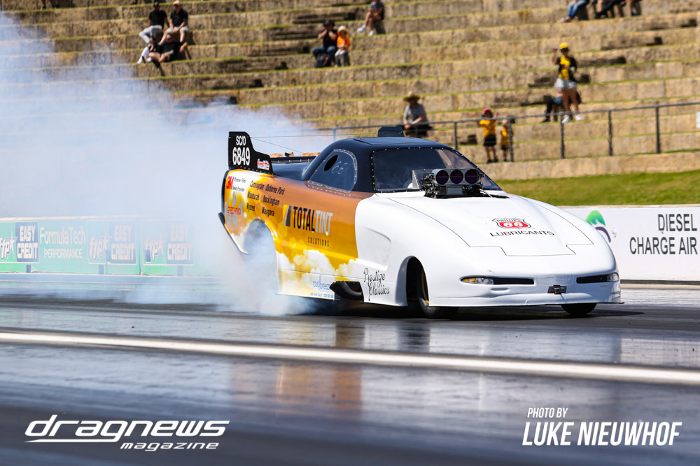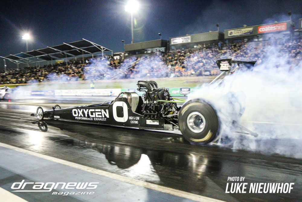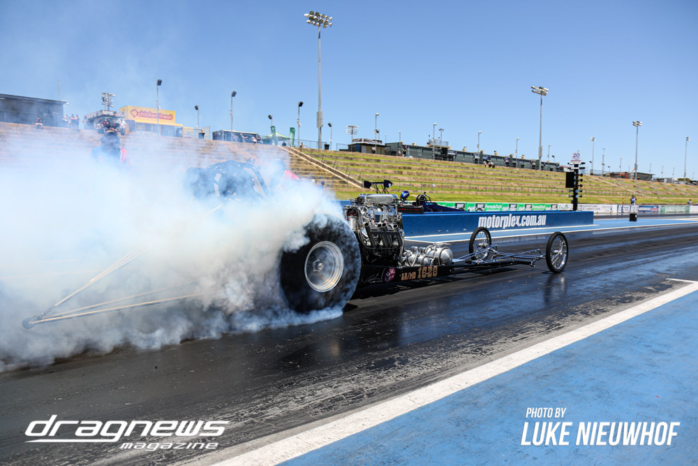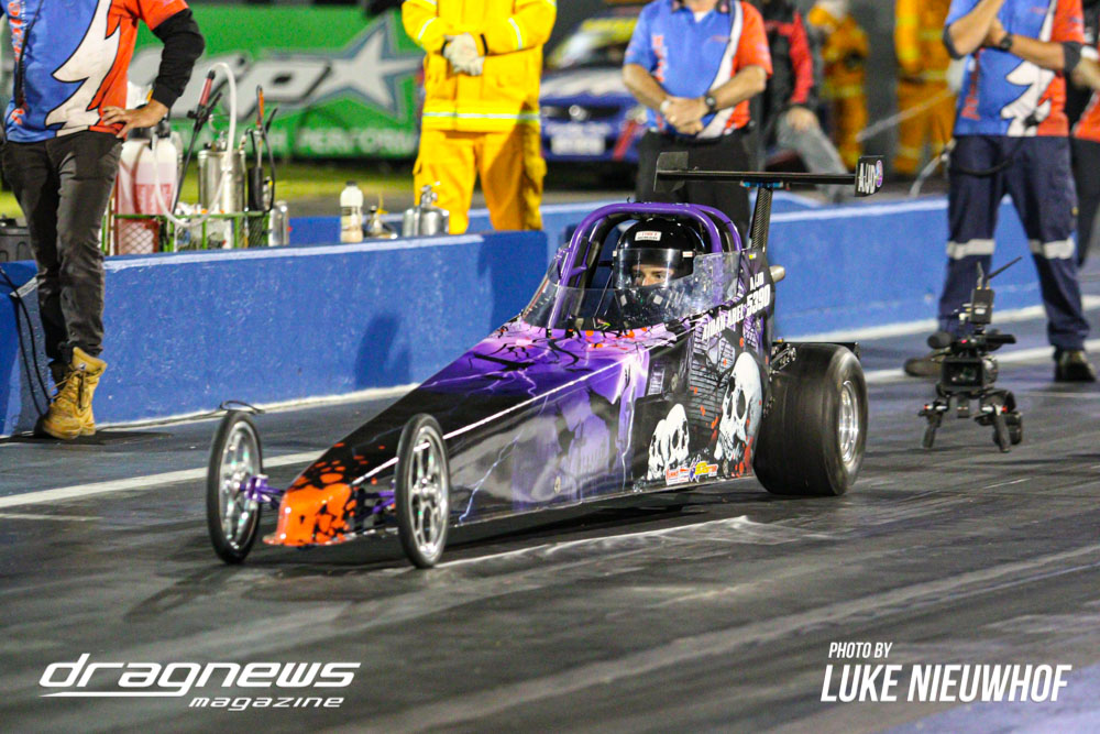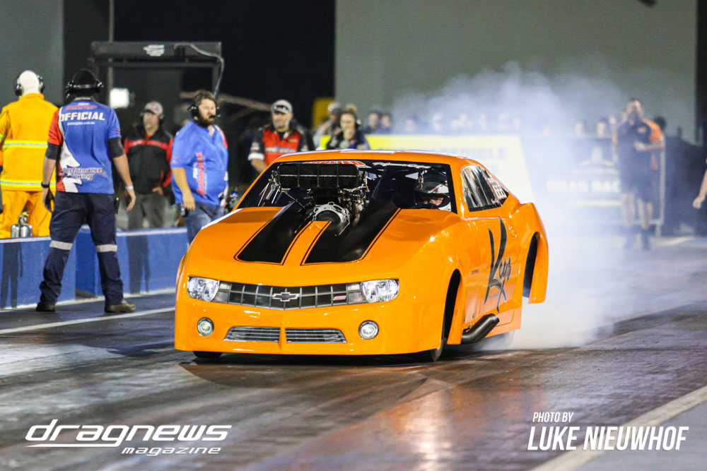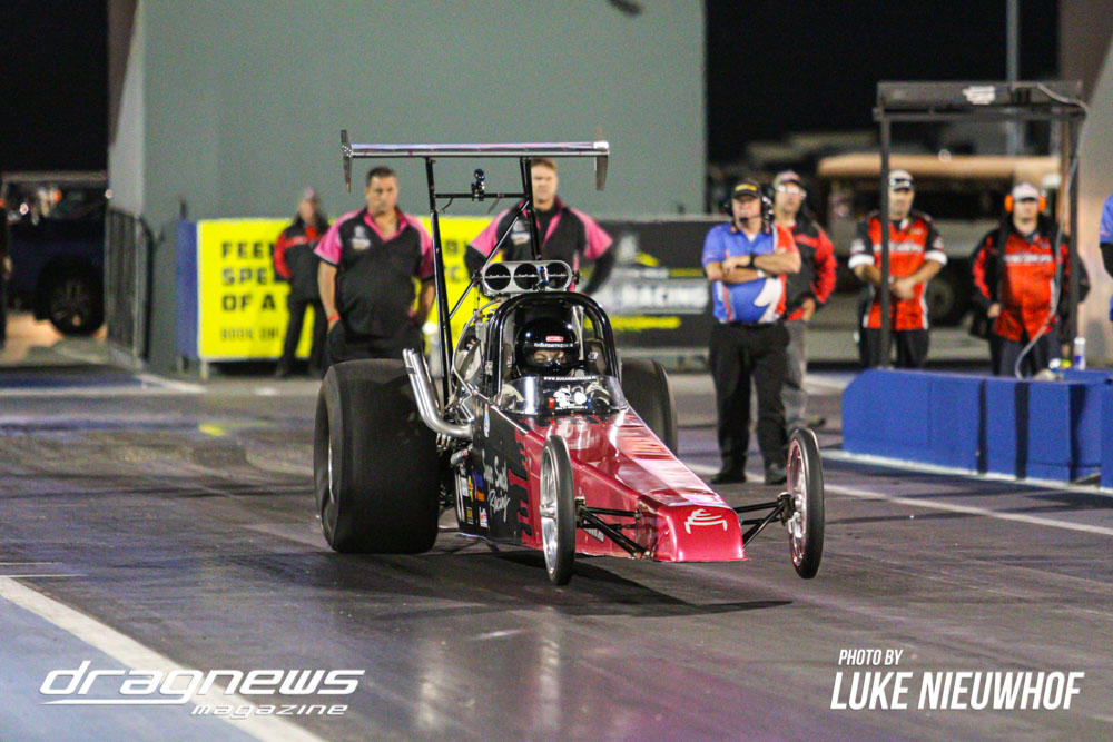Other winners on the night included Wayne Keys (Top Comp), Todd Stacy (Super Comp), Trent Anthony (Comp Bike), Jodie Mellitt (Supercharged Outlaws), Chris Roe (Top Sportsman), Kevin Boulton (Outlaw Radial), Cory Treasure (Modified), Mick Fenton (Super Sedan), Chris Allen (Modified Bike), Richard Stevens (Super Street) and Brodie Zappia (Junior Dragster).