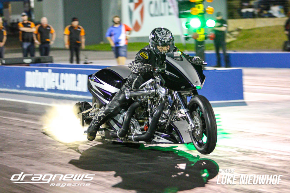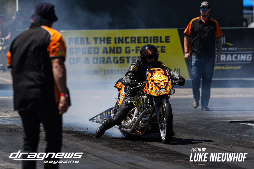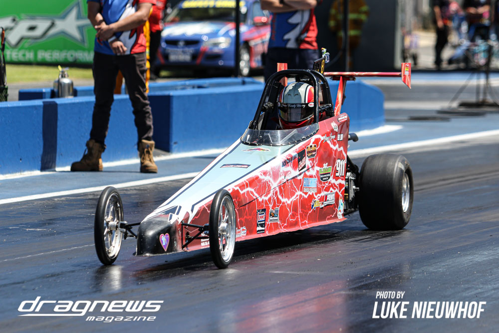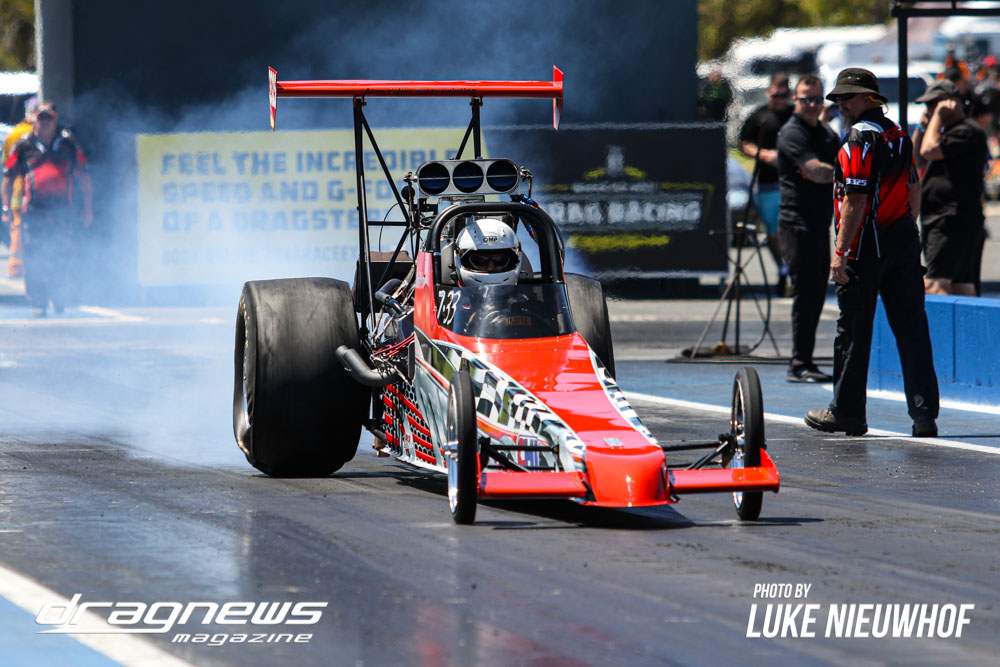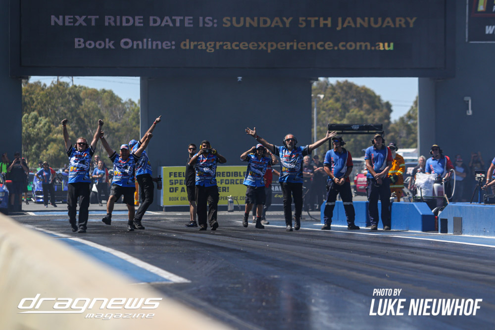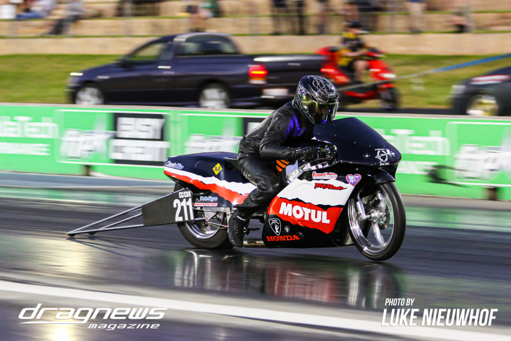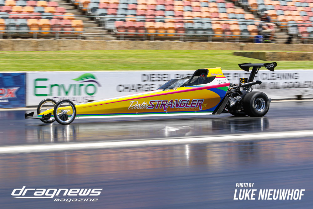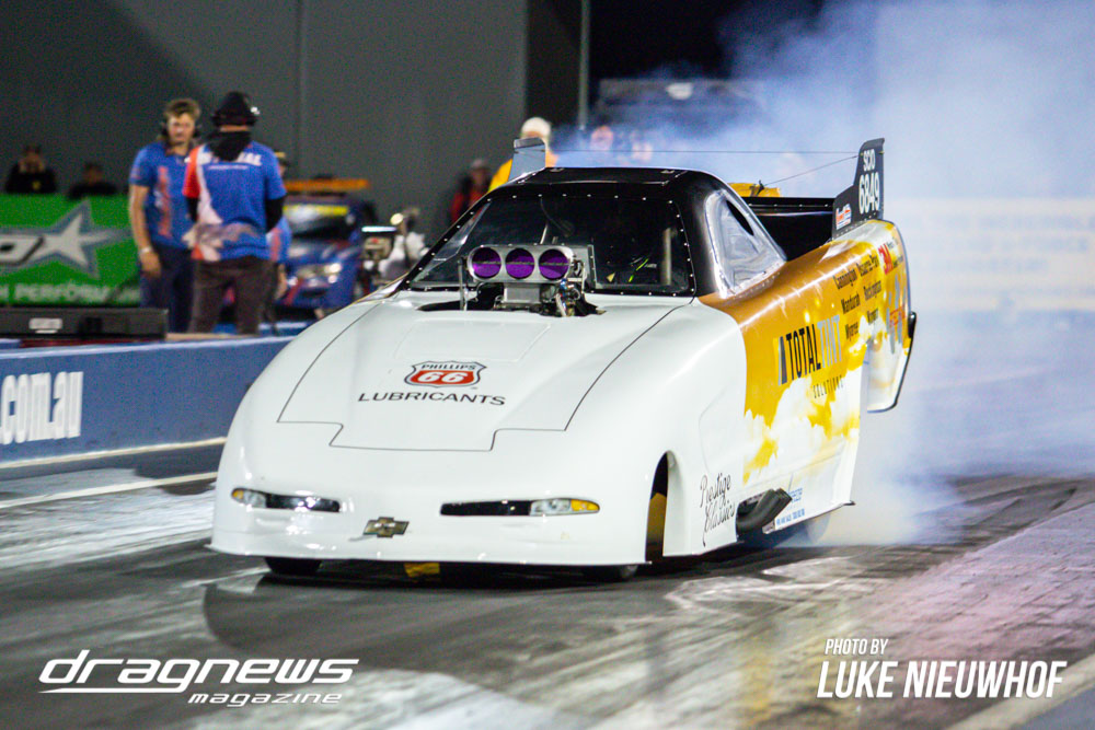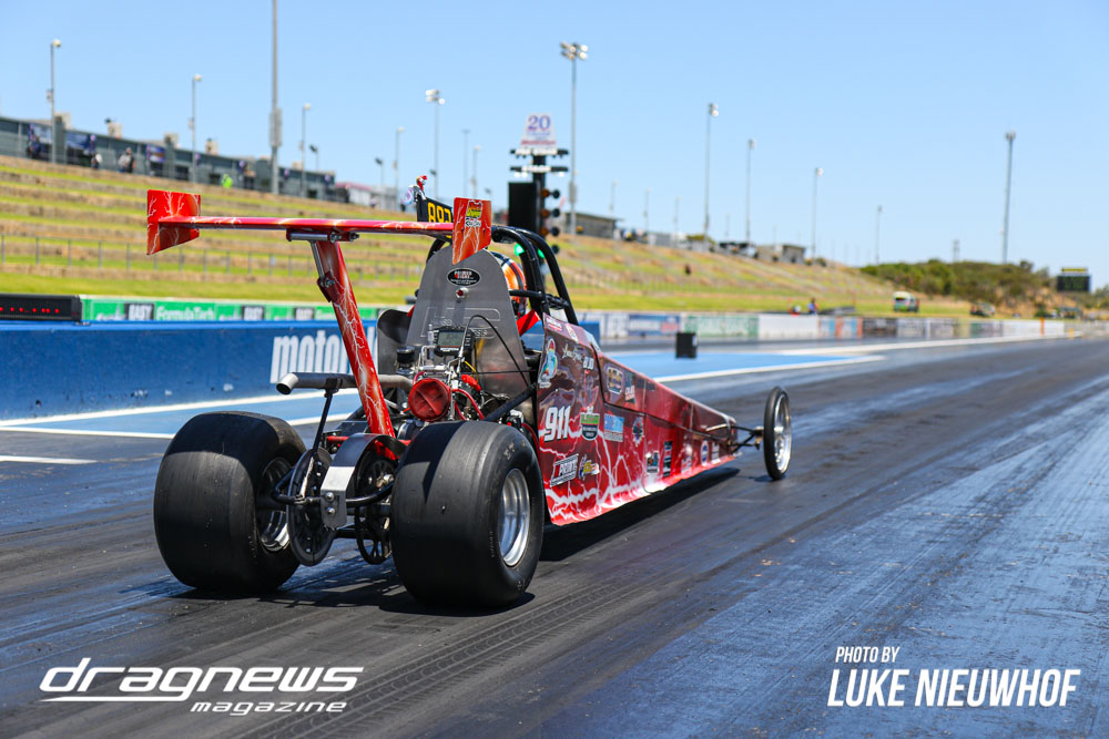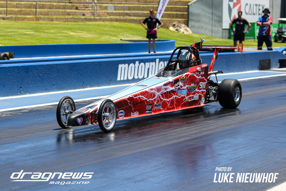 Other winners on the night included Wayne Keys (Top Comp), Todd Stacy (Super Comp), Trent Anthony (Comp Bike), Jodie Mellitt (Supercharged Outlaws), Chris Roe (Top Sportsman), Kevin Boulton (Outlaw Radial), Cory Treasure (Modified), Mick Fenton (Super Sedan), Chris Allen (Modified Bike), Richard Stevens (Super Street) and Brodie Zappia (Junior Dragster).