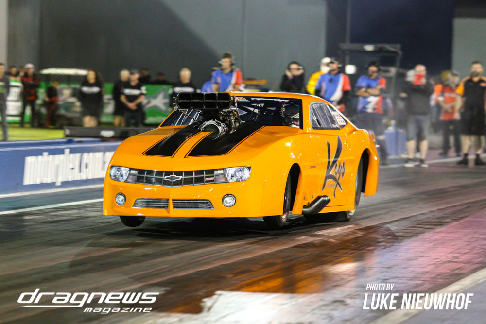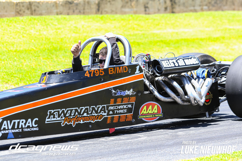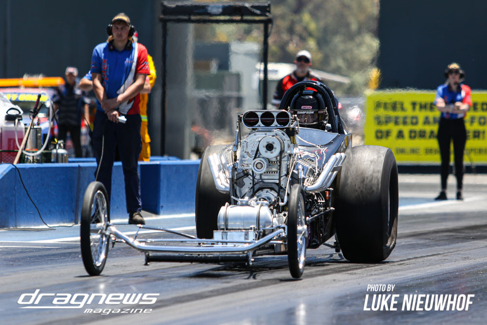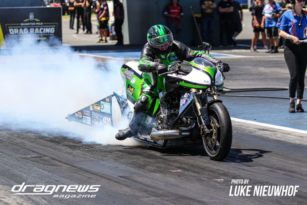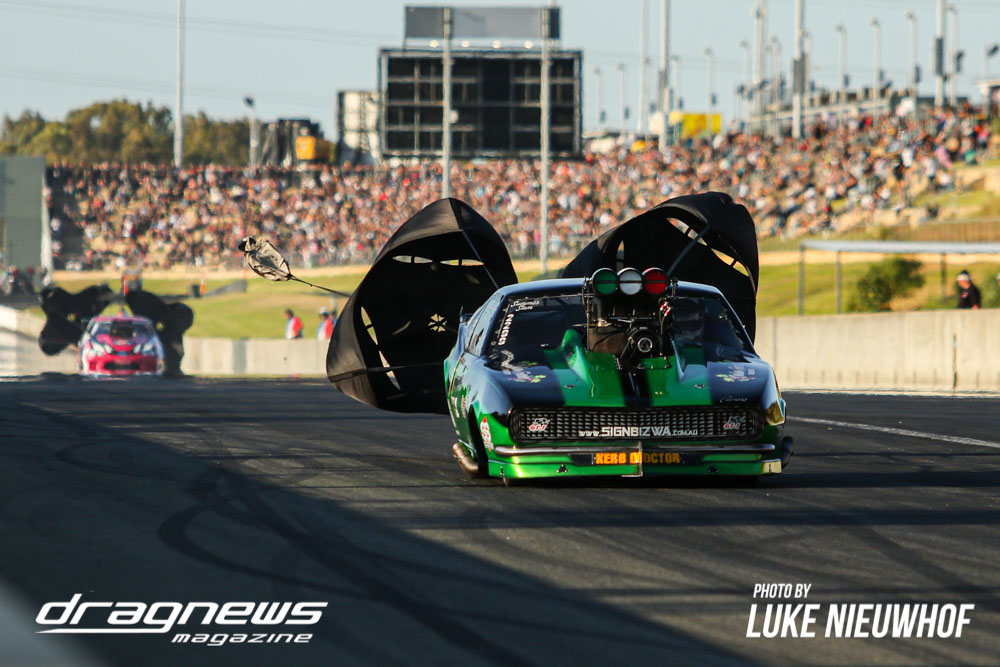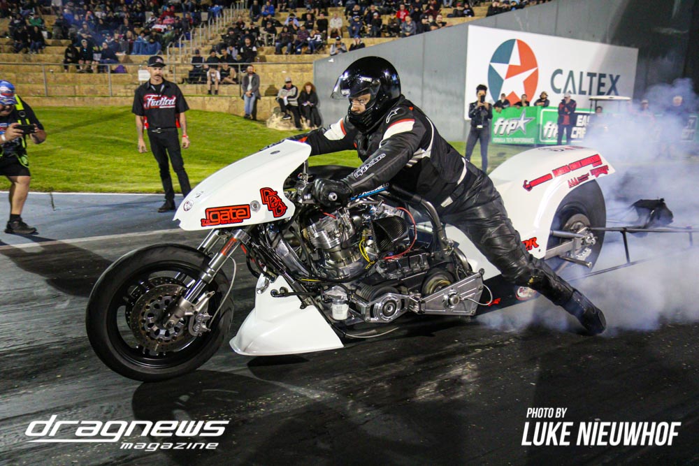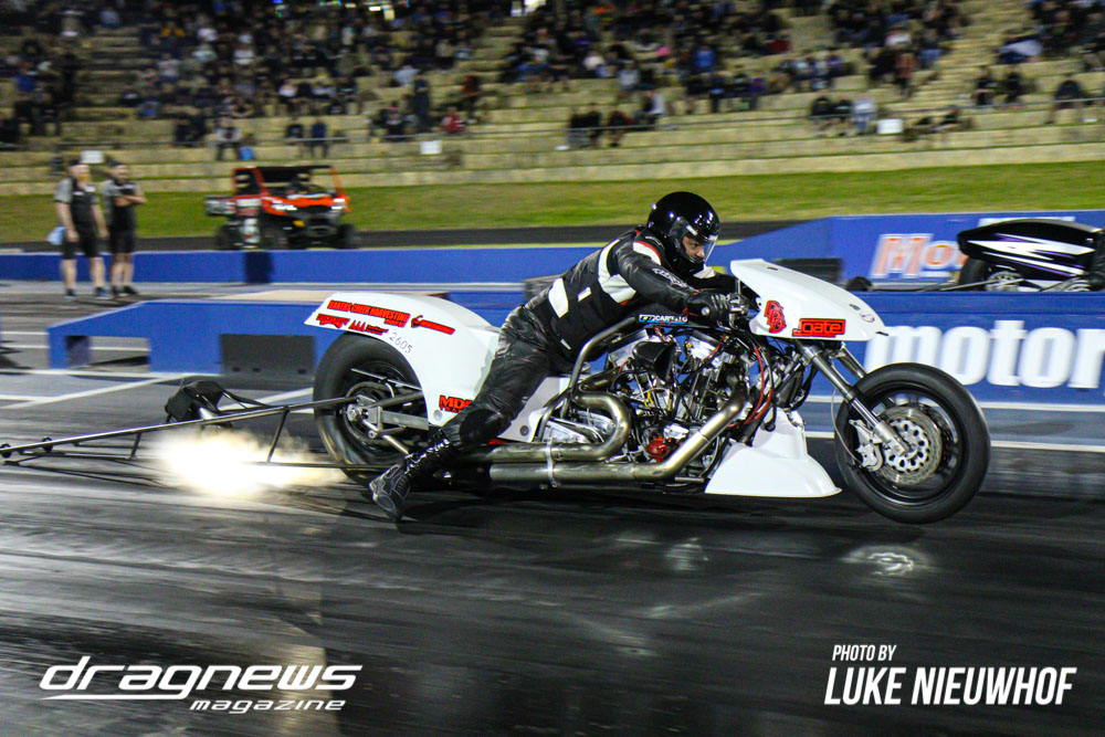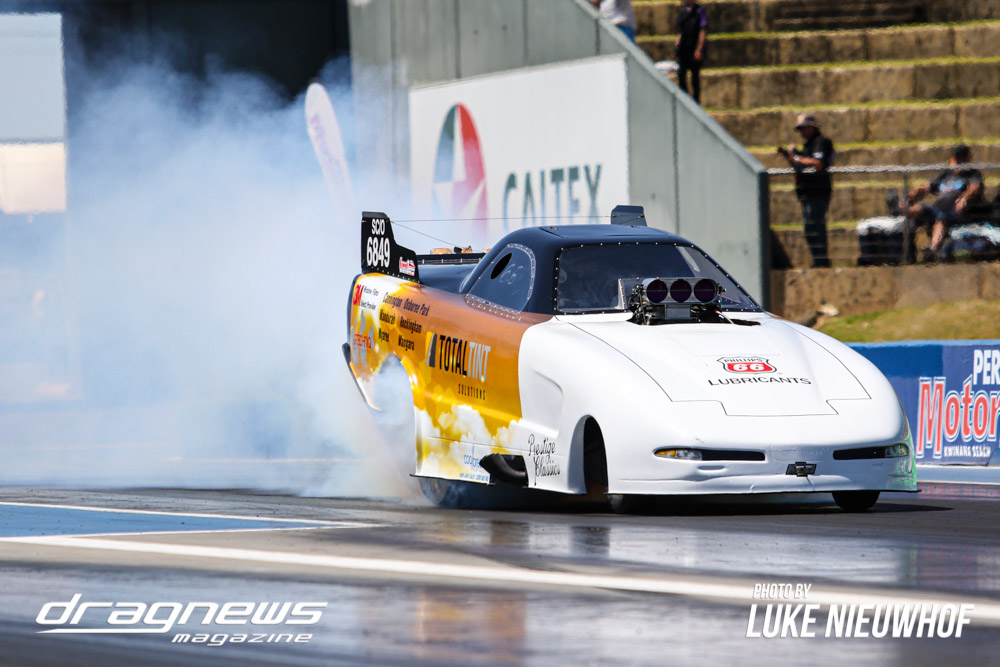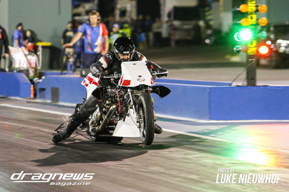 Other winners on the night included Wayne Keys (Top Comp), Todd Stacy (Super Comp), Trent Anthony (Comp Bike), Jodie Mellitt (Supercharged Outlaws), Chris Roe (Top Sportsman), Kevin Boulton (Outlaw Radial), Cory Treasure (Modified), Mick Fenton (Super Sedan), Chris Allen (Modified Bike), Richard Stevens (Super Street) and Brodie Zappia (Junior Dragster).