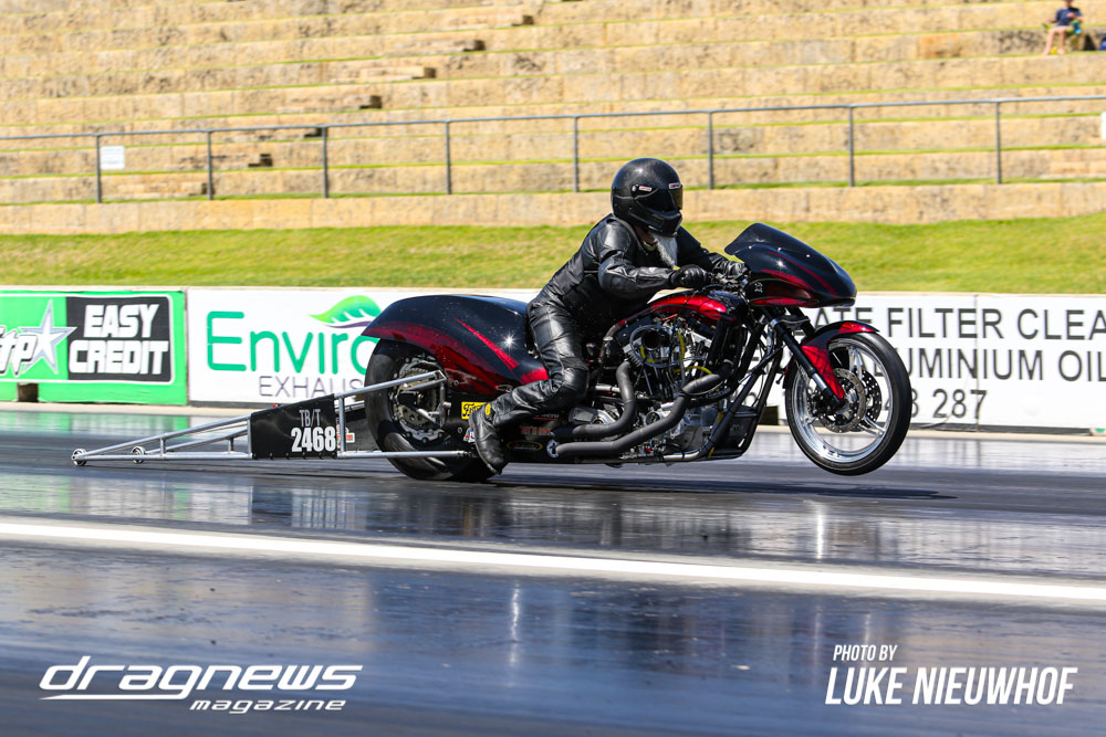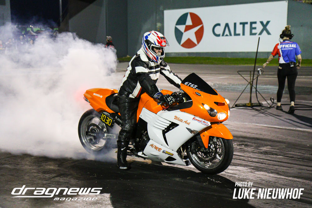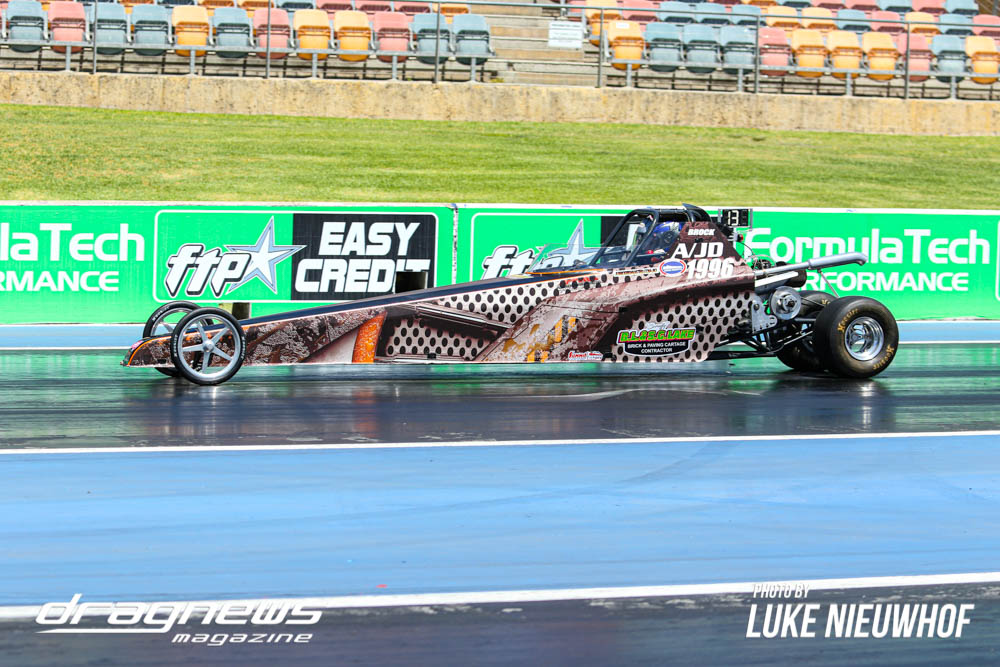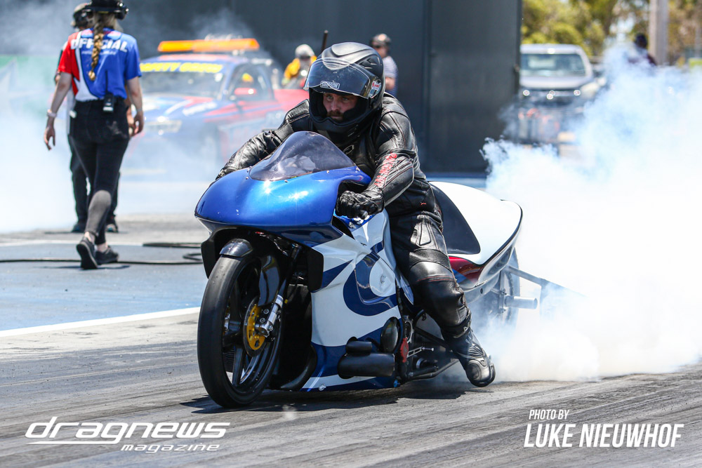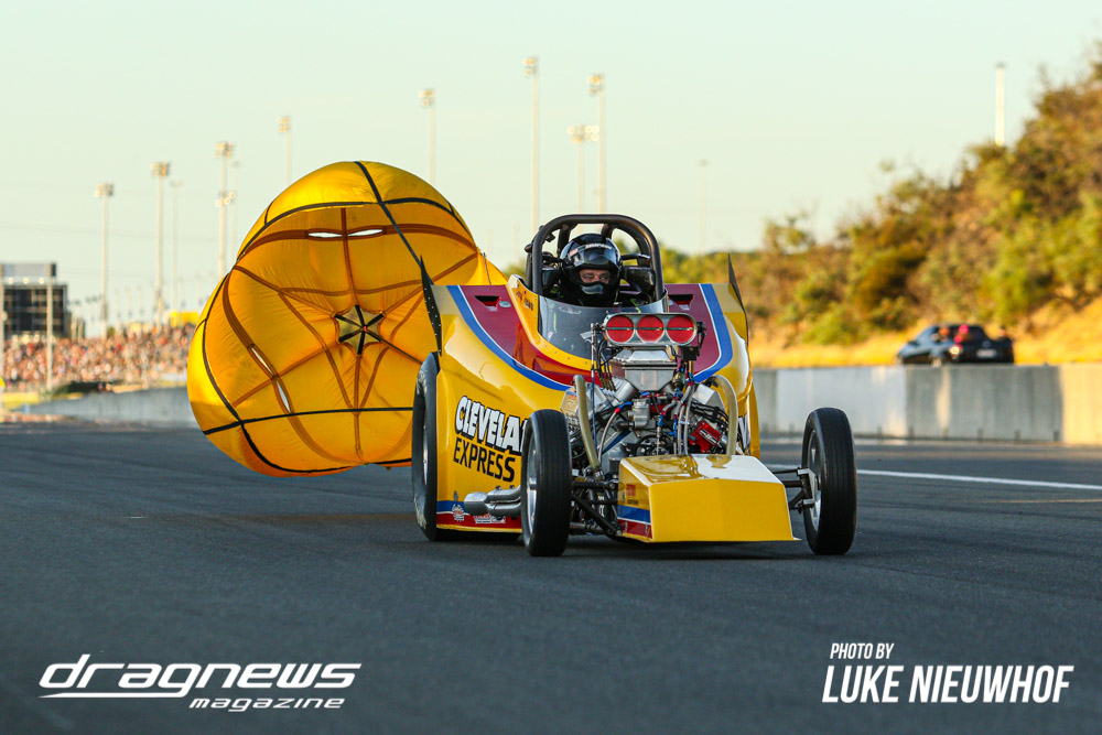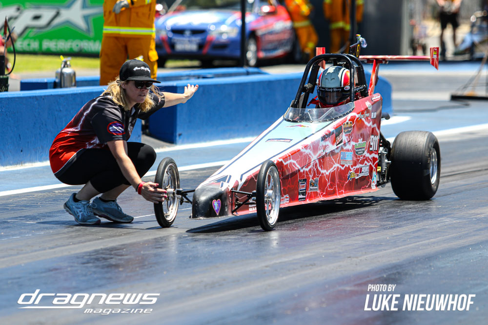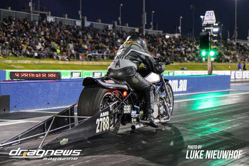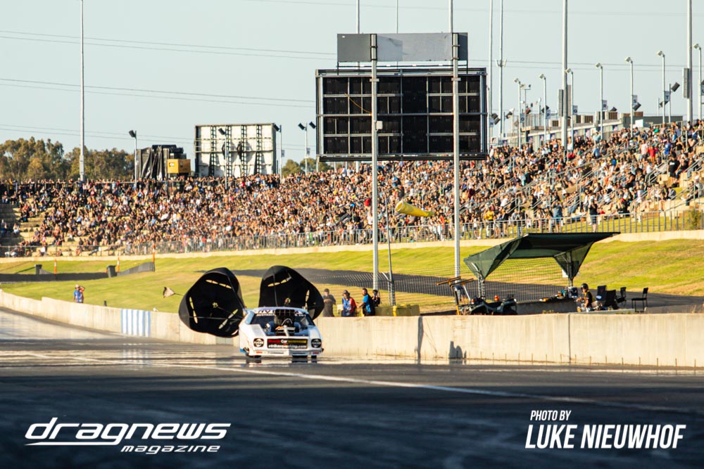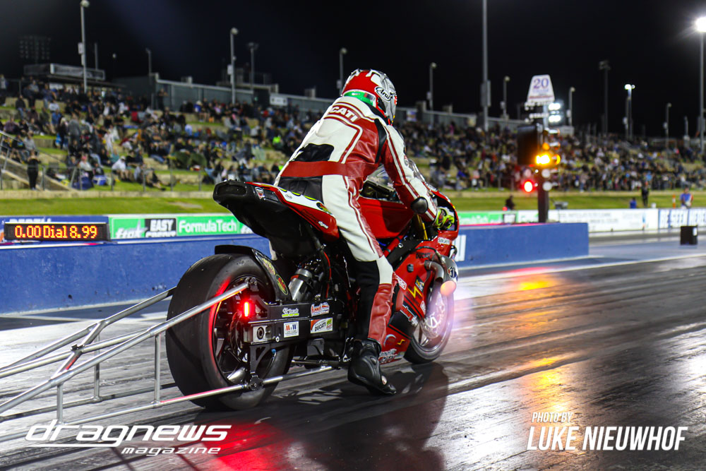 Other winners on the night included Wayne Keys (Top Comp), Todd Stacy (Super Comp), Trent Anthony (Comp Bike), Jodie Mellitt (Supercharged Outlaws), Chris Roe (Top Sportsman), Kevin Boulton (Outlaw Radial), Cory Treasure (Modified), Mick Fenton (Super Sedan), Chris Allen (Modified Bike), Richard Stevens (Super Street) and Brodie Zappia (Junior Dragster).