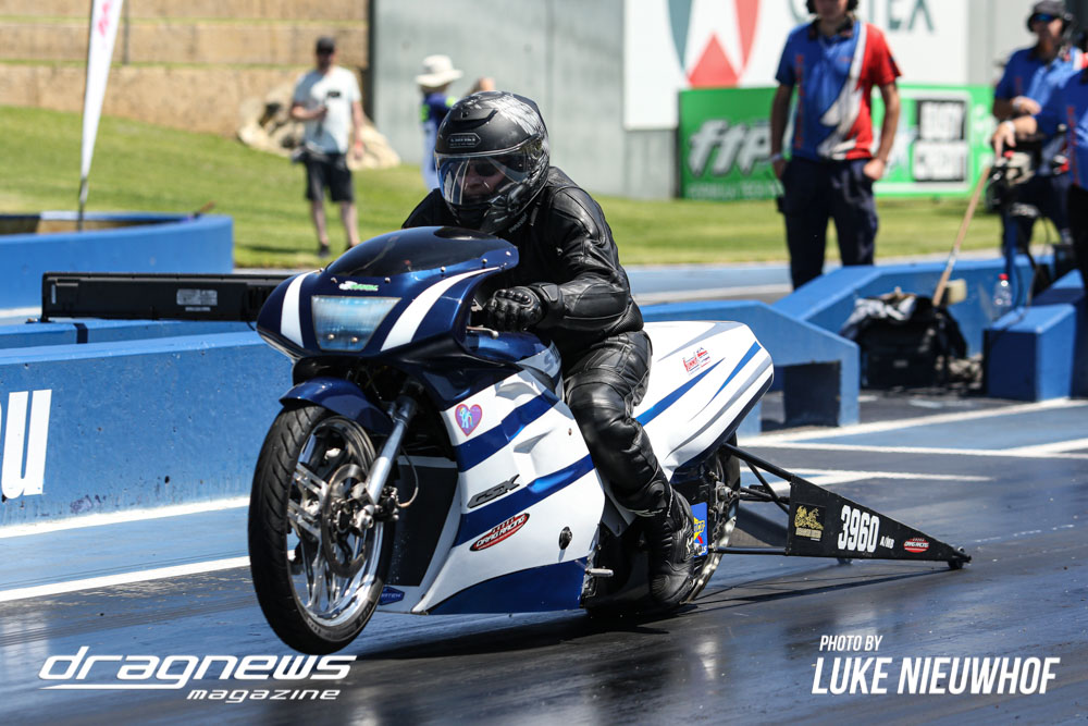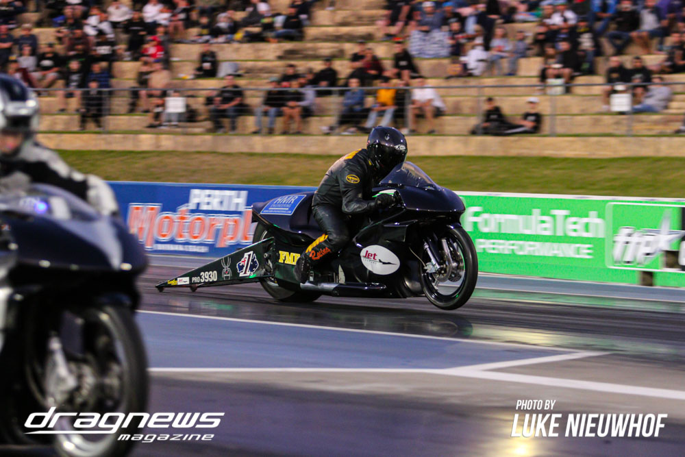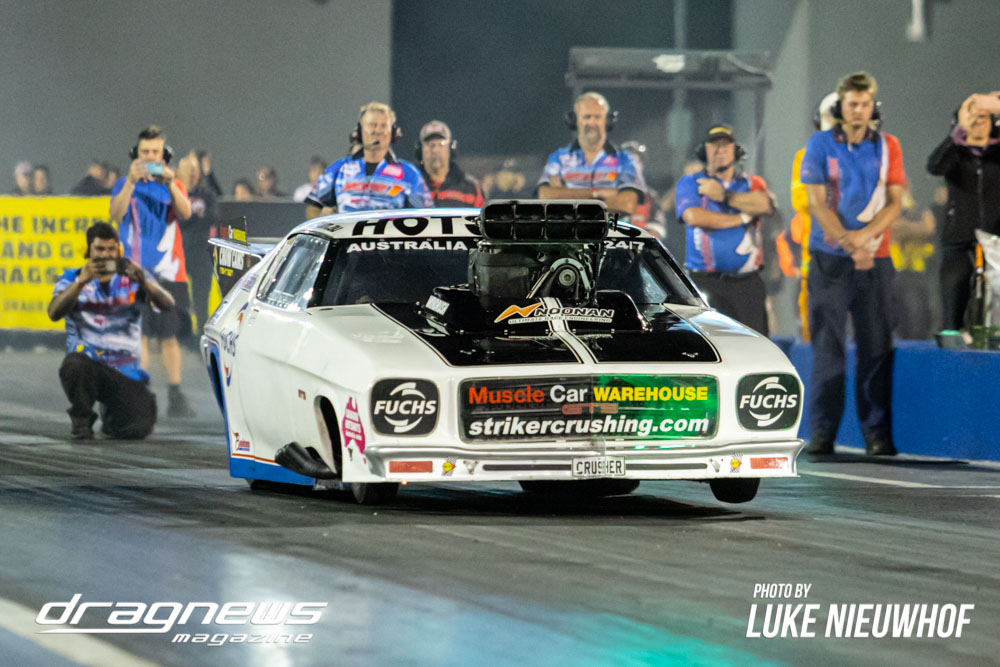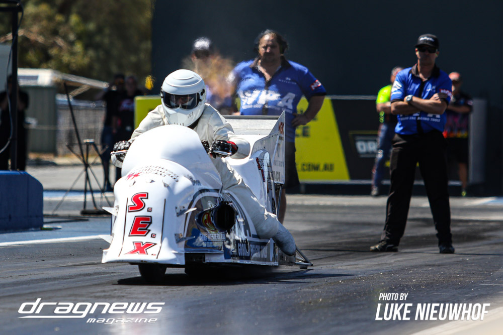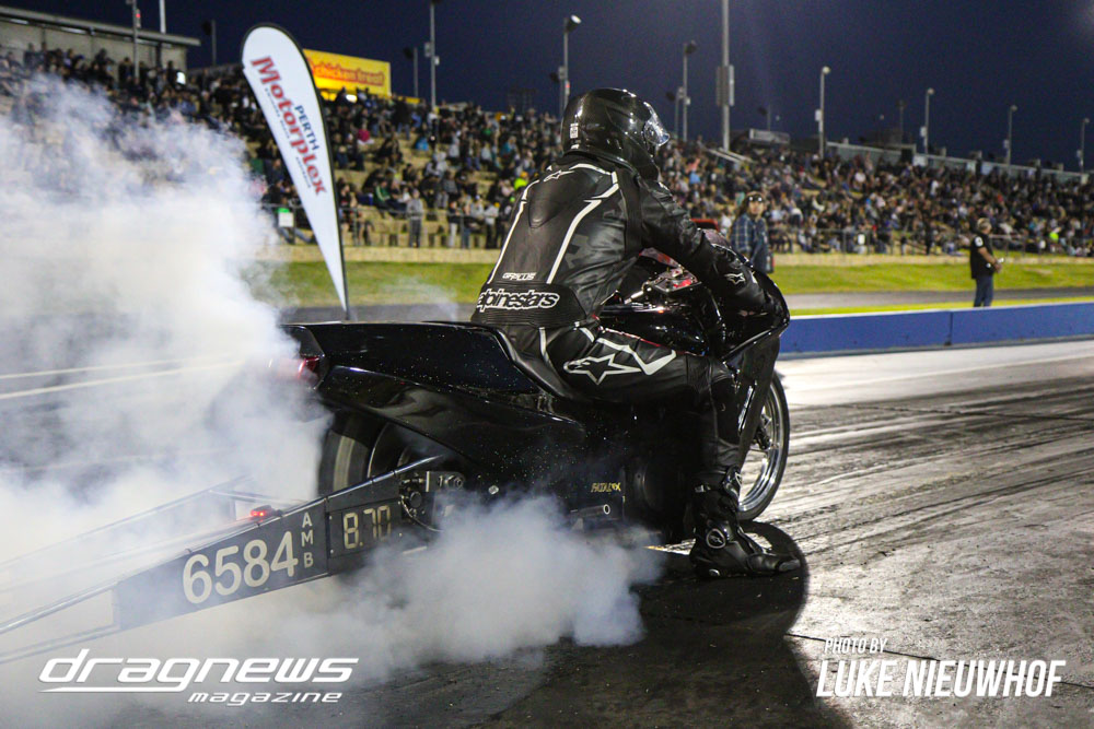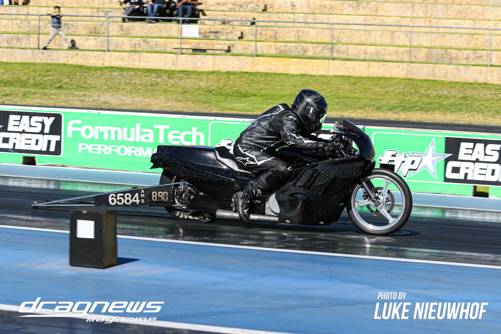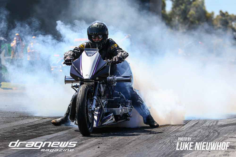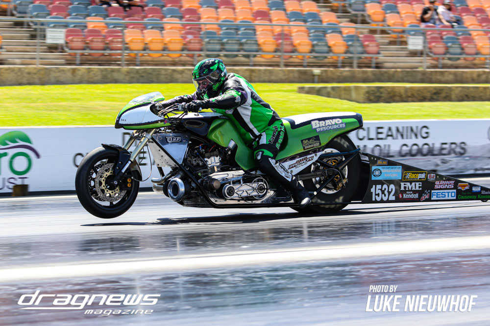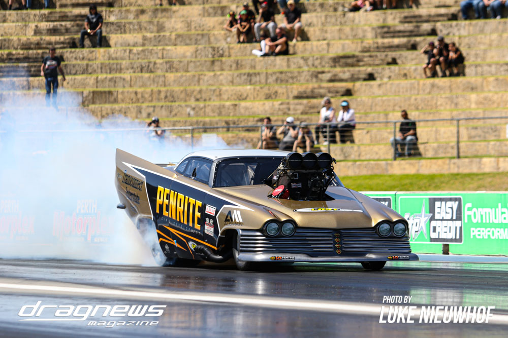 Other winners on the night included Wayne Keys (Top Comp), Todd Stacy (Super Comp), Trent Anthony (Comp Bike), Jodie Mellitt (Supercharged Outlaws), Chris Roe (Top Sportsman), Kevin Boulton (Outlaw Radial), Cory Treasure (Modified), Mick Fenton (Super Sedan), Chris Allen (Modified Bike), Richard Stevens (Super Street) and Brodie Zappia (Junior Dragster).