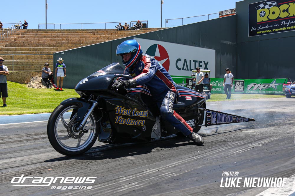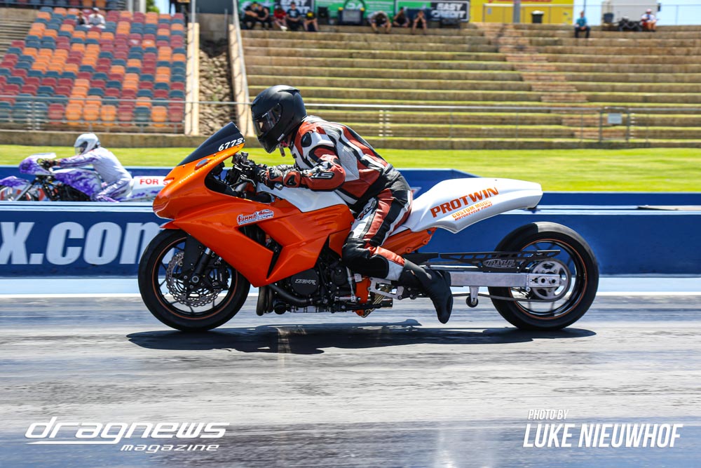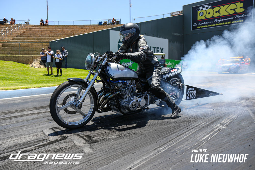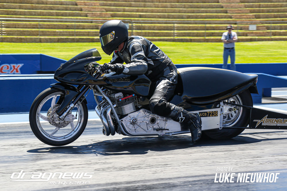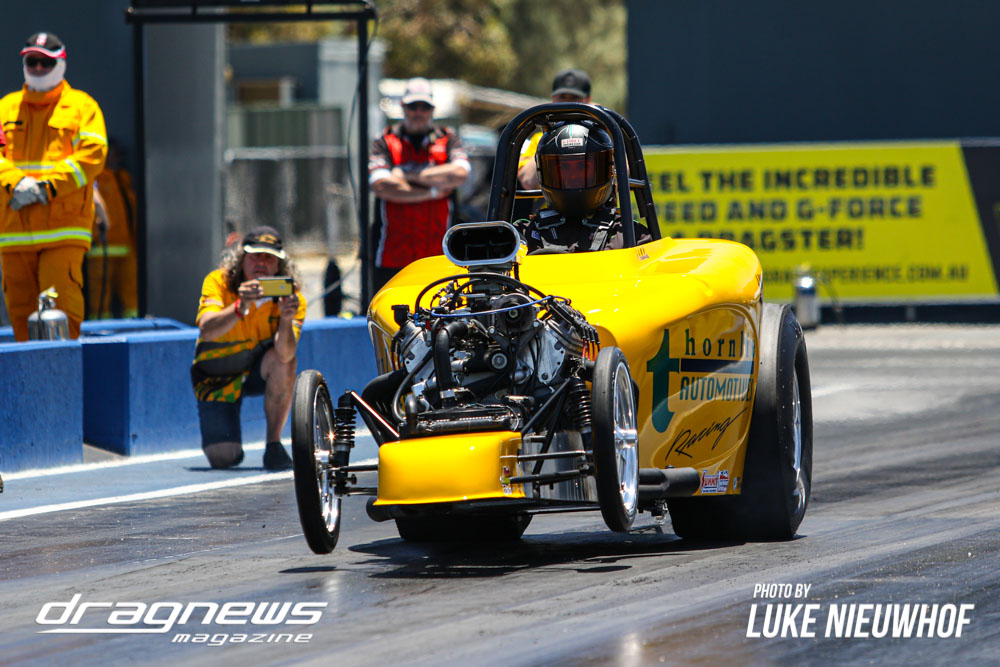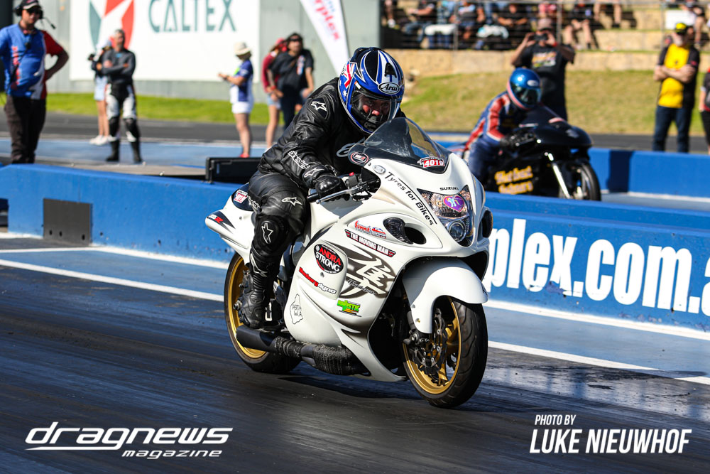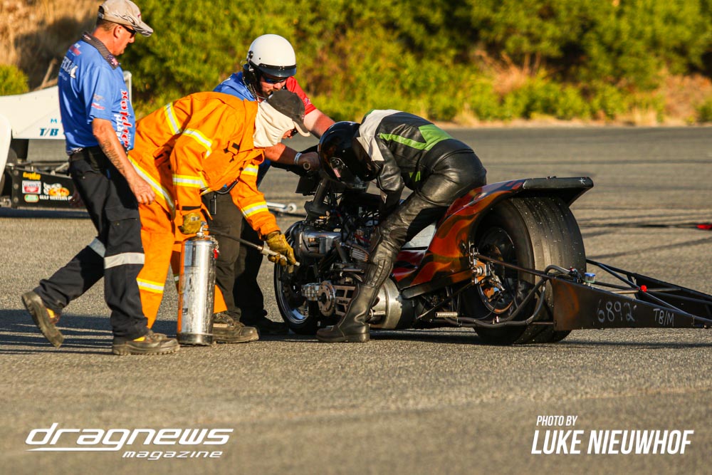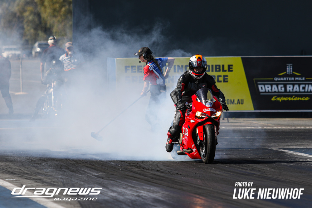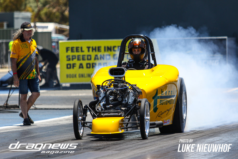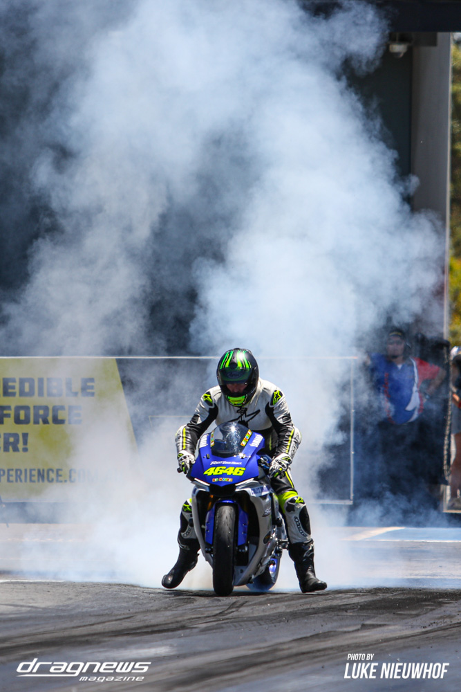 Other winners on the night included Wayne Keys (Top Comp), Todd Stacy (Super Comp), Trent Anthony (Comp Bike), Jodie Mellitt (Supercharged Outlaws), Chris Roe (Top Sportsman), Kevin Boulton (Outlaw Radial), Cory Treasure (Modified), Mick Fenton (Super Sedan), Chris Allen (Modified Bike), Richard Stevens (Super Street) and Brodie Zappia (Junior Dragster).