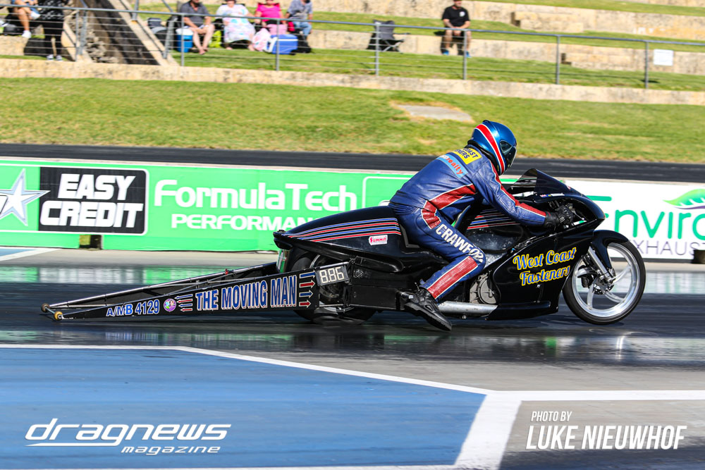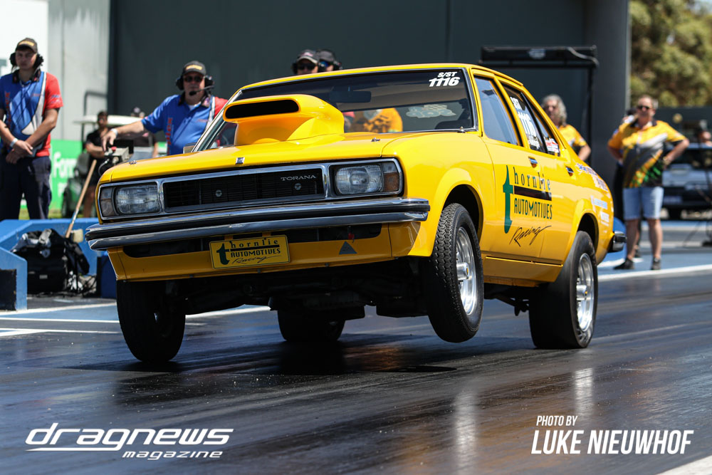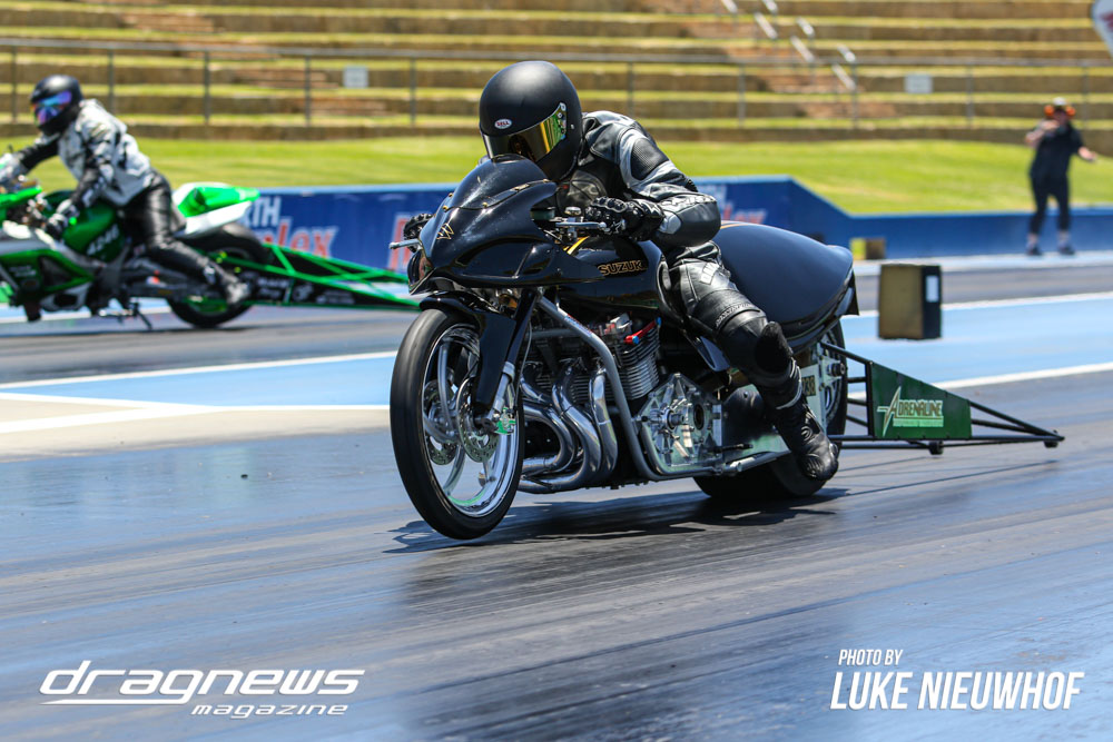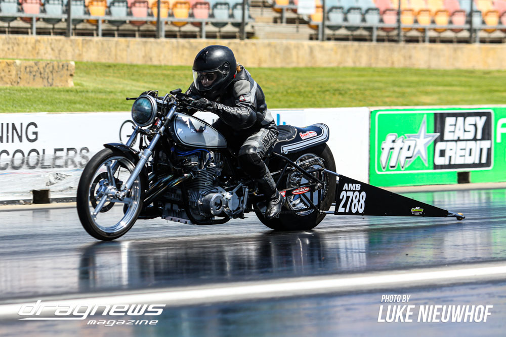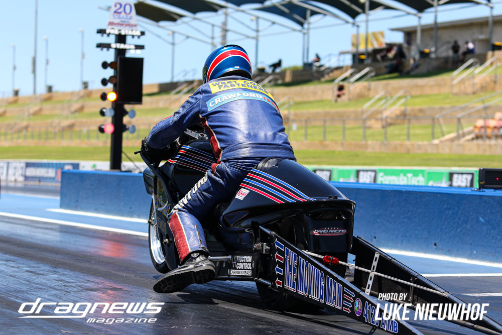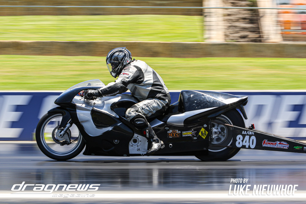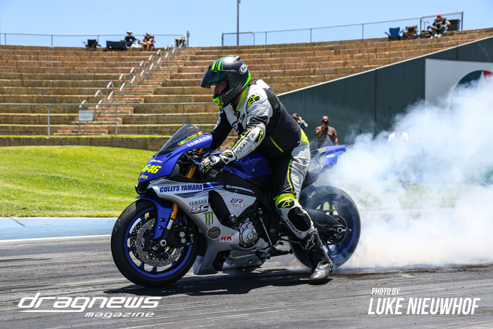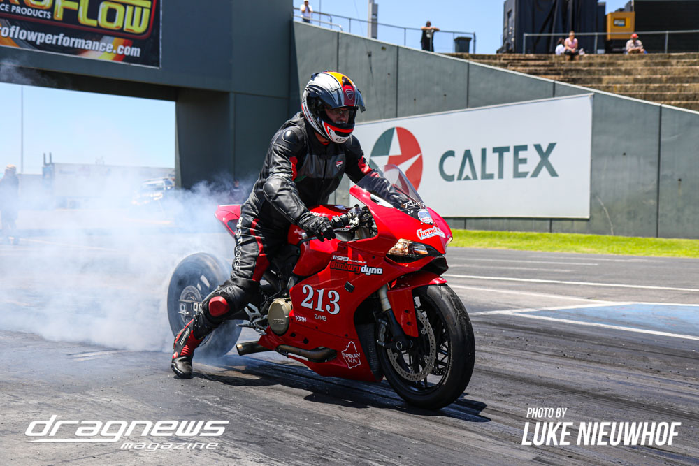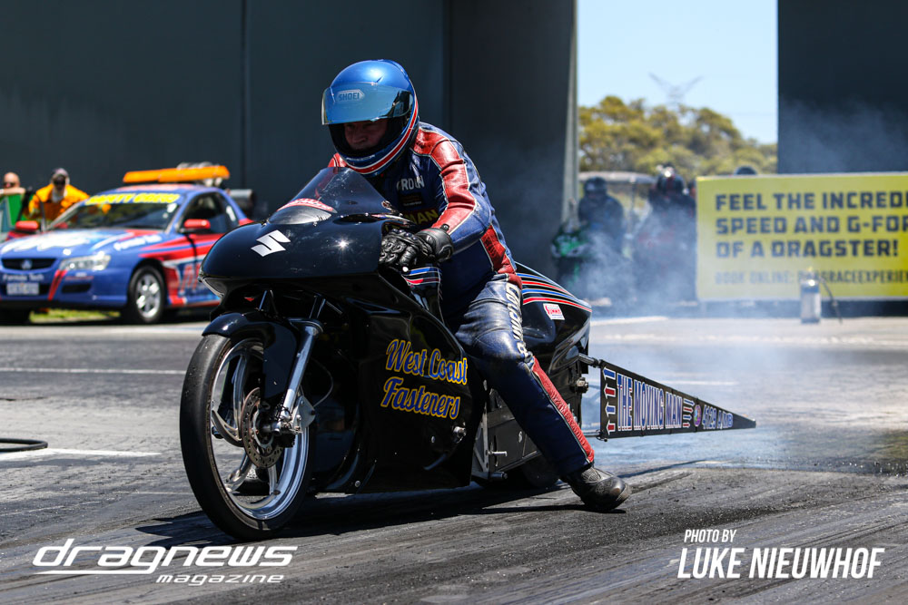 Other winners on the night included Wayne Keys (Top Comp), Todd Stacy (Super Comp), Trent Anthony (Comp Bike), Jodie Mellitt (Supercharged Outlaws), Chris Roe (Top Sportsman), Kevin Boulton (Outlaw Radial), Cory Treasure (Modified), Mick Fenton (Super Sedan), Chris Allen (Modified Bike), Richard Stevens (Super Street) and Brodie Zappia (Junior Dragster).
