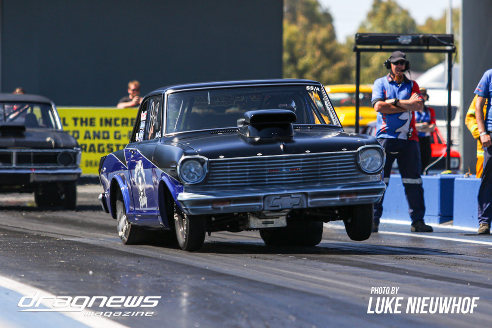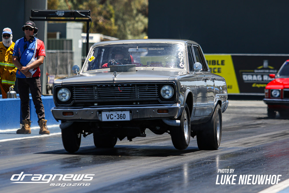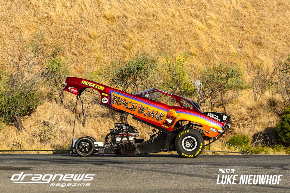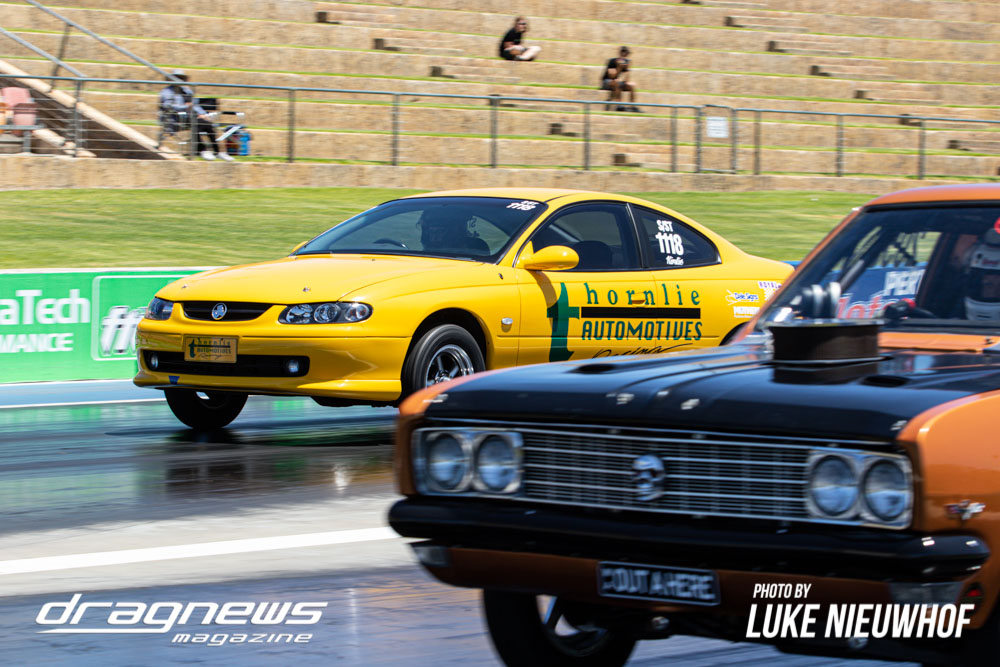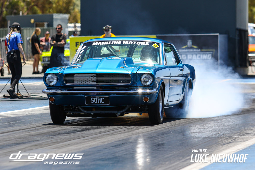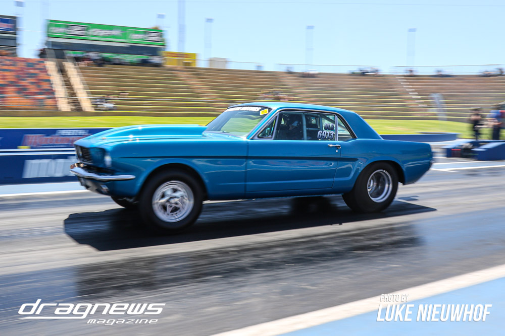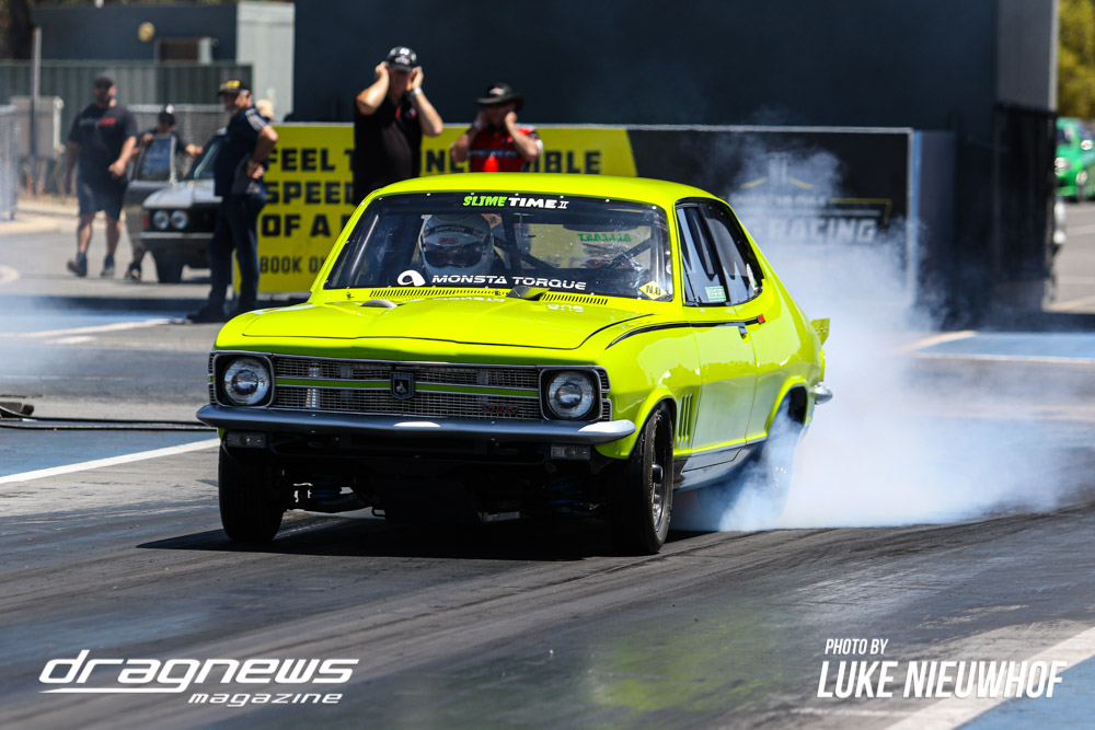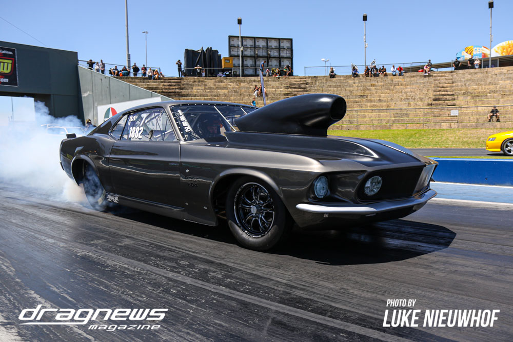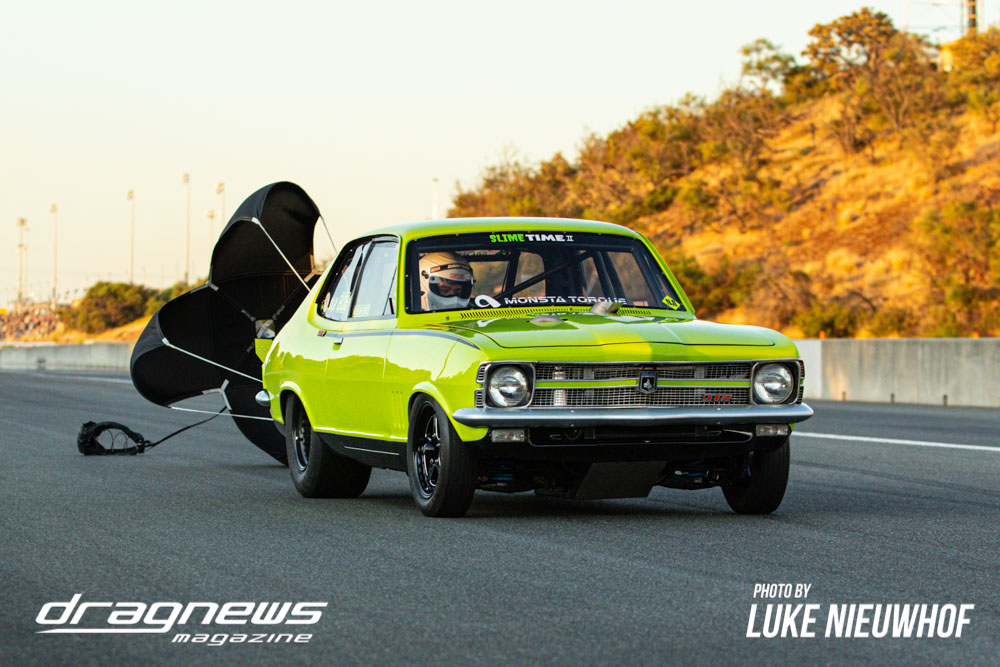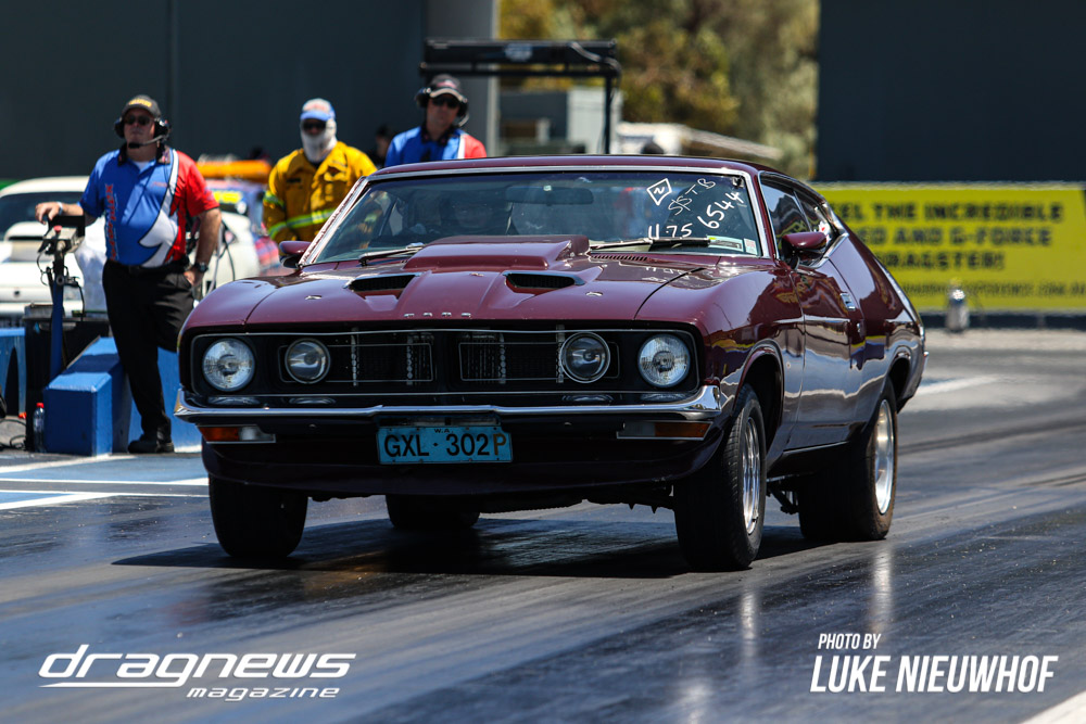 The Summer Slam proved a wild affair with three spectacular incidents during the elimination round. Kelvin Lyle had his Ford Mustang on two wheels at well over 200kmh, while Mark Chapman saved his Plymouth Fury from severe damage when he turned 180 degrees to face the start line after spinning the tyres. Not so lucky was Stuart Moresby, whose Studebaker made hard contact with the braking area walls after his parachutes failed to deploy.