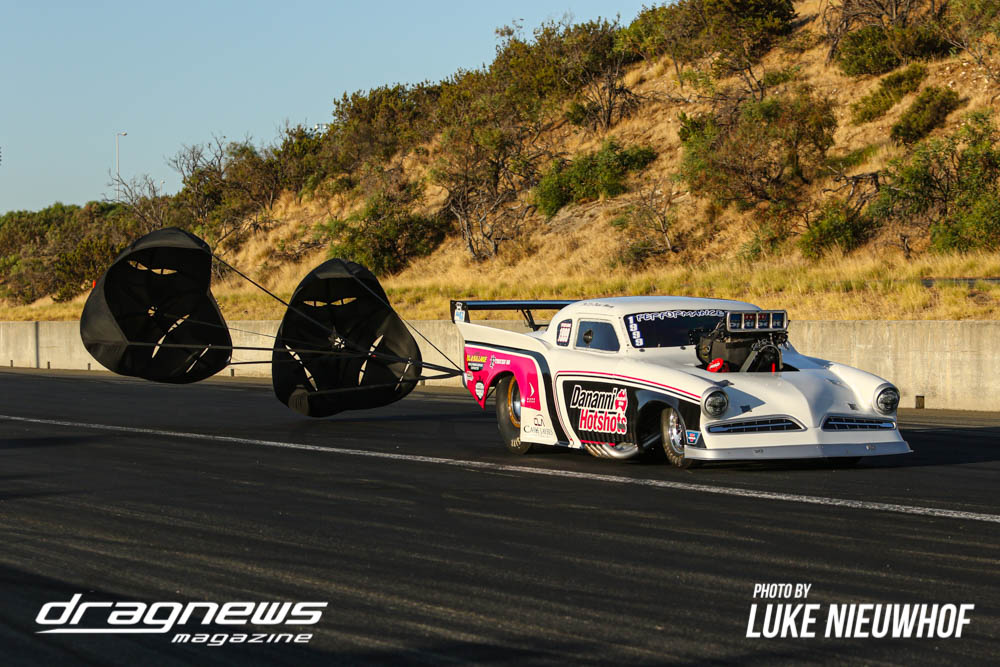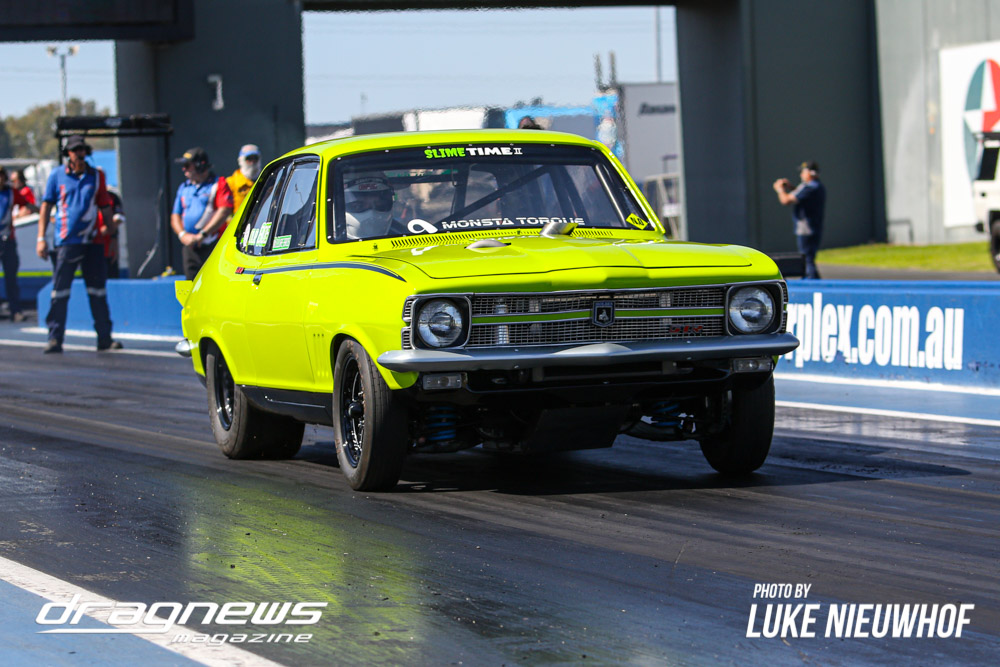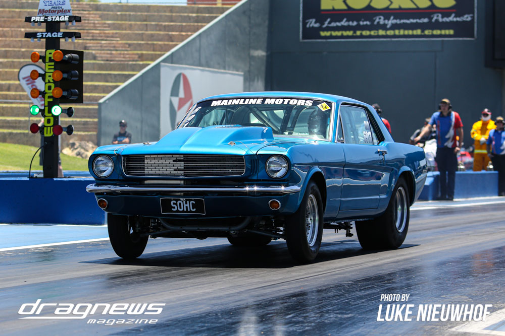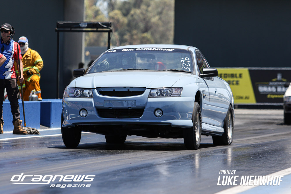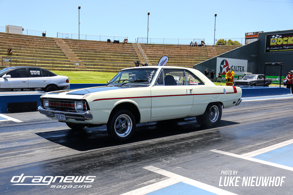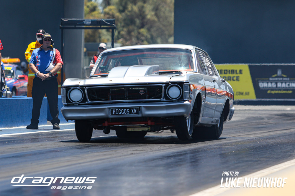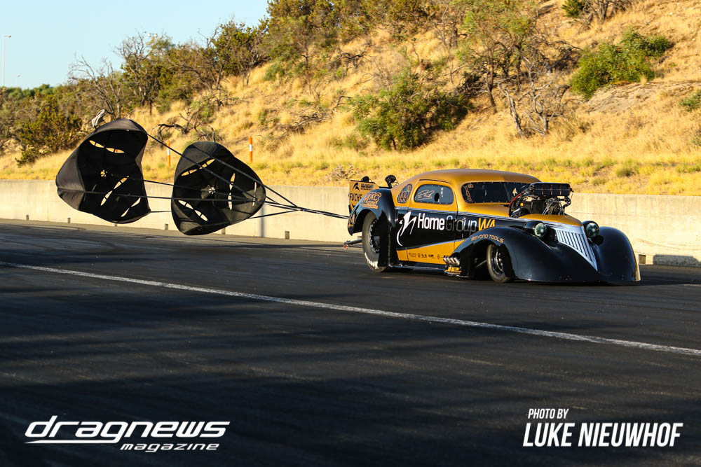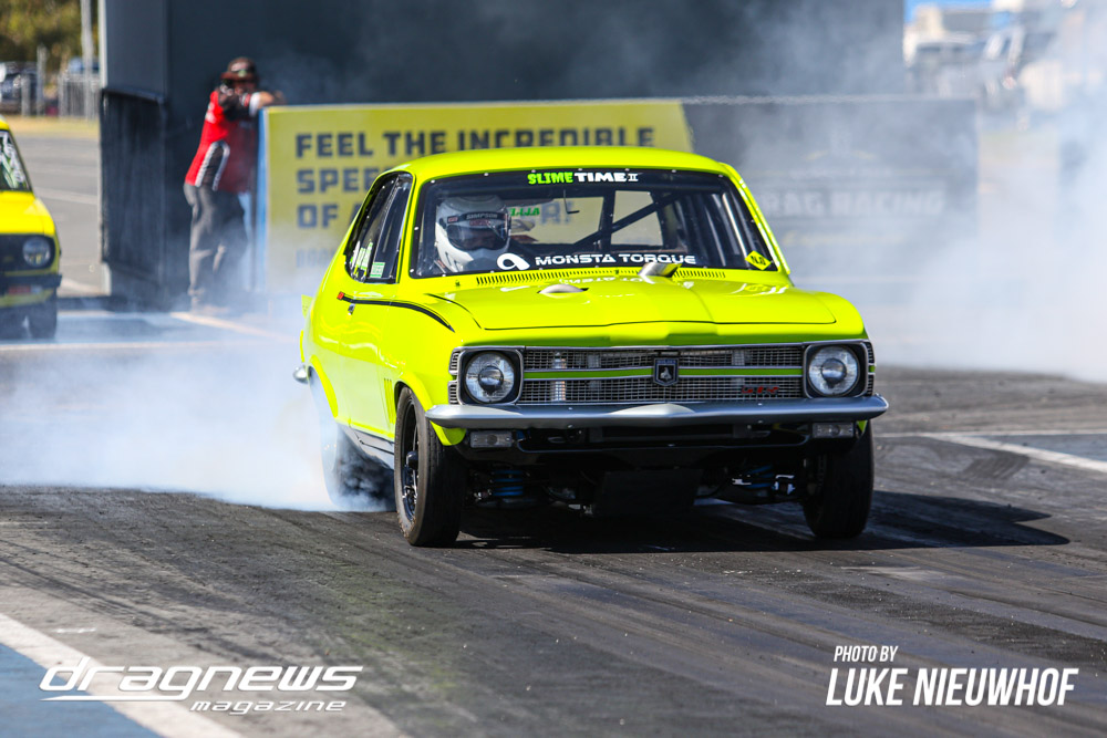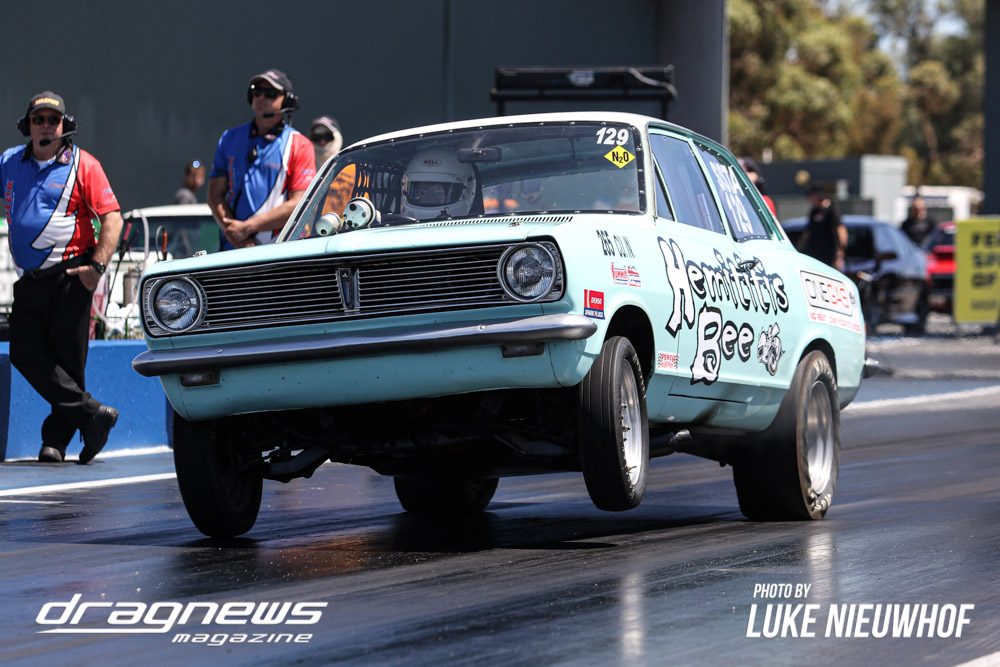 The Summer Slam proved a wild affair with three spectacular incidents during the elimination round. Kelvin Lyle had his Ford Mustang on two wheels at well over 200kmh, while Mark Chapman saved his Plymouth Fury from severe damage when he turned 180 degrees to face the start line after spinning the tyres. Not so lucky was Stuart Moresby, whose Studebaker made hard contact with the braking area walls after his parachutes failed to deploy.
