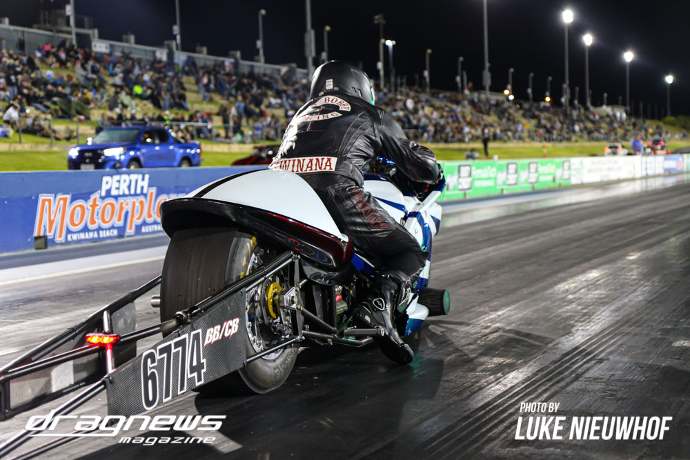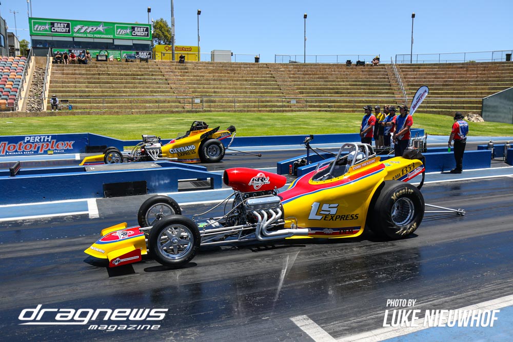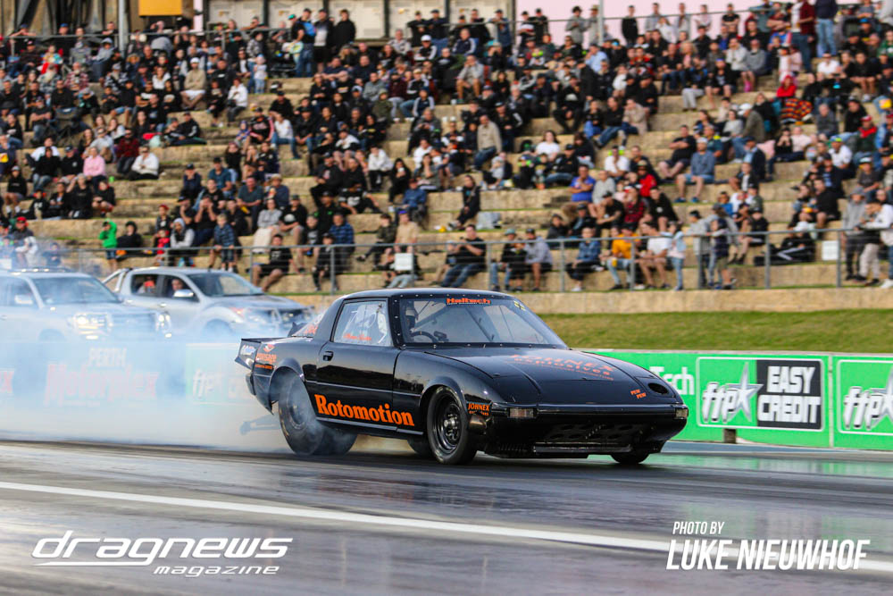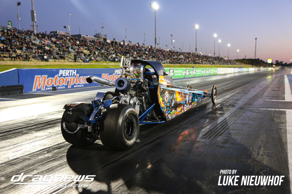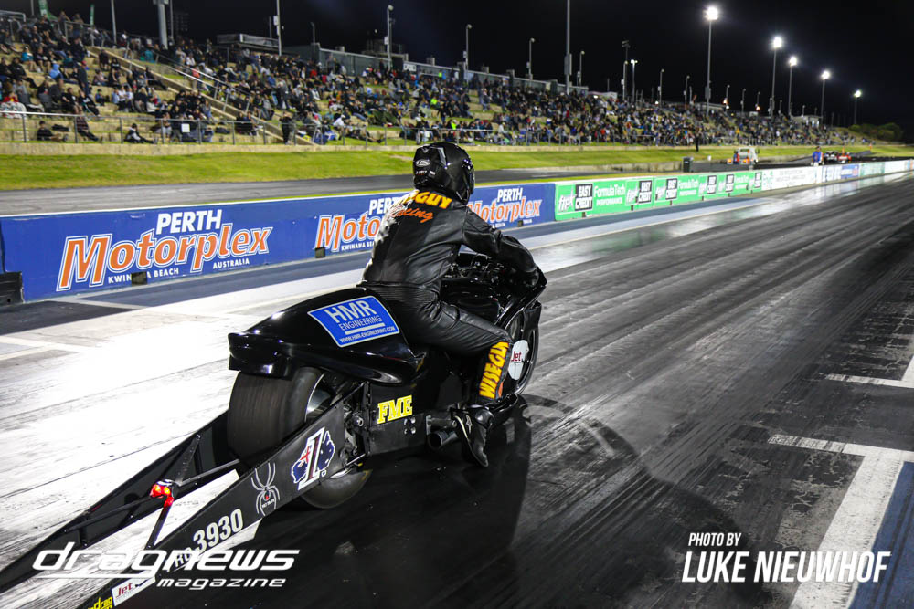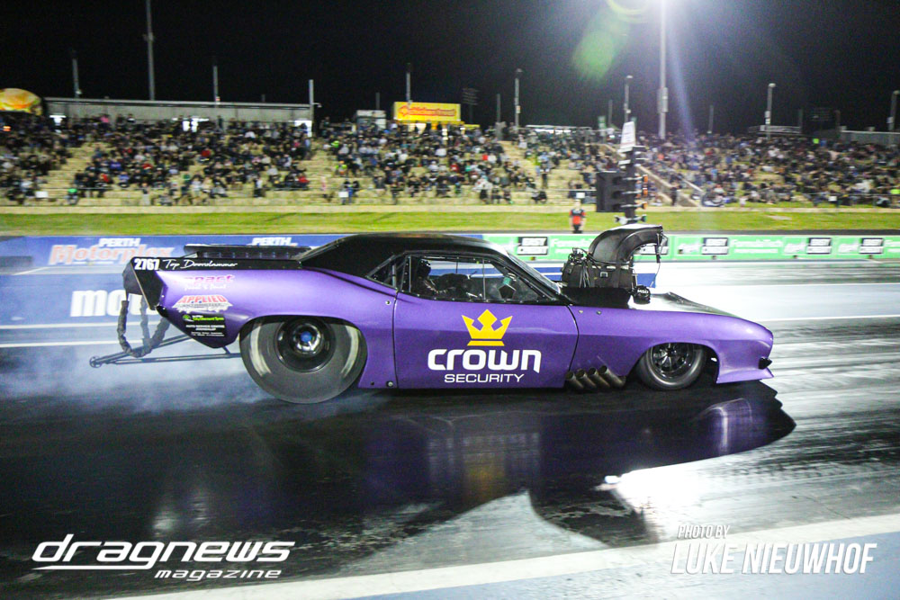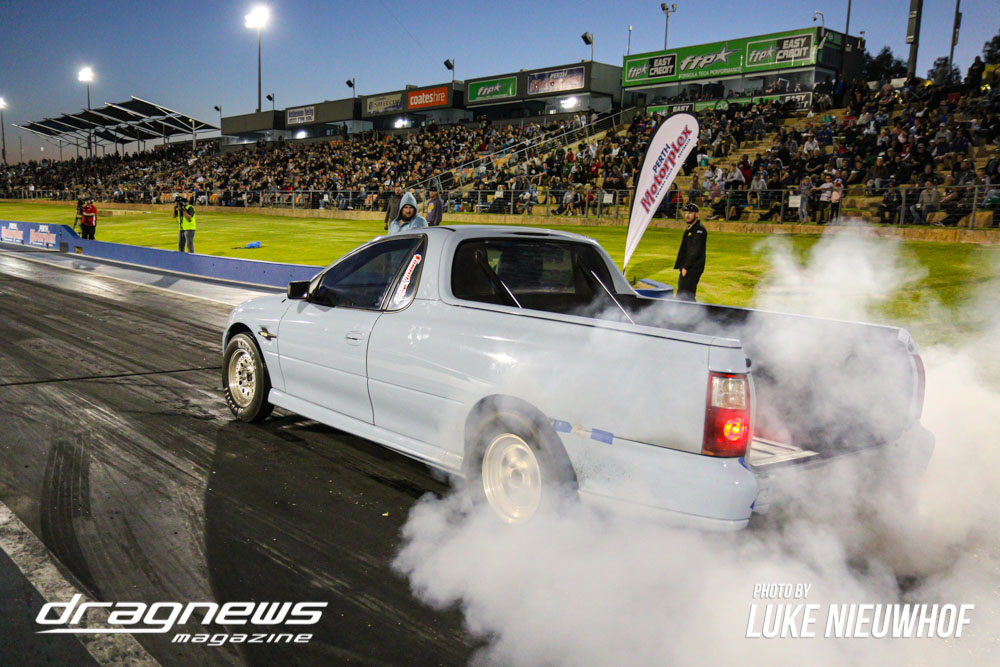 A capacity crowd turned out for the event, despite the Aeroflow Outlaw Nitro Funny Car headliners being stuck on the Nullarbor due to a highway closure caused by bush fires. With a dollar from each ticket going to the fire appeal, as well as fundraising from the local Mandogalup volunteer fire service, over $20,000 was raised during the night to go to bushfire victims and local brigades.