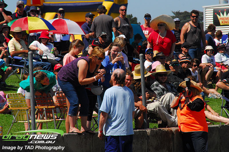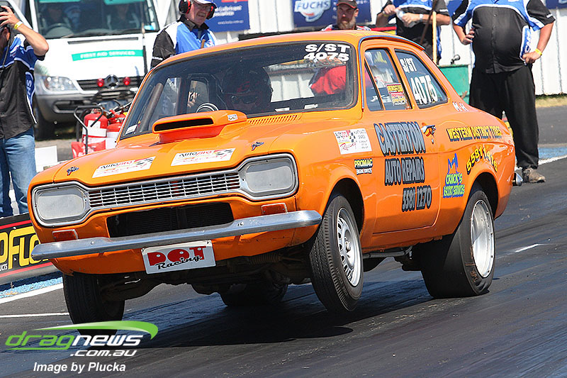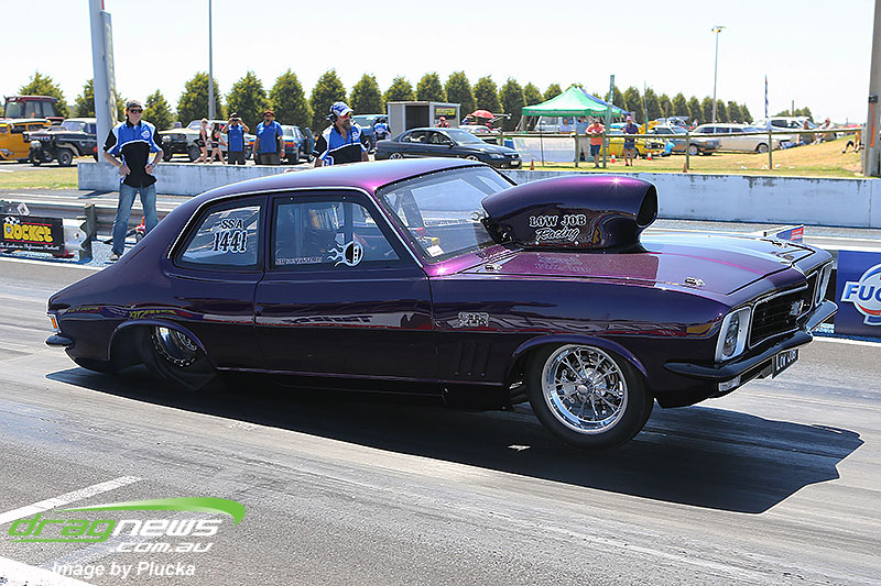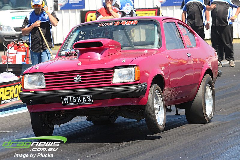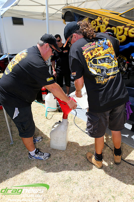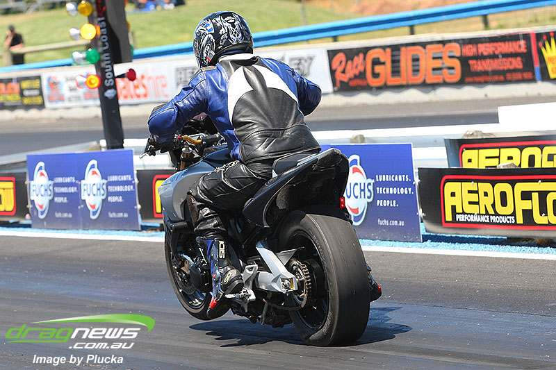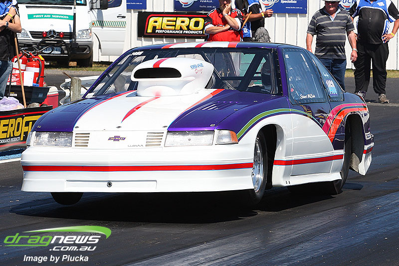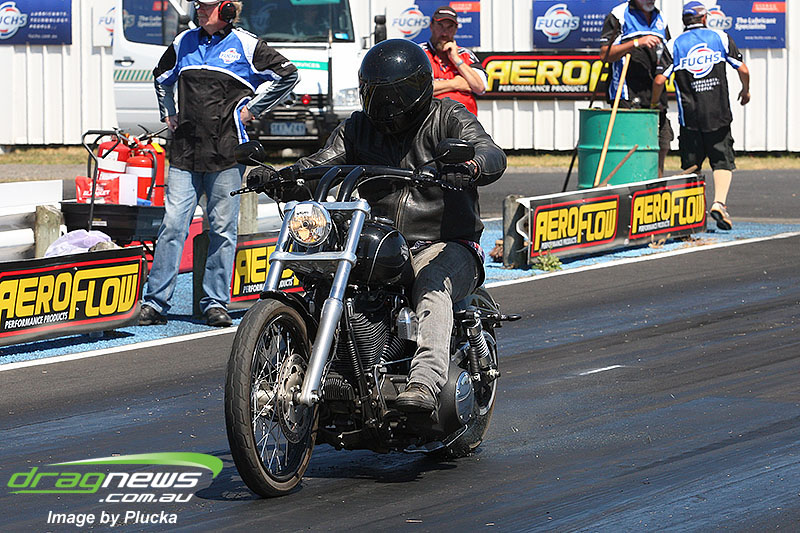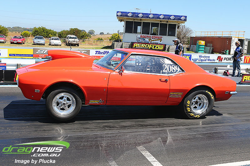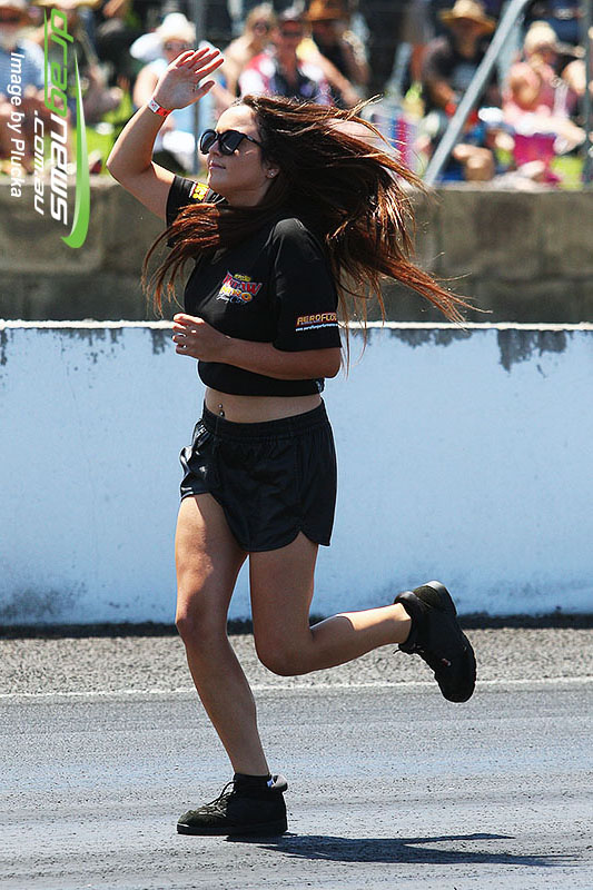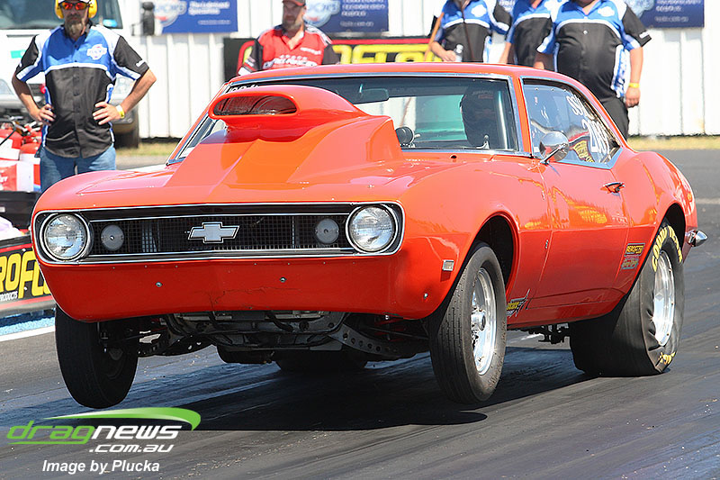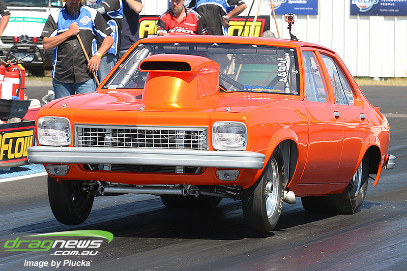 Shane Olive has been given the honours of driving the famed “LA Hooker” and won against Greg Leahy in “Harbour City Hustler” with a tyre smoking 4.84 to a 5.14. Last round winner Rick Gauci continued the fine form of “Nitro Express” with a 4.75 low ET of the round victory against Anthony Begley in “Fast Company”.