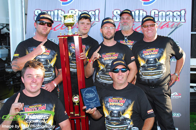 The Aeroflow Outlaw Nitro Funny Car Series, where the cars are the stars, rumbled into Fuchs South Coast Raceway, Portland and delivered a feast of nitro flopper action over the short track.