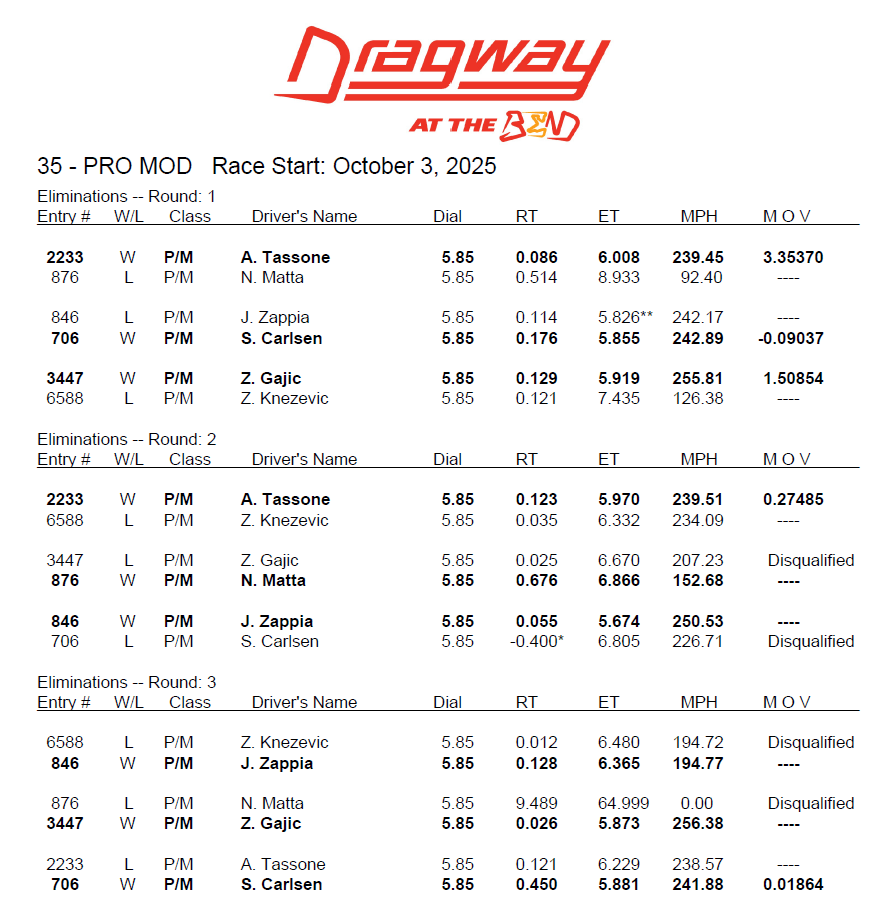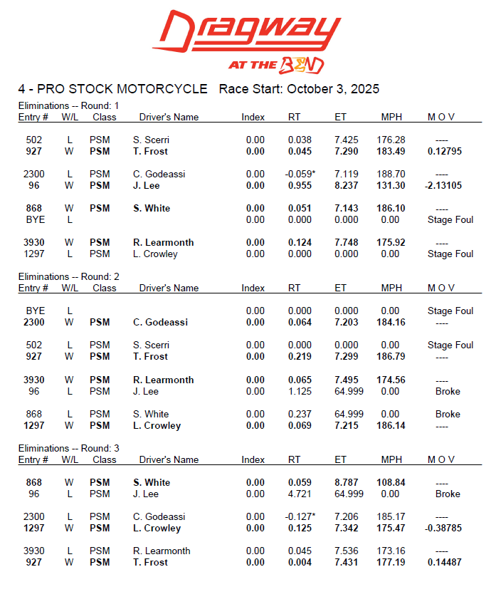 “It was an absolute pleasure working for all the Pro racers that did support the PDRC this season,” said Hedges. “The Grand Final really delivered — the standout fields in both Pro Bike and Pro Mod were a testament to the dedication, professionalism, and camaraderie within these classes. The way these teams operate, both on and off the track, is a real credit to them and to the sport as a whole.”