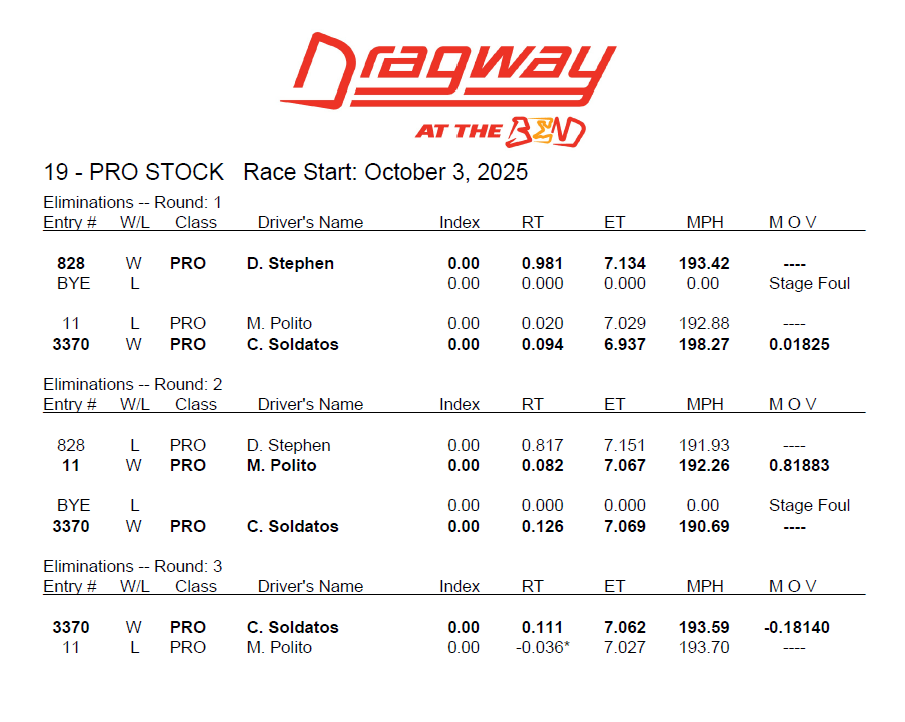 All Polito needed to do was start the race to lock in second overall — and while the MPM Cobalt fired up, he left too early, handing the red-light win to Soldatos, who powered through for a 7.062 pass to cap off the season.