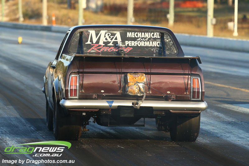 The twin turbo small block ute of Michael Arnold was too good in the Mod Street Blown final against Guy Hall’s blown Mercedes.