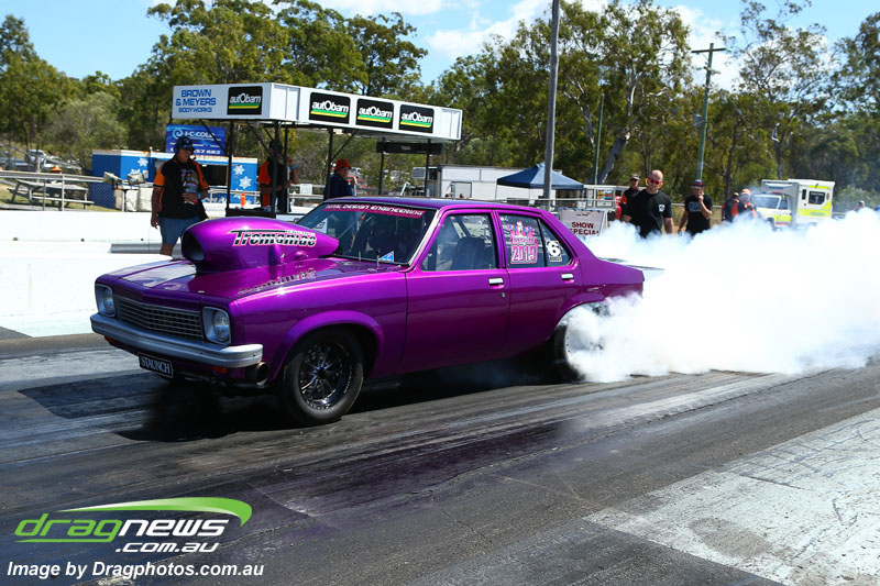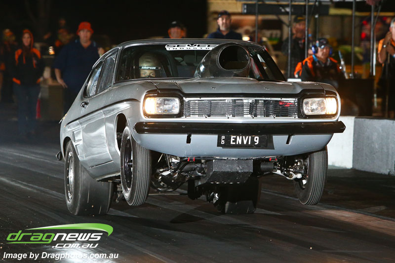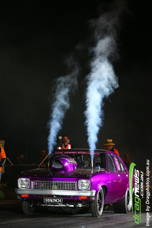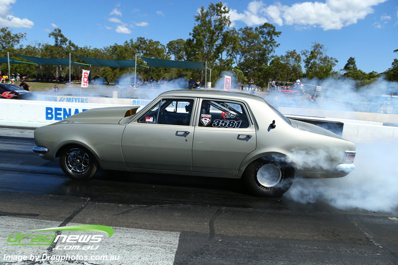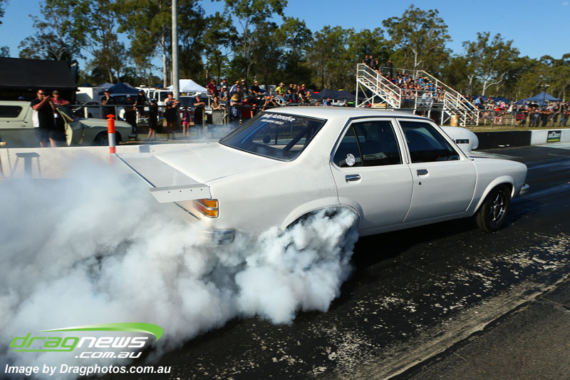 In the “who needs slicks brigade”, Scott Cortina in his 565ci HG Holden won Outlaw Radial over James Moore’s Rotary RX7.