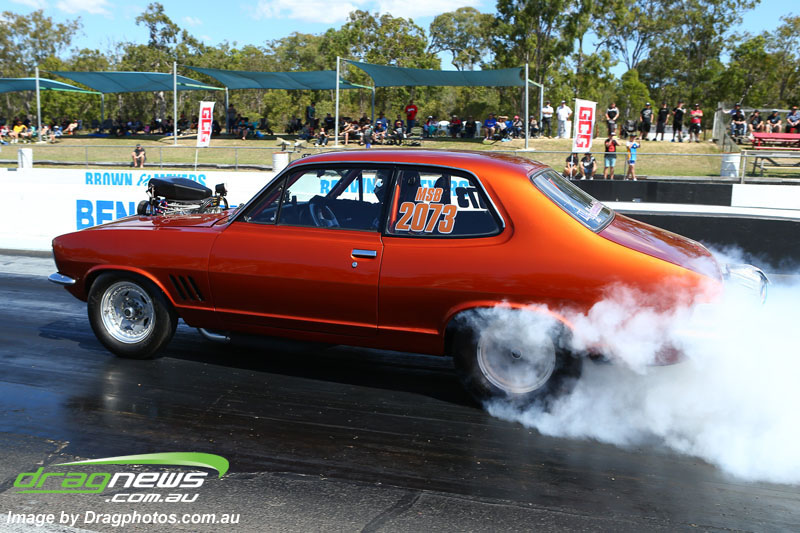 The big cubes on both side of the track in the Mod Street Unblown class, Mick Brody’s 632 cubic inches out gunned the 582 in Wayne Lear’s Torana.