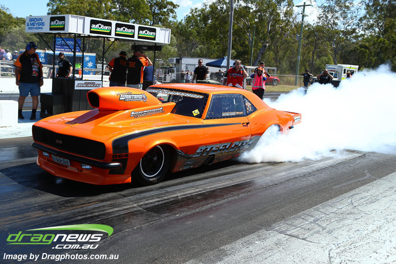 In Pro Street Blown Adam Smolders came back from a wall scraping last outing in Sydney to defeat Craig Hewitt’s blown CV8 Monaro.