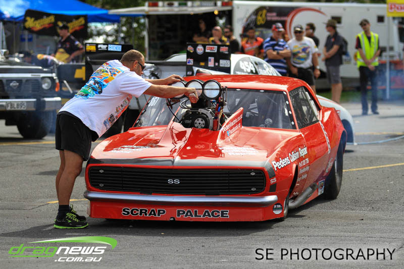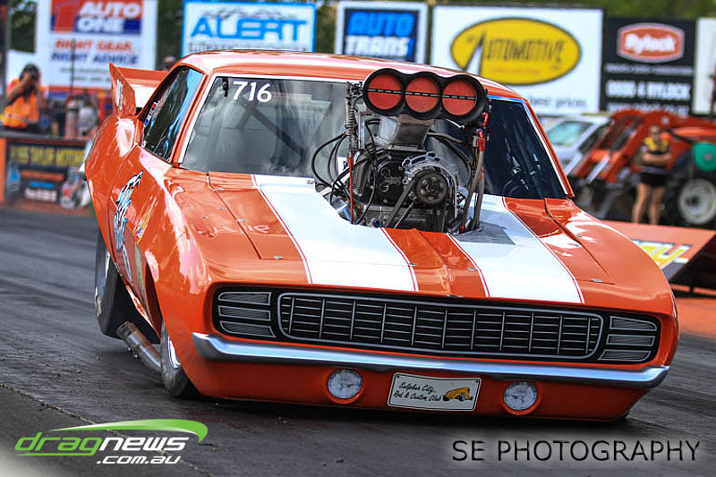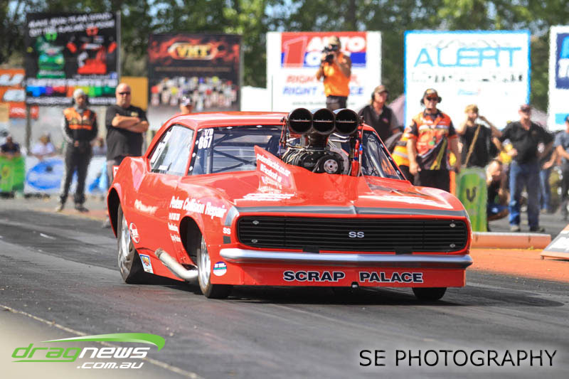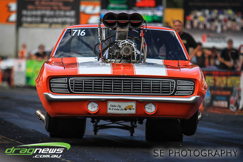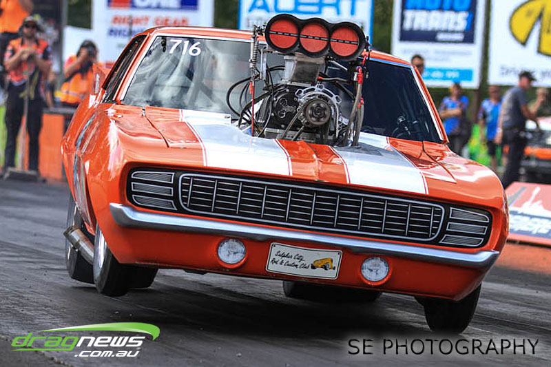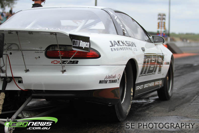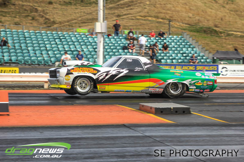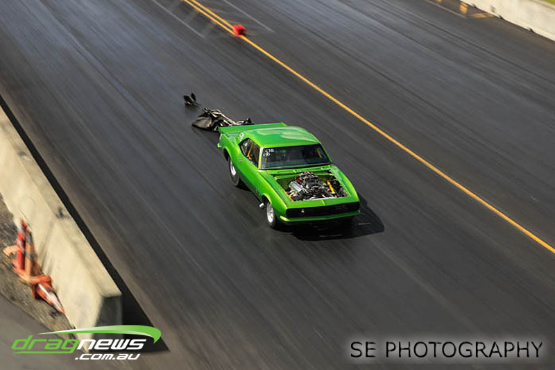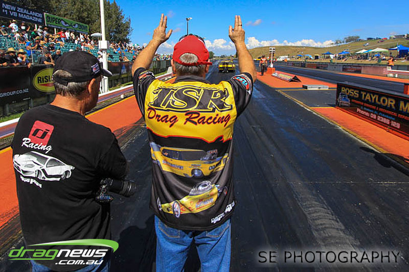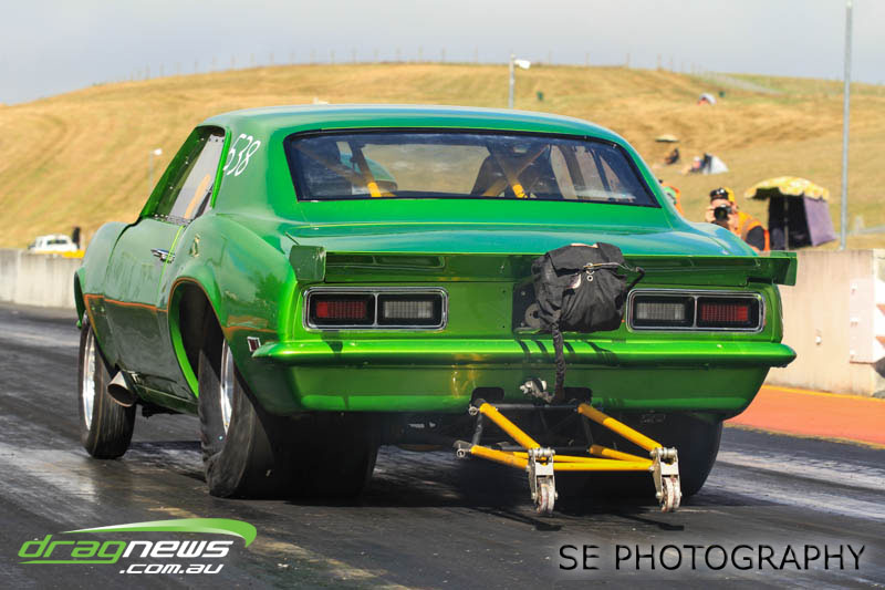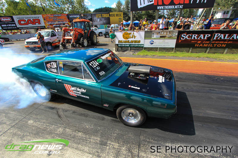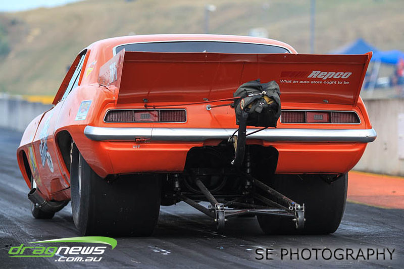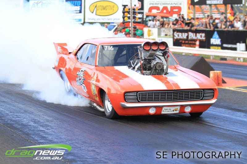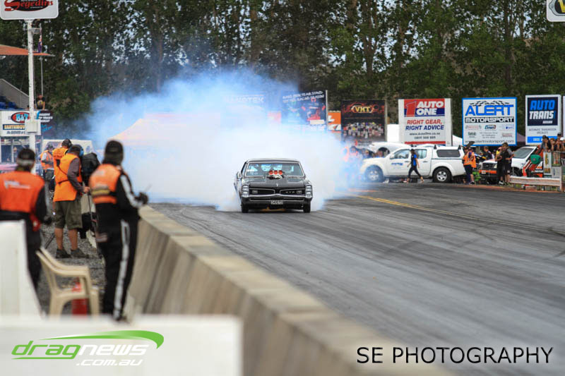 The battle of the P&I Pascoes Ltd Top Doorslammers has never failed to impress and this year would be no different. Trevor Smith in his Holden Statesmen continued his march deep into the sixes running a personal best time of 6.509 @ 216.51mph to qualify second behind Mark Bardsley in his 1968 Camaro with a 6.441 @ 223.10mph. But it was qualifier number 3 and 4 – Rod Benjes in his Chev Beretta and Ross Taylor in his Chev Sports Coupe – that battled out the final come Sunday afternoon. Rod Benjes took the finals win by 0.013 seconds running a 6.638 @ 207.53mph over Ross Taylor’s scenic route 6.651 @ 215.17mph. Consolation for Ross Taylor – rumoured to be stepping out of driving duties to make room for current crew chief and son Jason Taylor – is he tied up the IHRA NZ National Series with that finals appearance. Nigel Dixon in his 1968 Camaro also took consolation with a well earned 7.136 @ 193.02mph personal best and Gary Benham taking his personal best deep into the sevens with a 7.675 @ 169.30mph.