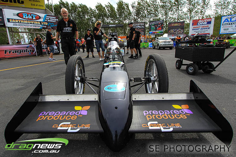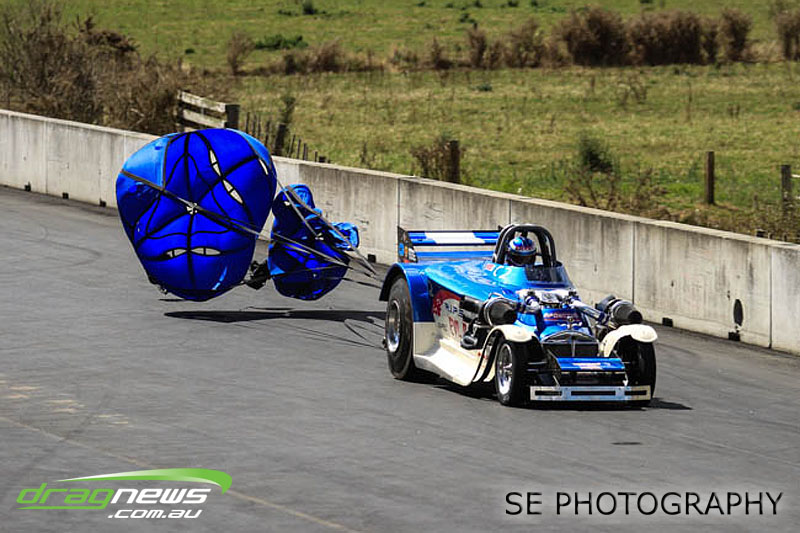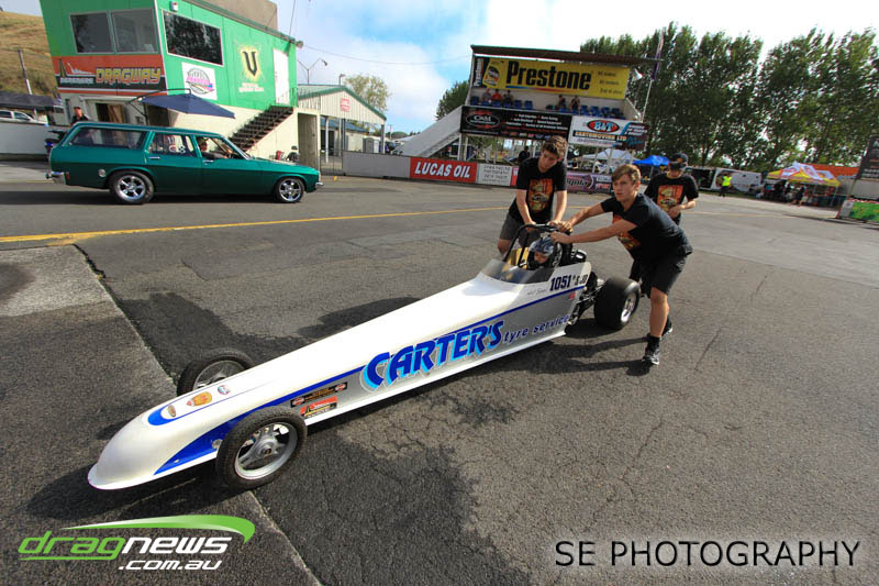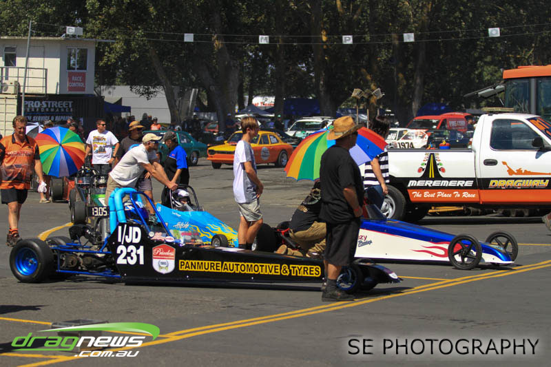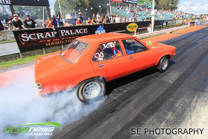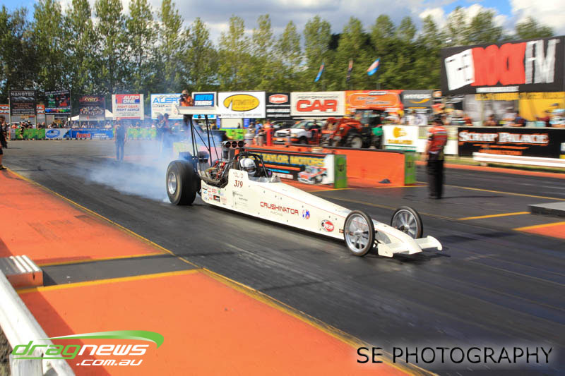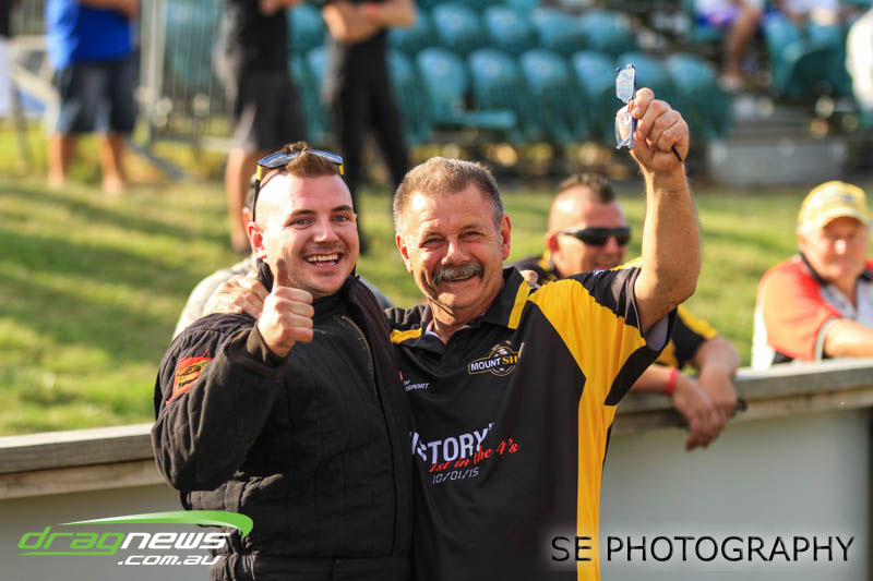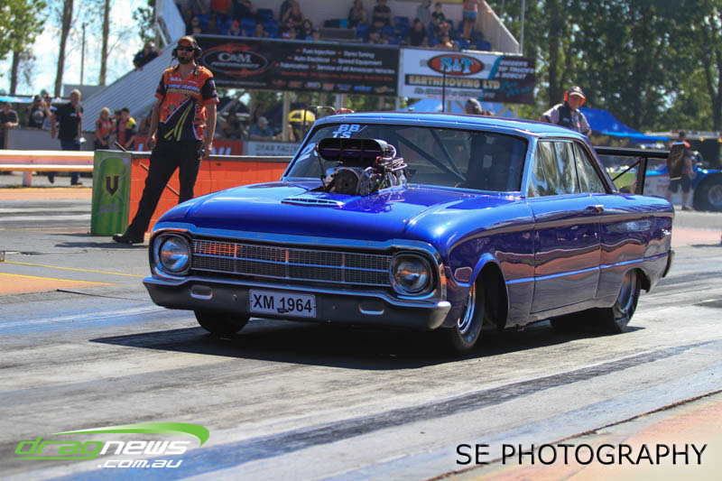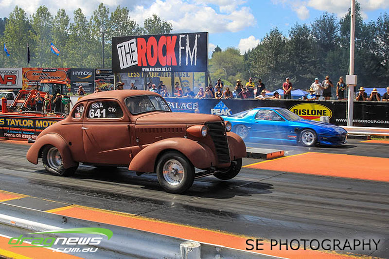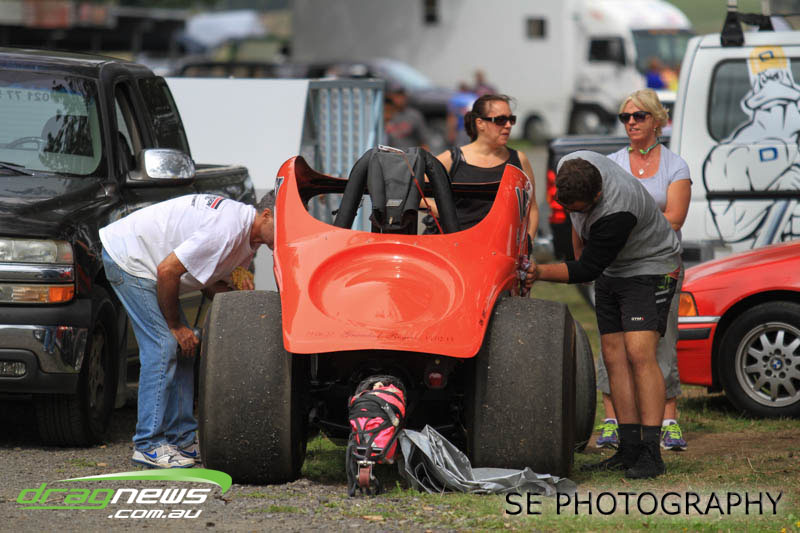 First season racer Boms “Bomber” Jamieson from Cambridge won his first meeting in the Segedins Auto Spares Modified division when it counted in taking out the Nationals title with a 9.481 @ 133.49mph. The road to the finals was littered with some experienced racers in the form of current Modified points leader Neville Smith followed by a final against veteran and regular podium visitor Trevor Watson in his Peugeot dragster but Bomber was on song for his first competition win.