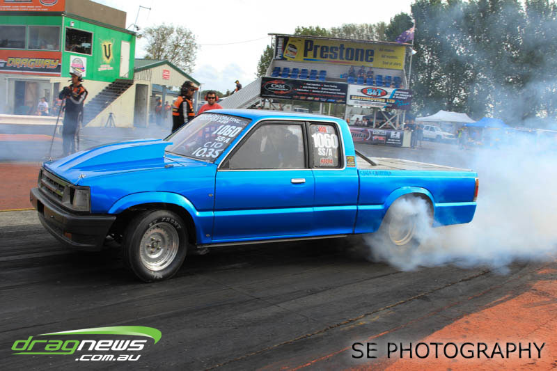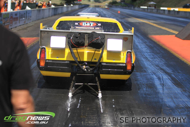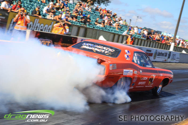 Brian Roberts Towing Super Street were poignant as they rolled out to kick of Eliminations and a minutes silence to their fallen combatant and previous champion Dean Logan. In true style, Logan was honoured with some hard and fast street machine racing that saw rookie David Wigg steal his first ever Nationals win with a 13.370 on a 13.20 dial-in over James Prujean’s 12.606 on a 12.46 dial-in. Good thing brother Adam Wigg couldn’t get the Skyline ready for competition or David would have never had the opportunity. We just hope Adam Wigg hasn’t lost his crew chief.