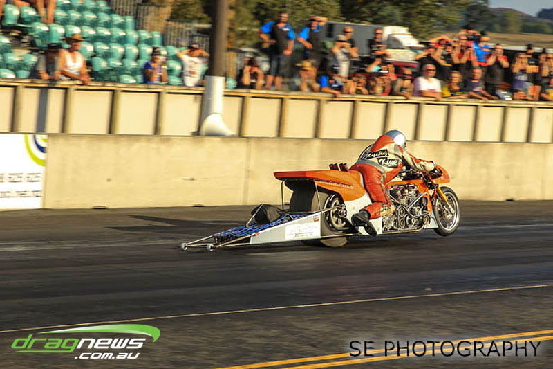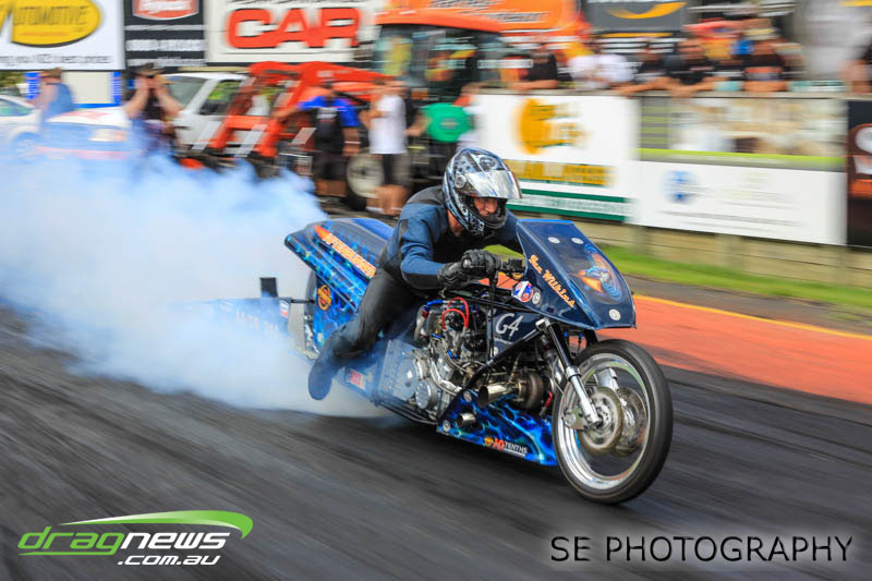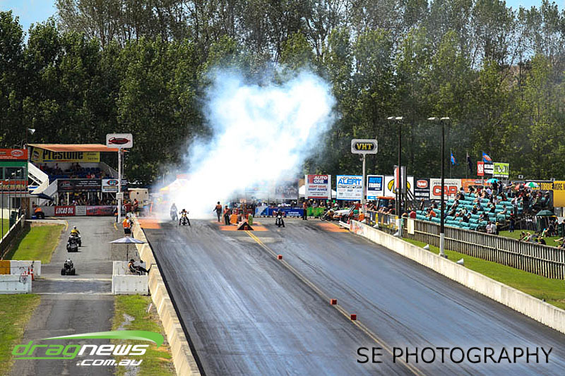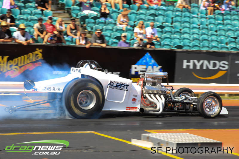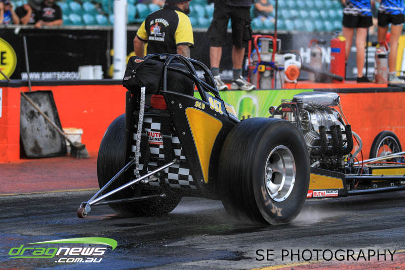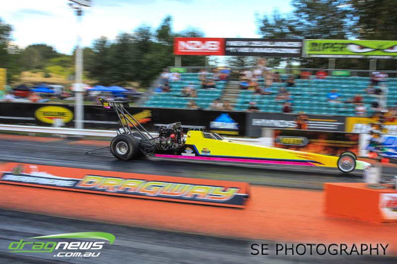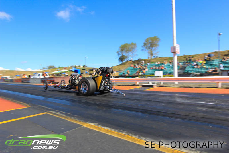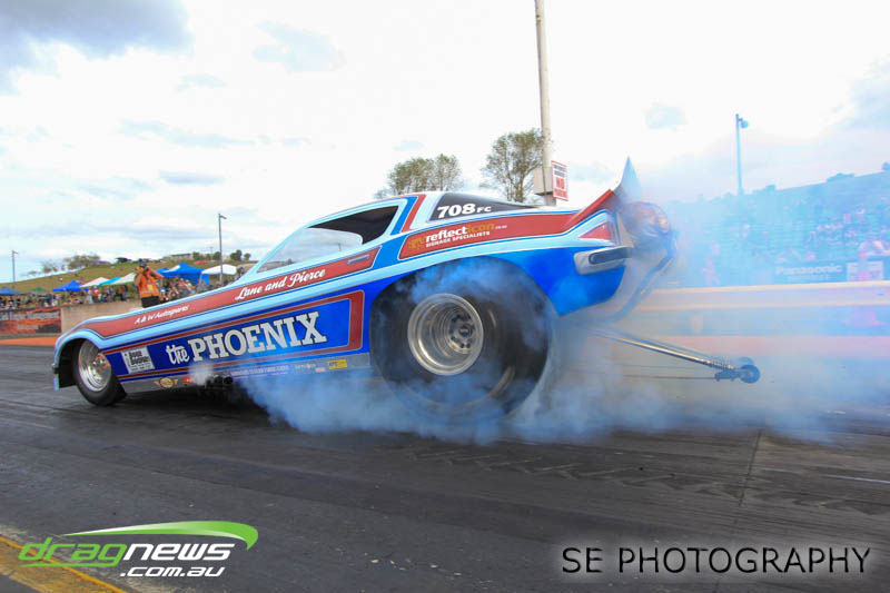 The final word will go to our Nitro racers. Two months earlier they were sizzling in their record breaking form at the Nitro Shootout. They were just as electrifying this time around. Anthony Marsh laid another history making pass on Saturday evening with a 4.872 @ 307.72mph, Reece Fish was the grand finale on Sunday and ran a PB of 5.012 in his quest for a 4second pass (it’s getting closer). Fish brought us some Australian drag racing royalty as well; Santo and Santino Rapisarda along with American Scott Gaddy graced us all with their presence as they worked to get Fish and team into that magic territory. Athol Williams was superb with a 6.562 @ 212.43mph pass on two wheels and Willy White is chipping away to get back to form with a 7.196 but slowing towards to the finish line. Les Herst rounded up the nitro action dipping into the 7s as he works to sort the Phoenix for a 6 second flight.
