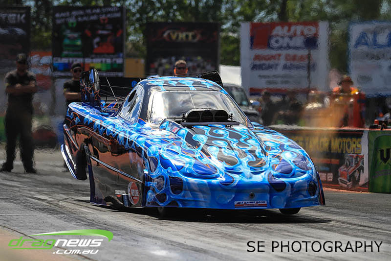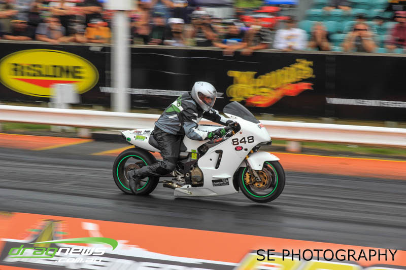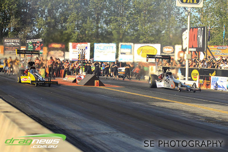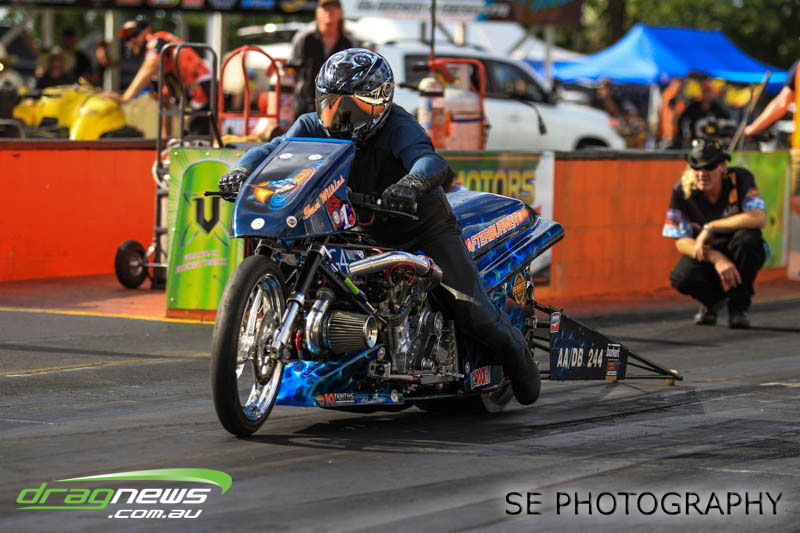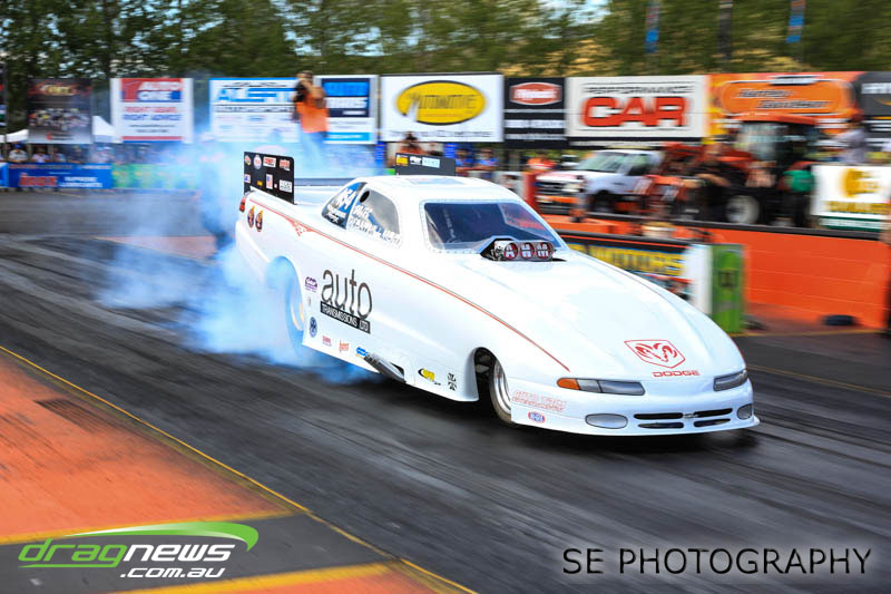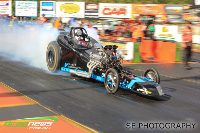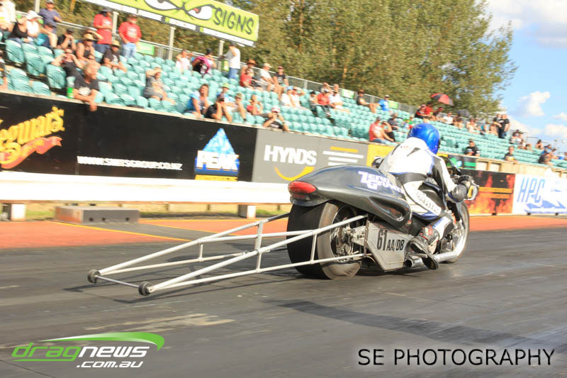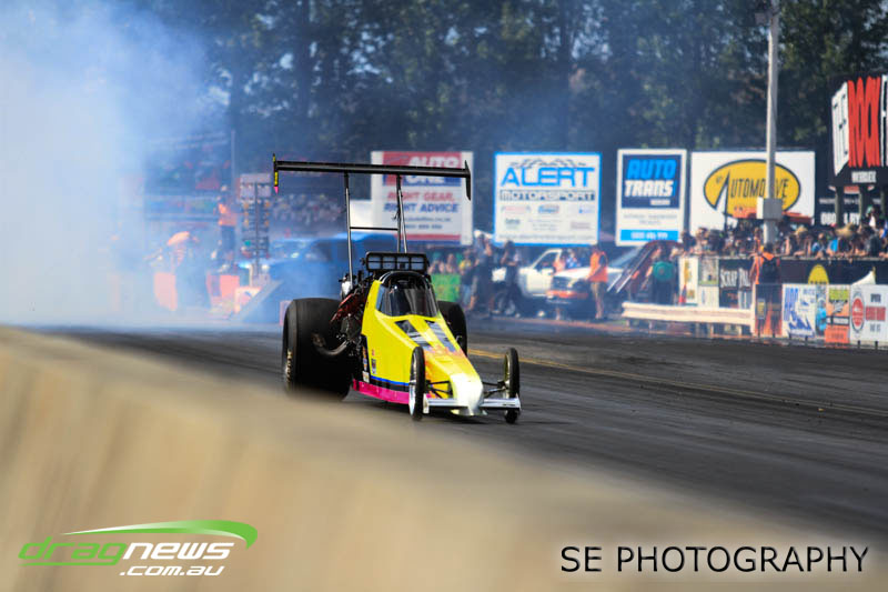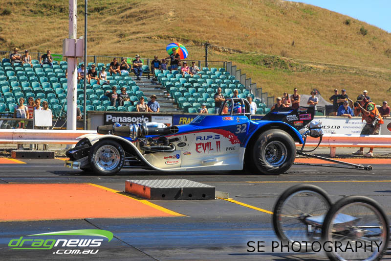 The final word will go to our Nitro racers. Two months earlier they were sizzling in their record breaking form at the Nitro Shootout. They were just as electrifying this time around. Anthony Marsh laid another history making pass on Saturday evening with a 4.872 @ 307.72mph, Reece Fish was the grand finale on Sunday and ran a PB of 5.012 in his quest for a 4second pass (it’s getting closer). Fish brought us some Australian drag racing royalty as well; Santo and Santino Rapisarda along with American Scott Gaddy graced us all with their presence as they worked to get Fish and team into that magic territory. Athol Williams was superb with a 6.562 @ 212.43mph pass on two wheels and Willy White is chipping away to get back to form with a 7.196 but slowing towards to the finish line. Les Herst rounded up the nitro action dipping into the 7s as he works to sort the Phoenix for a 6 second flight.