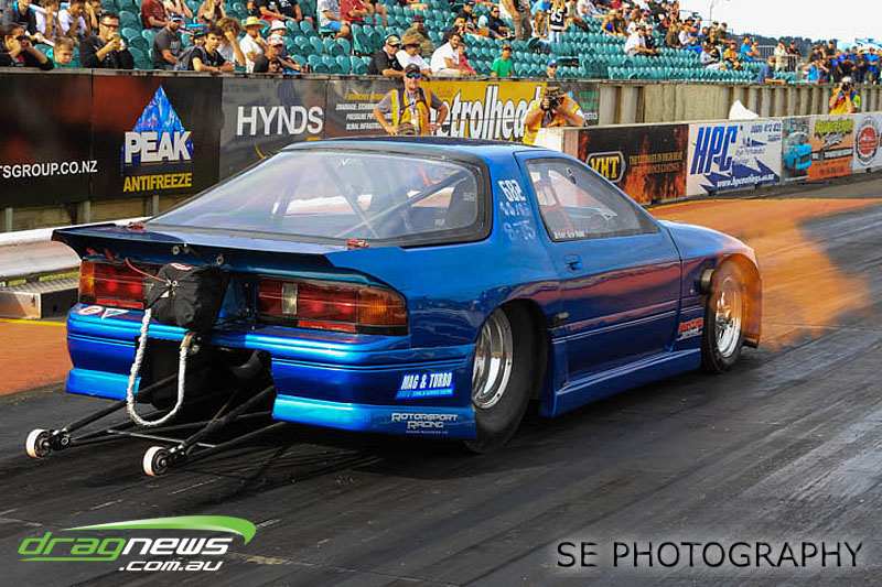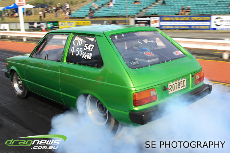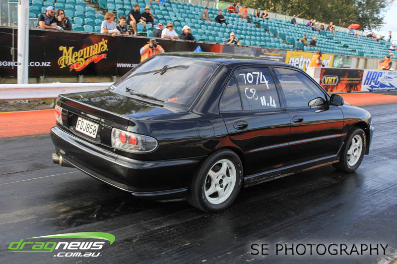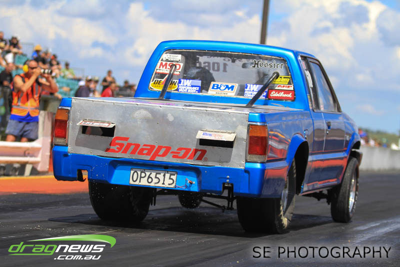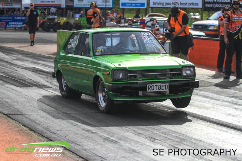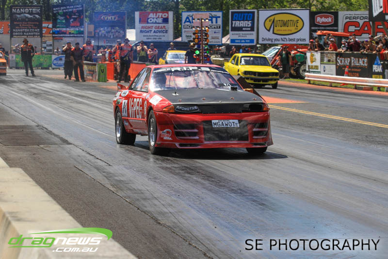 VHT Top Street and V Energy Drinks Sport Compact divisions gave us four national records despite a high attrition rate in V Energy Sport Compact. Roger Binnema from Balclutha gave us a 7.367 @ 193.06mph CC/TS record as well as the record for most distance travelled at 1,441.4km according to Google. Mahon Brothers Racing added the A/MS record of 7.968 @ 283.63mph, Gary Bogaart contributed with an 8.688 ET record for EE/MS and Ben Cox reset the S/M E.T. record to 8.173. Robbie Ward could have raced in Super Sedan but chose to campaign the car in Sport Compact instead and while there, he and his RIPS MGAWOT III Skyline were not content with just taking the SS/BB record to 7.417 @ 191.95mph but is now arguably the quickest Skyline in the world with a 7.327 run during Exhibition.