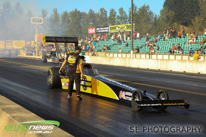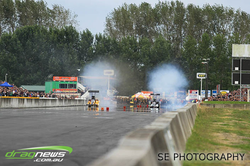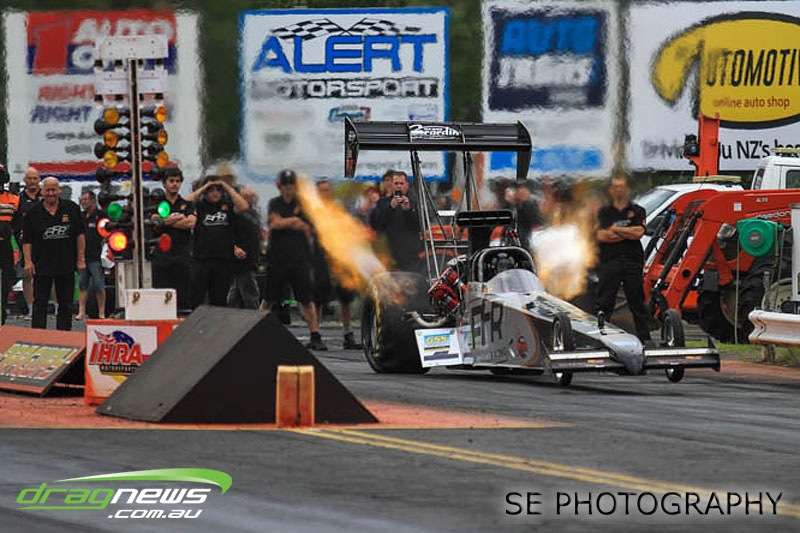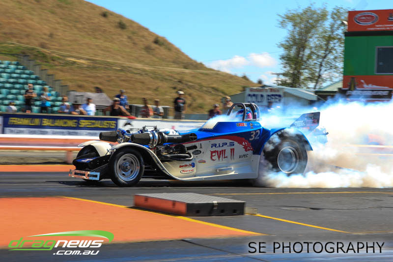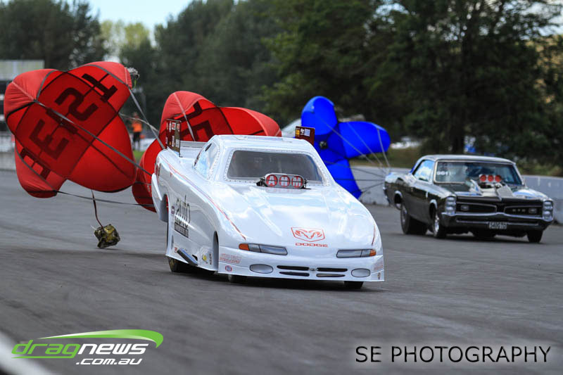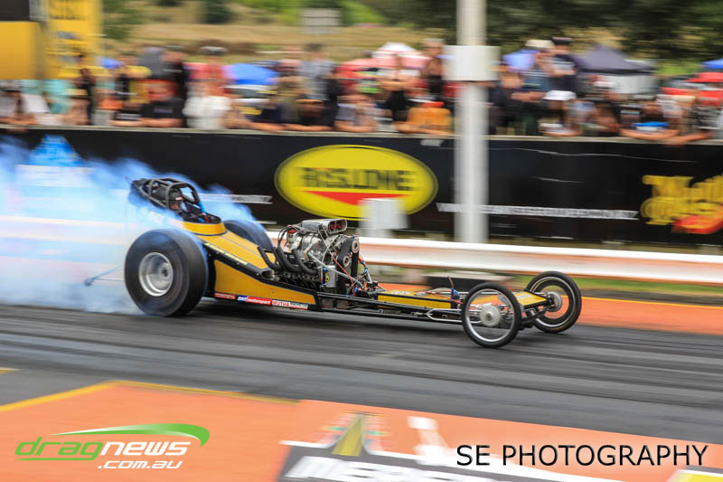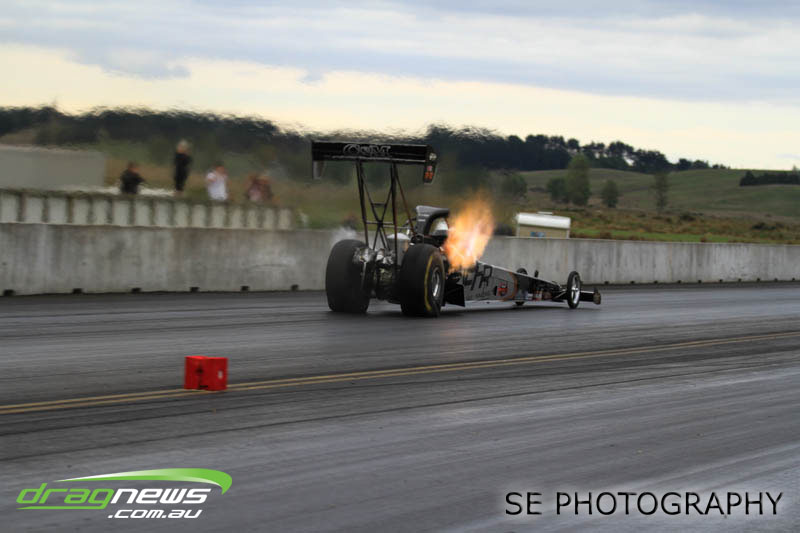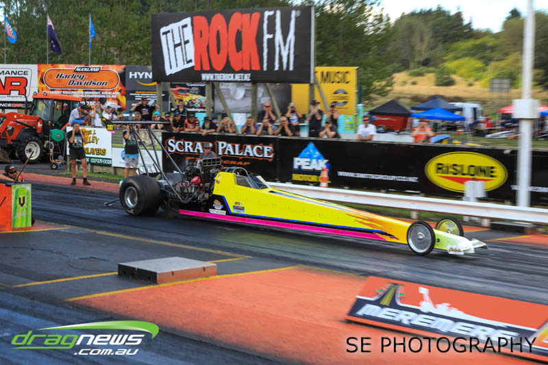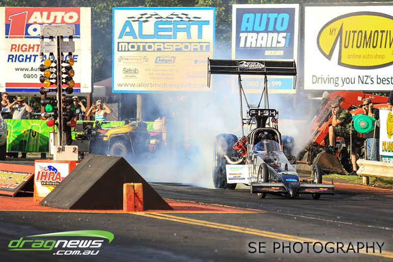 In a repeat of the lead up to the 2014 NZ Nationals, the papers and forecasts had only bad news when it came to the weather for the weekend of the NZ IHRA National Track series grand final round. The Board at Meremere Dragway were not perturbed and made the early decision to continue as planned. Surely lightning wouldn’t strike twice in the same place? It’s just as well. Thirteen records, history and a string of personal bests and some amazing racing would have gone begging.