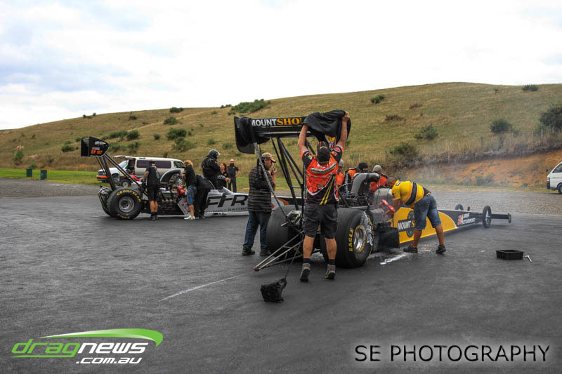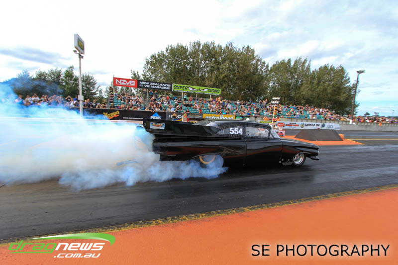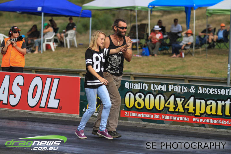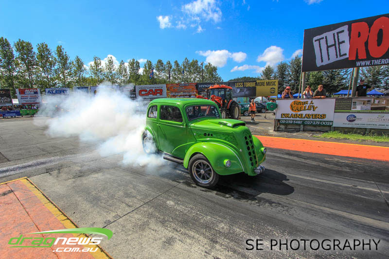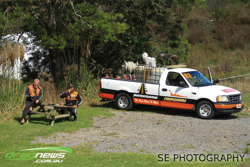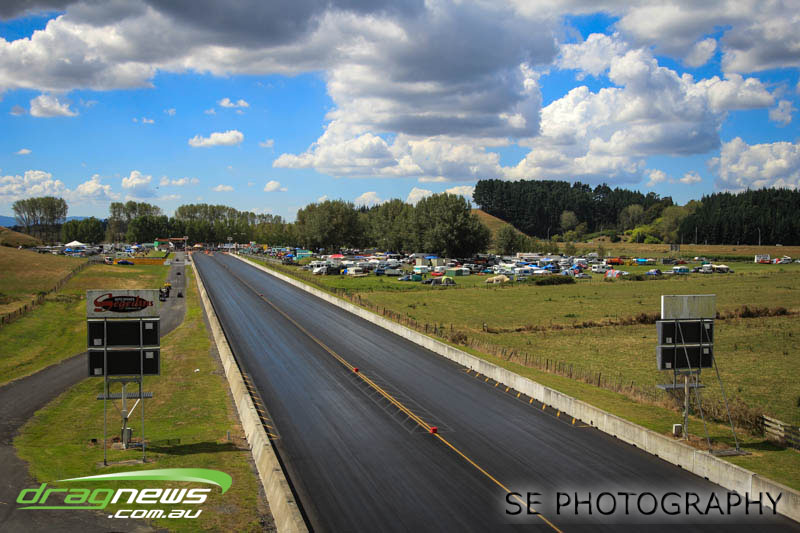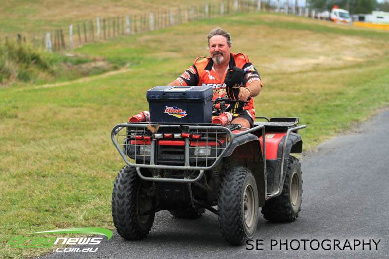 The Meremere Dragway track crew that prepped in the face of another cyclone and worked tirelessly to pump the racing through before the forecasted Sunday afternoon rain claim the meeting alone was record breaking on another front…no oil downs. We’ll clink to that.