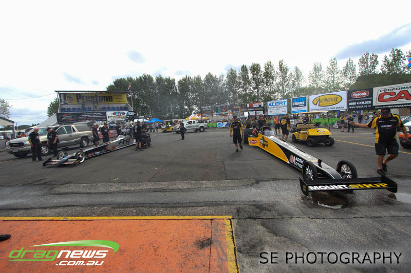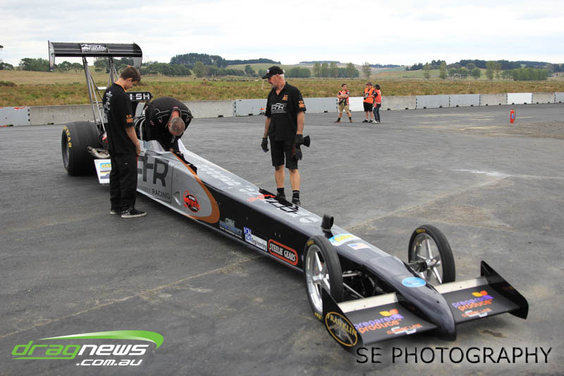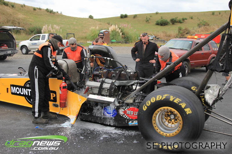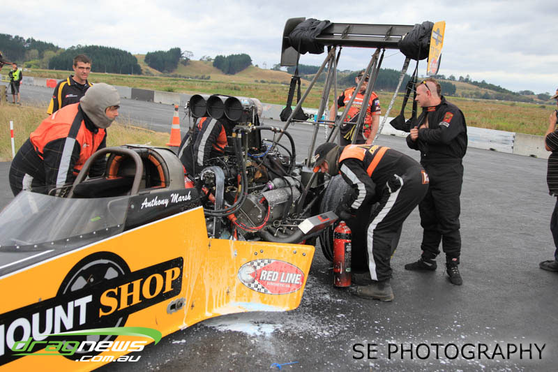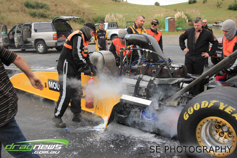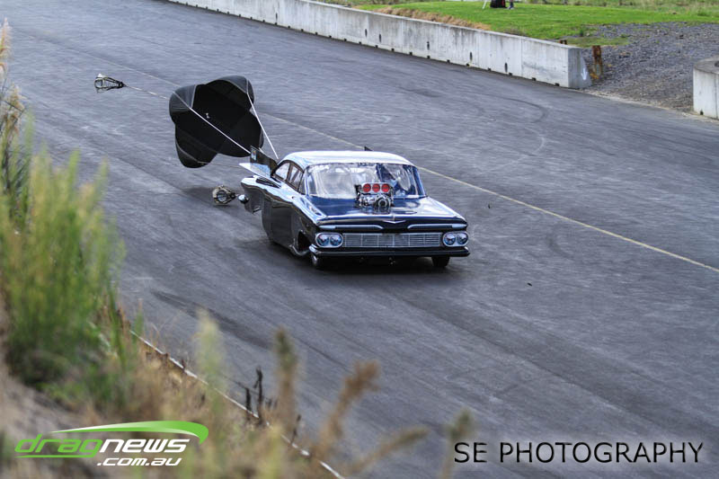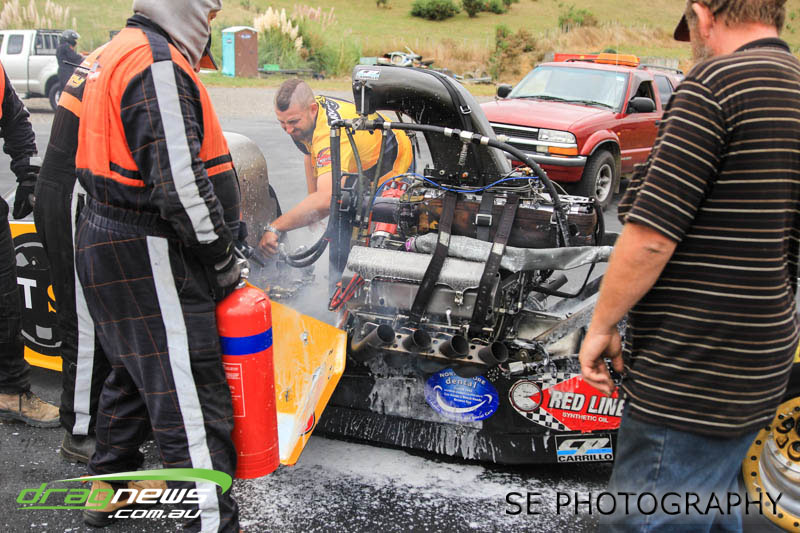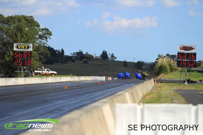 The Meremere Dragway track crew that prepped in the face of another cyclone and worked tirelessly to pump the racing through before the forecasted Sunday afternoon rain claim the meeting alone was record breaking on another front…no oil downs. We’ll clink to that.