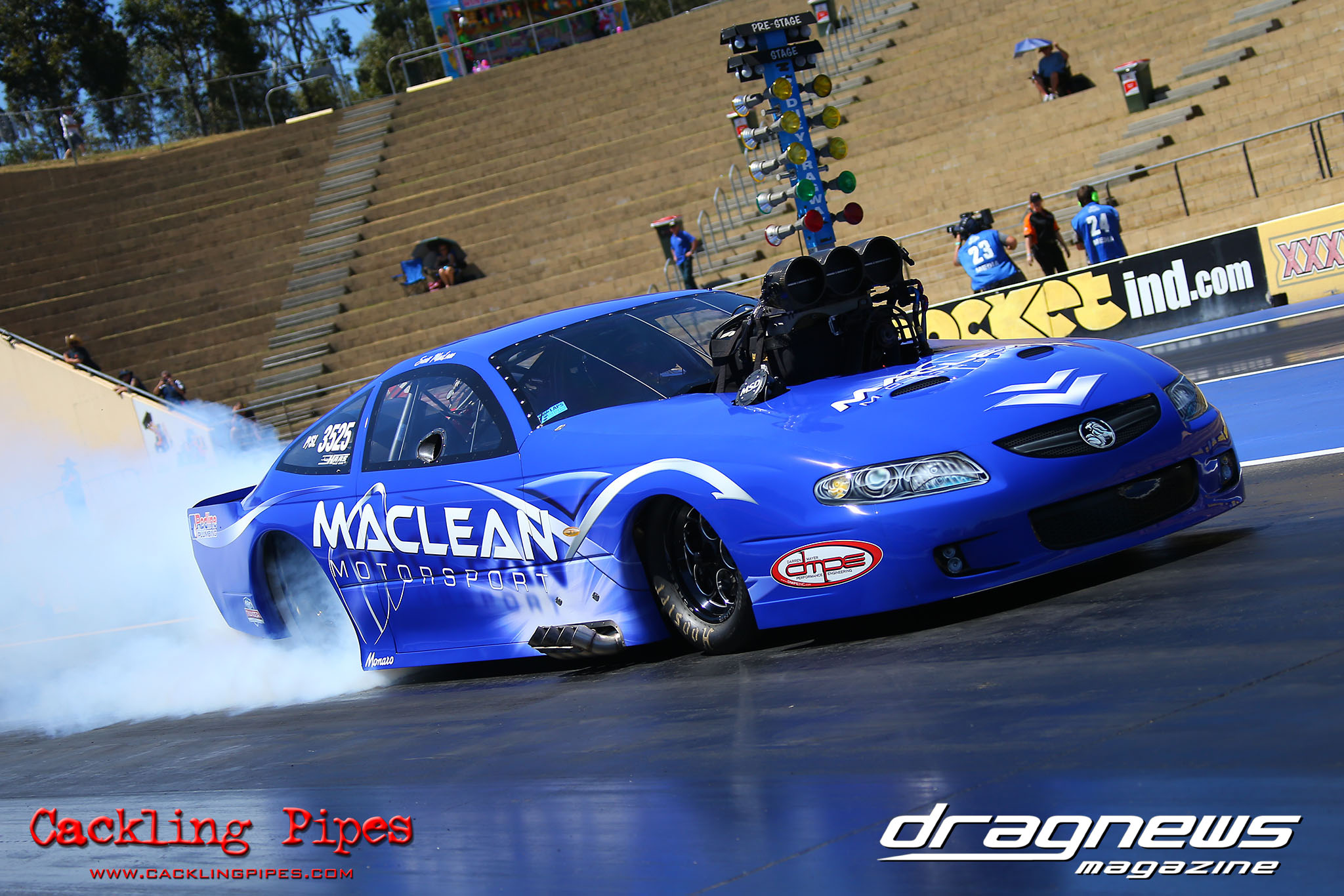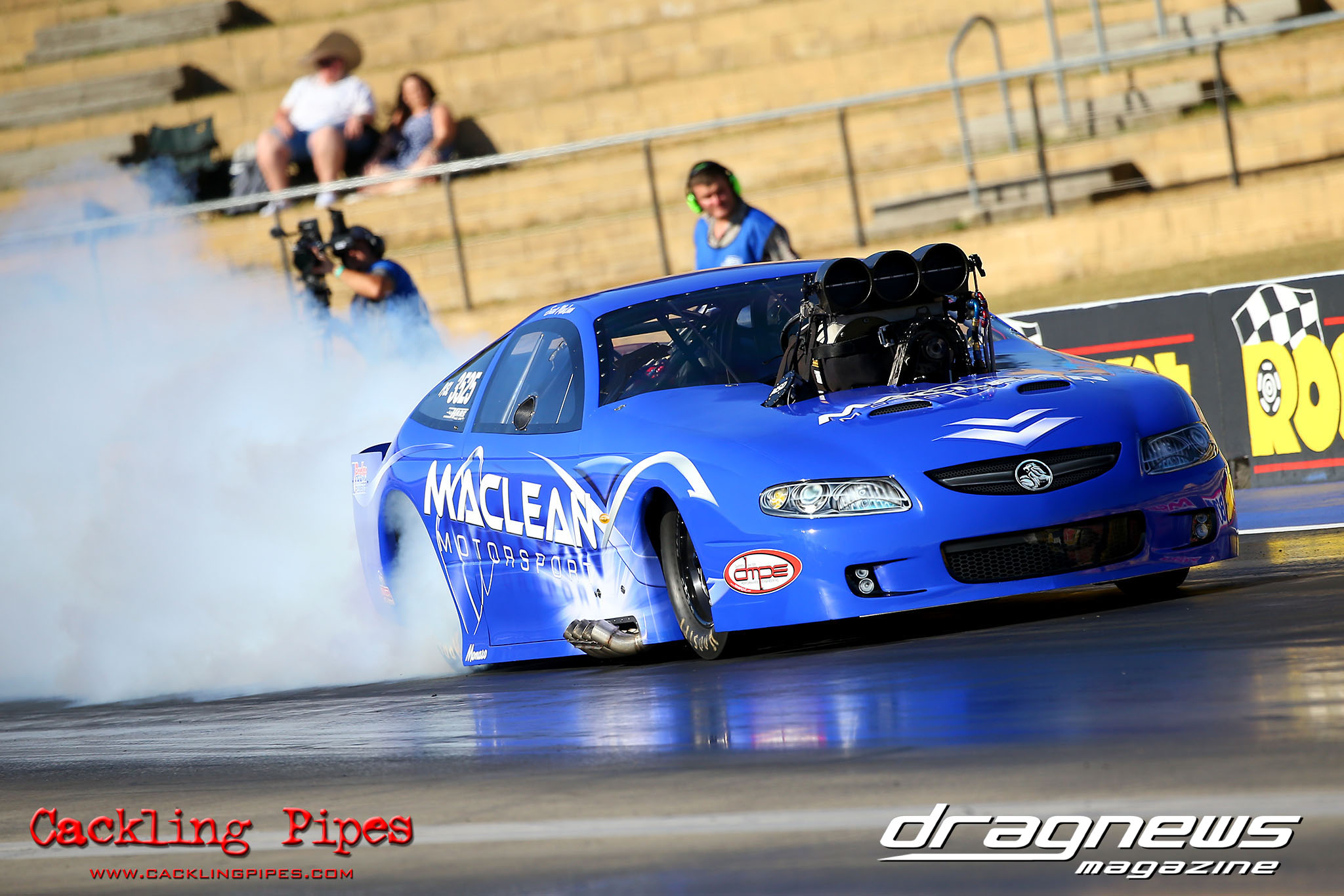 Scott MacLean’s Holden Monaro has proved a solid runner in its competition debut, going 5.85 to earn pole position in Pro Slammer. Phillips qualified second with a 5.86.