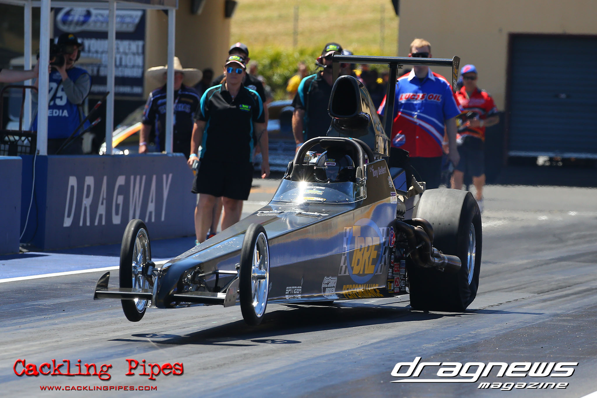 Gary Phillips overcame some troubled early passes to eventually card a 5.47 in the final session and top qualify for Top Alcohol in the Lucas Oils Funny Car. But it was Russell Mills generating all the headlines early when he ran a 5.52, which we believe may be the quickest front engine dragster pass in the world. Unfortunately the car hurt a rear main bearing and won’t be appearing in eliminations.