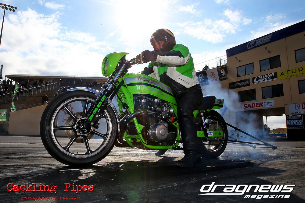 A red light decided the final in Classic Bike as well. Brian Hazell let the clutch out -.033 to early on his Honda CB750, handing the win to Mark Akers standout green Kawasaki.