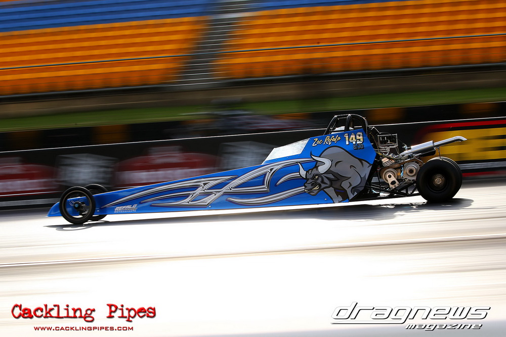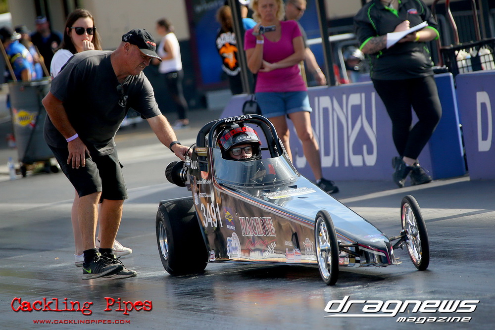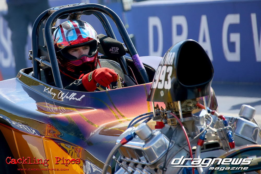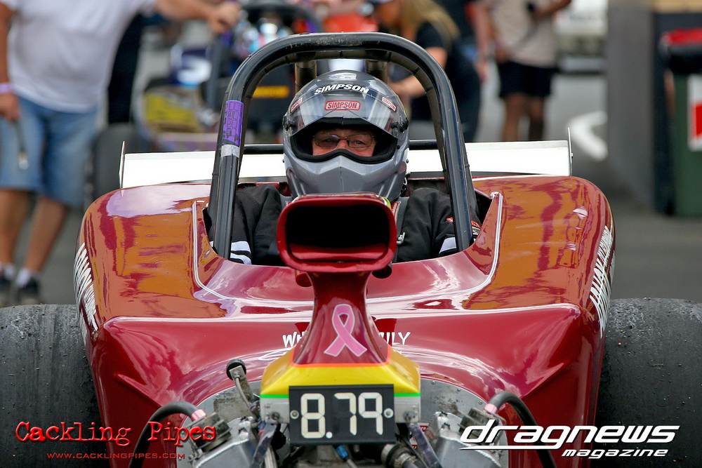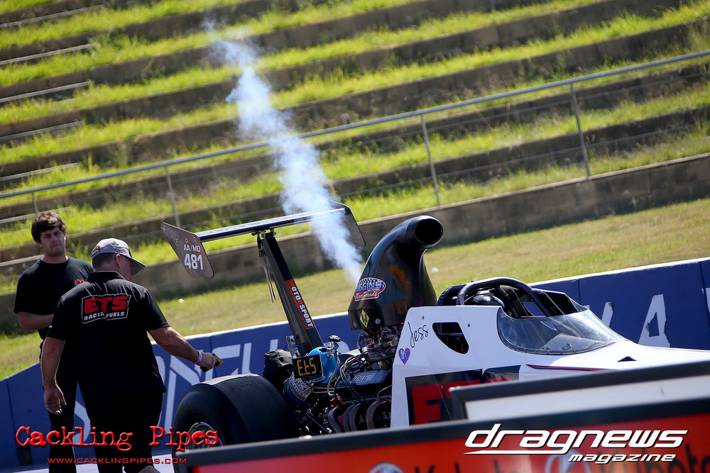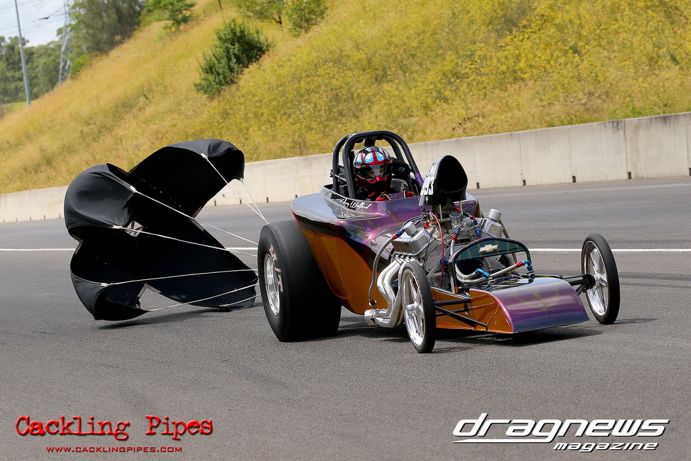 Pro Extreme, Top Comp, Super Comp and Supercharged Outlaws did not have the numbers to make fields and were reduced to just test runs. Also testing was Stephen Brown in the ‘Light Horse’ AA/Fuel Altered, and the team are making steady progress in licensing with a strong half track run.